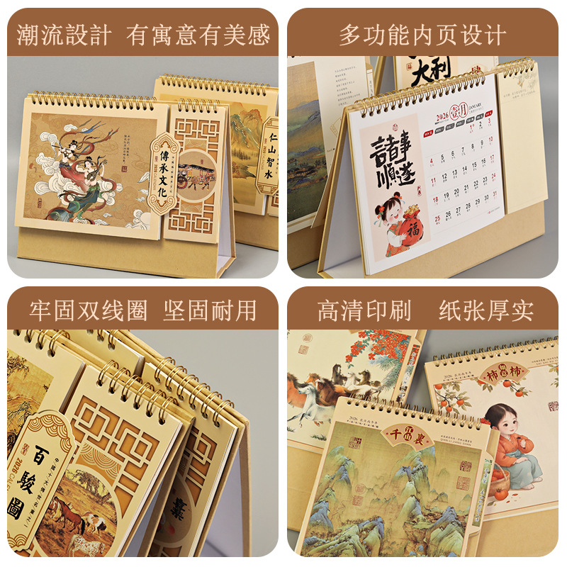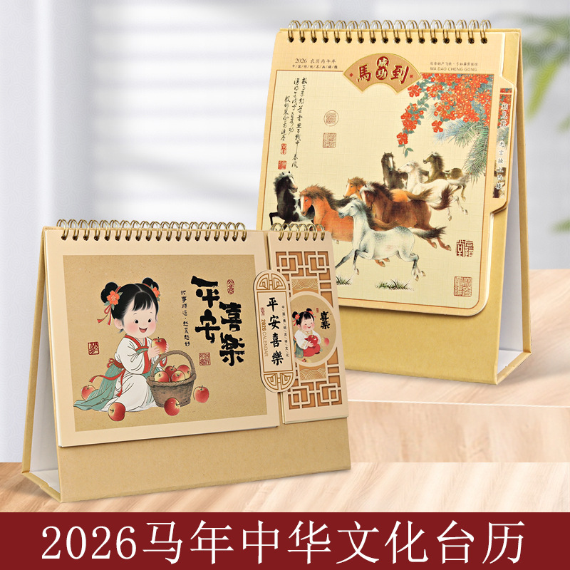 2026时尚创意国风台历三角日历批发马年大号便签办公台历桌面摆件