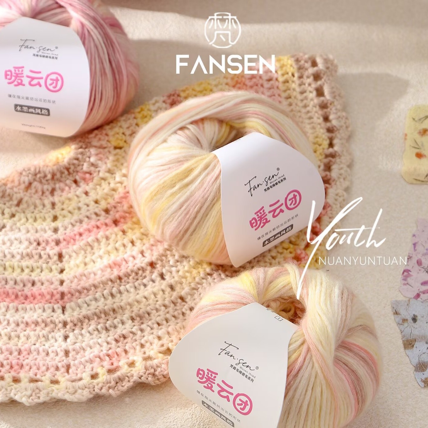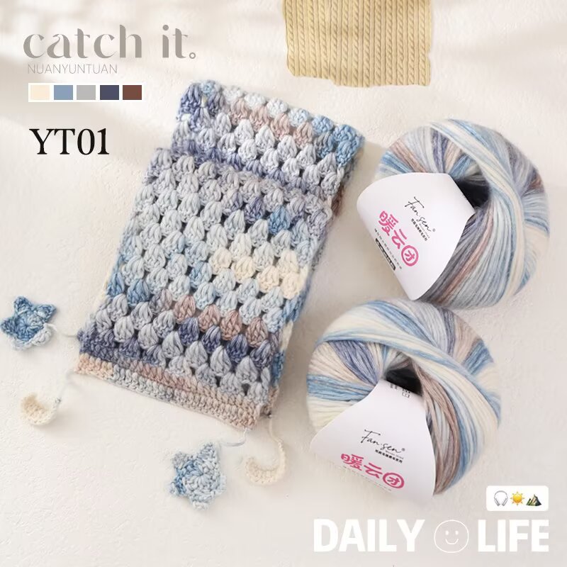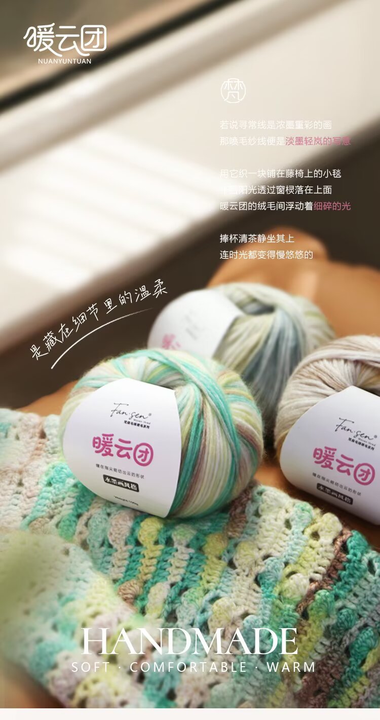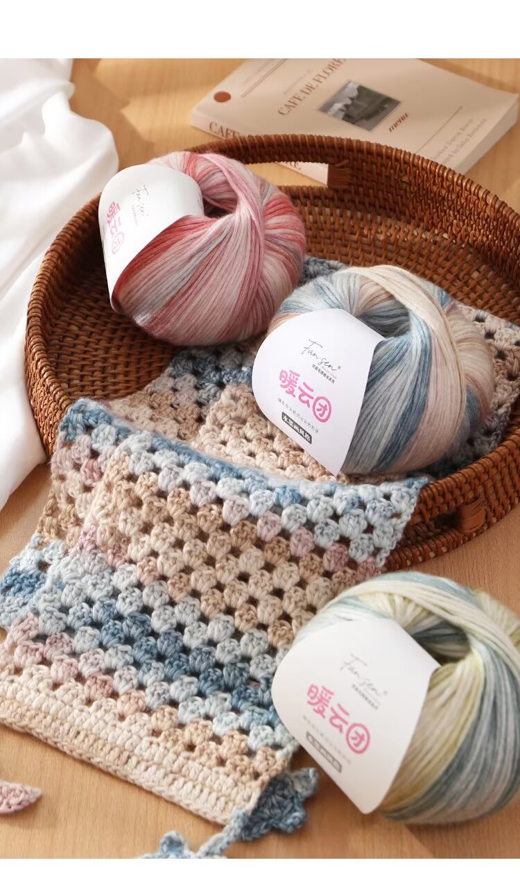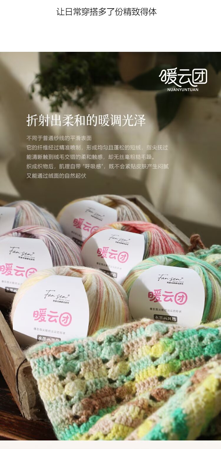 云团线琉璃云棉腈喷毛纱毛线渐变色蛋糕线手工编织披肩DIY围巾线