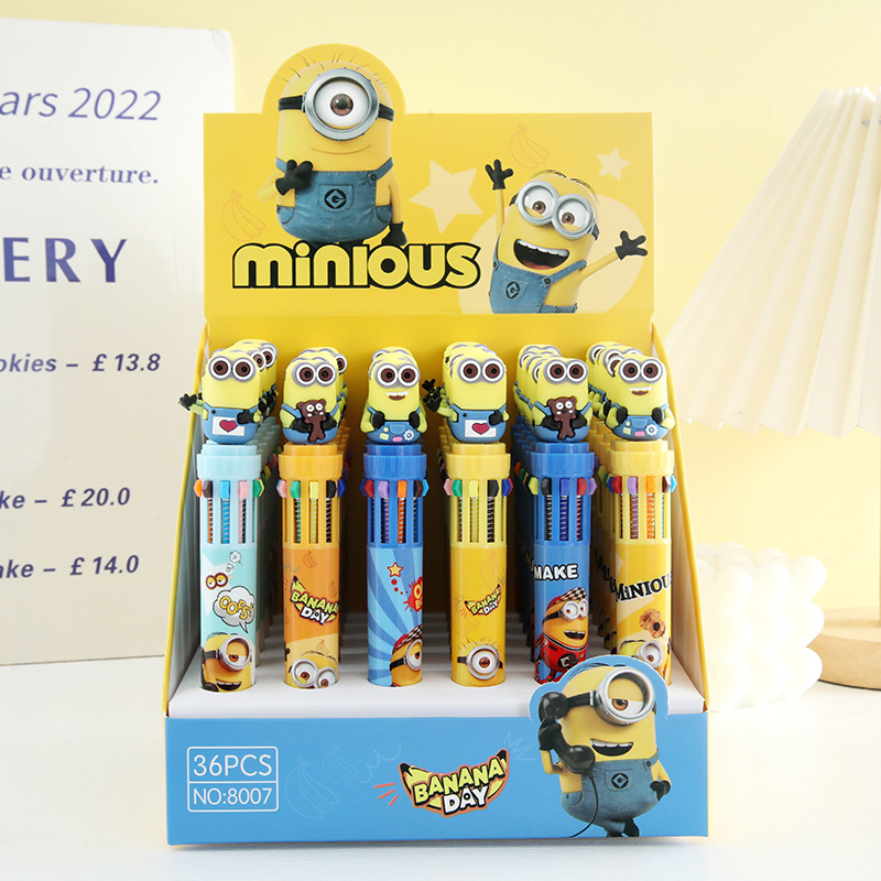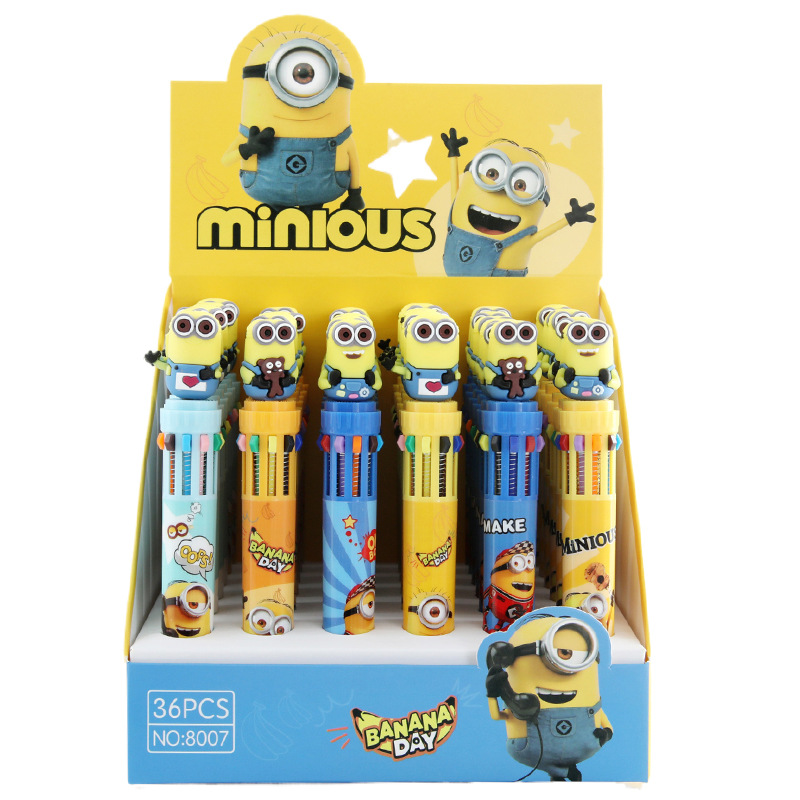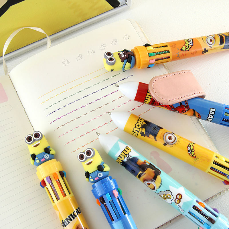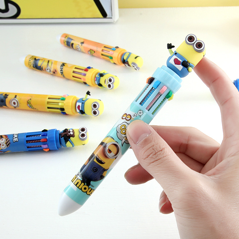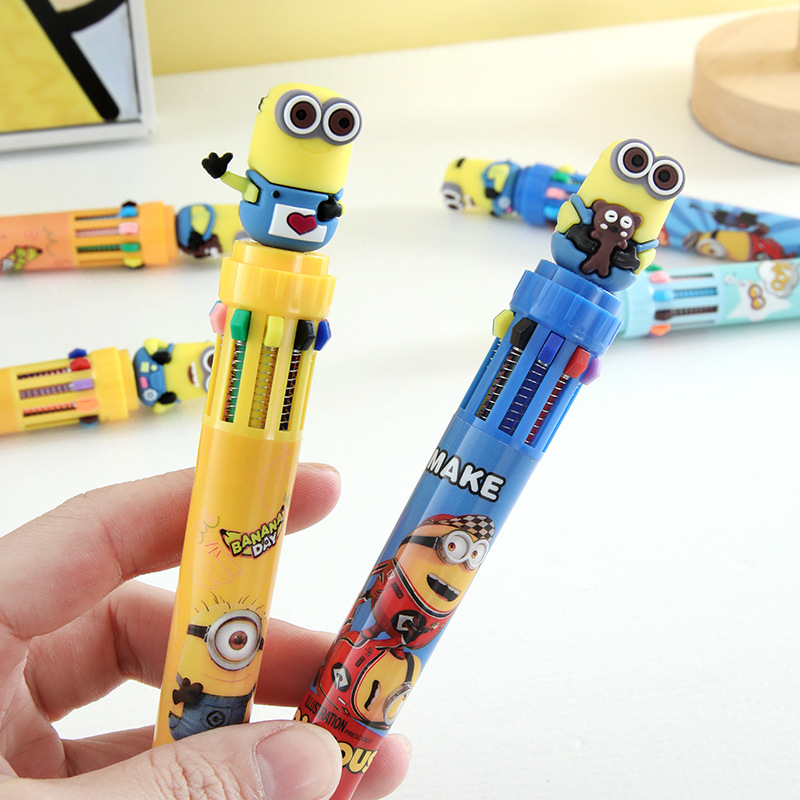 卡通黄人十色笔 高颜值彩色多色笔课堂笔记笔10色手账笔学生文具
