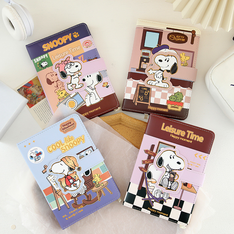 卡通史努笔笔记本A5烫金记事本跨境按扣本学生手账本学习文具批发