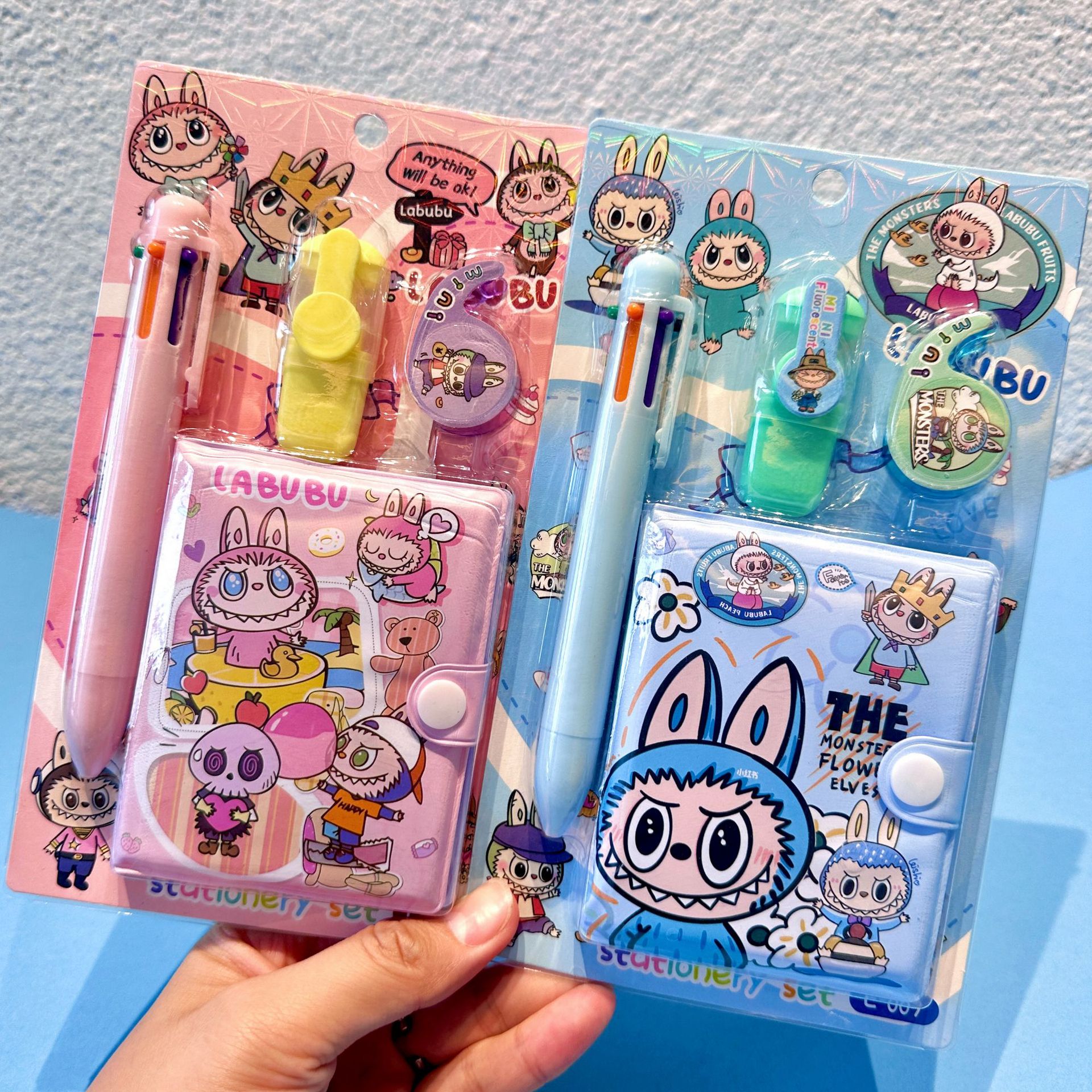卡通小布6色圆珠笔 手账本套装礼品荧光笔笔记本小学生文具用品