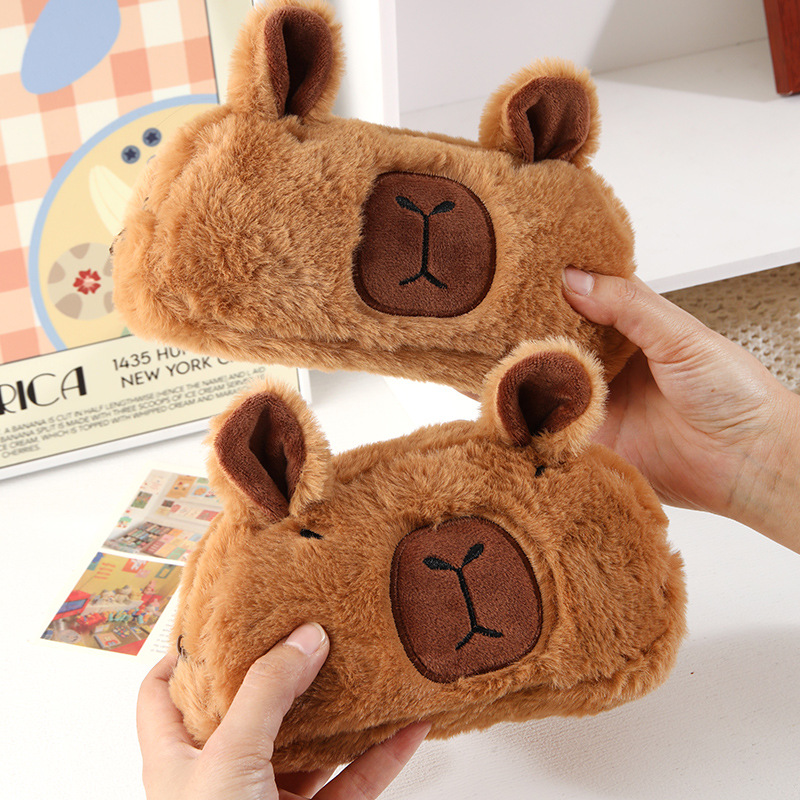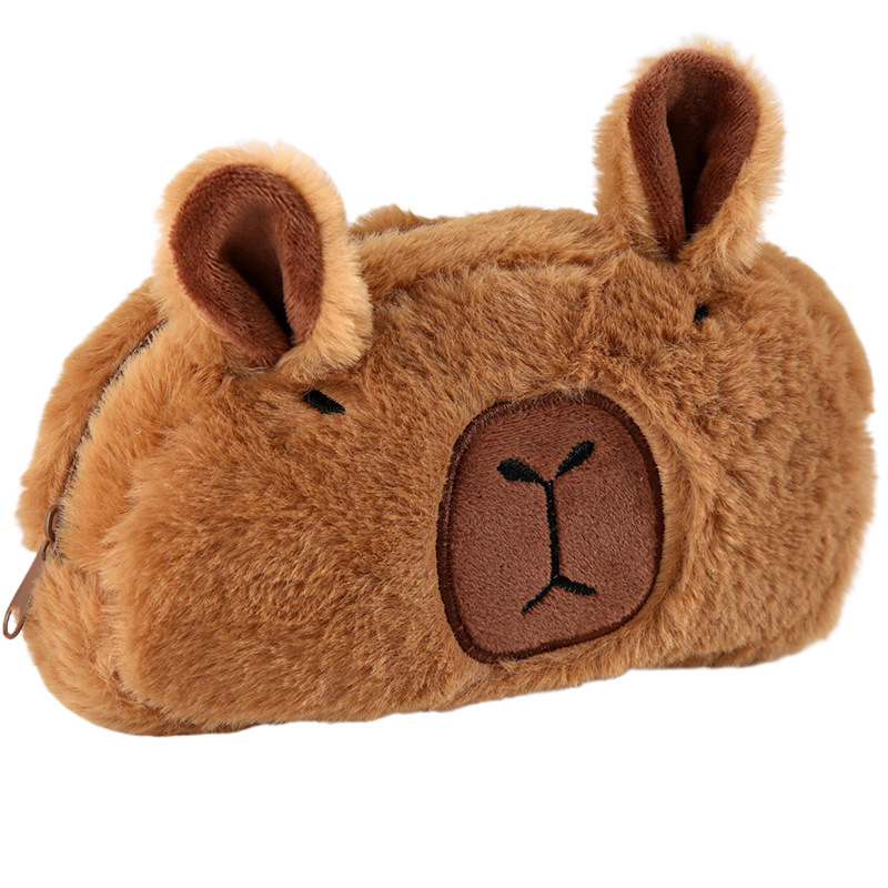 卡皮巴拉文具笔袋 蠢萌豚鼠大容量毛绒文具笔盒学生学习文具用品