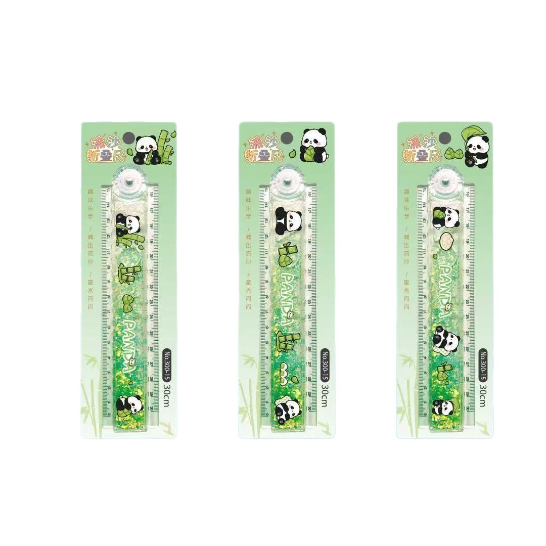 可爱熊猫流沙折叠尺 30cm高颜值学生减压尺子 考试用直尺卡通文具