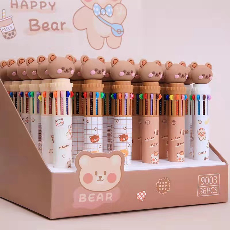 卡通小熊十色圆珠笔可爱按压手账书写笔学生学习书写文具节日礼品