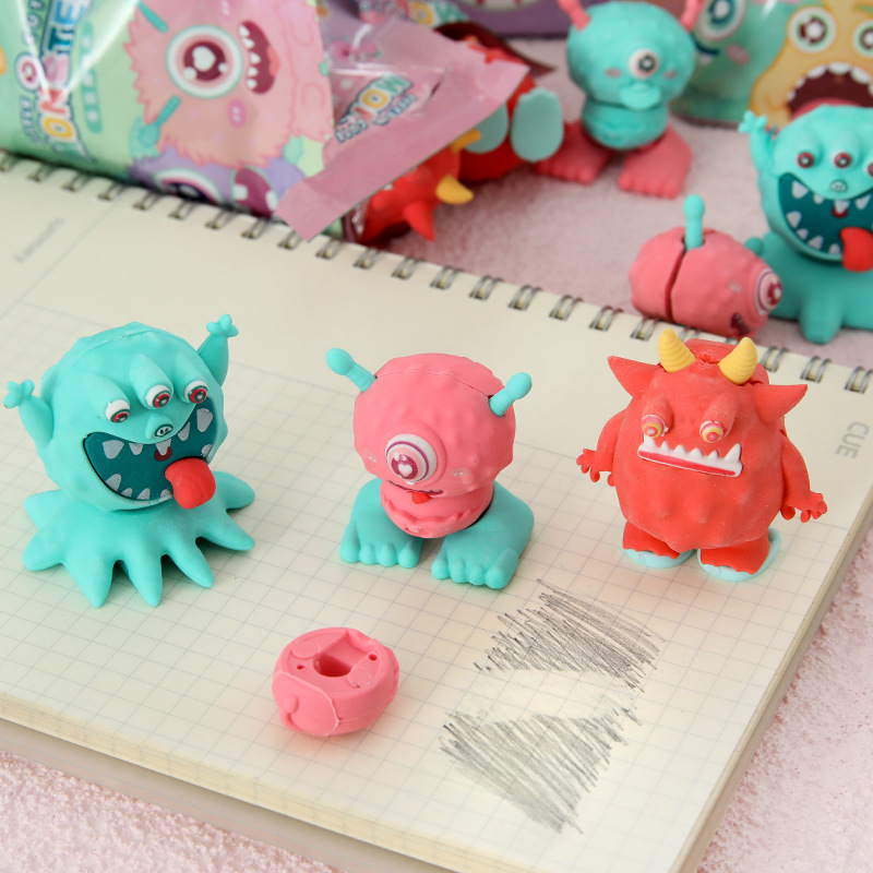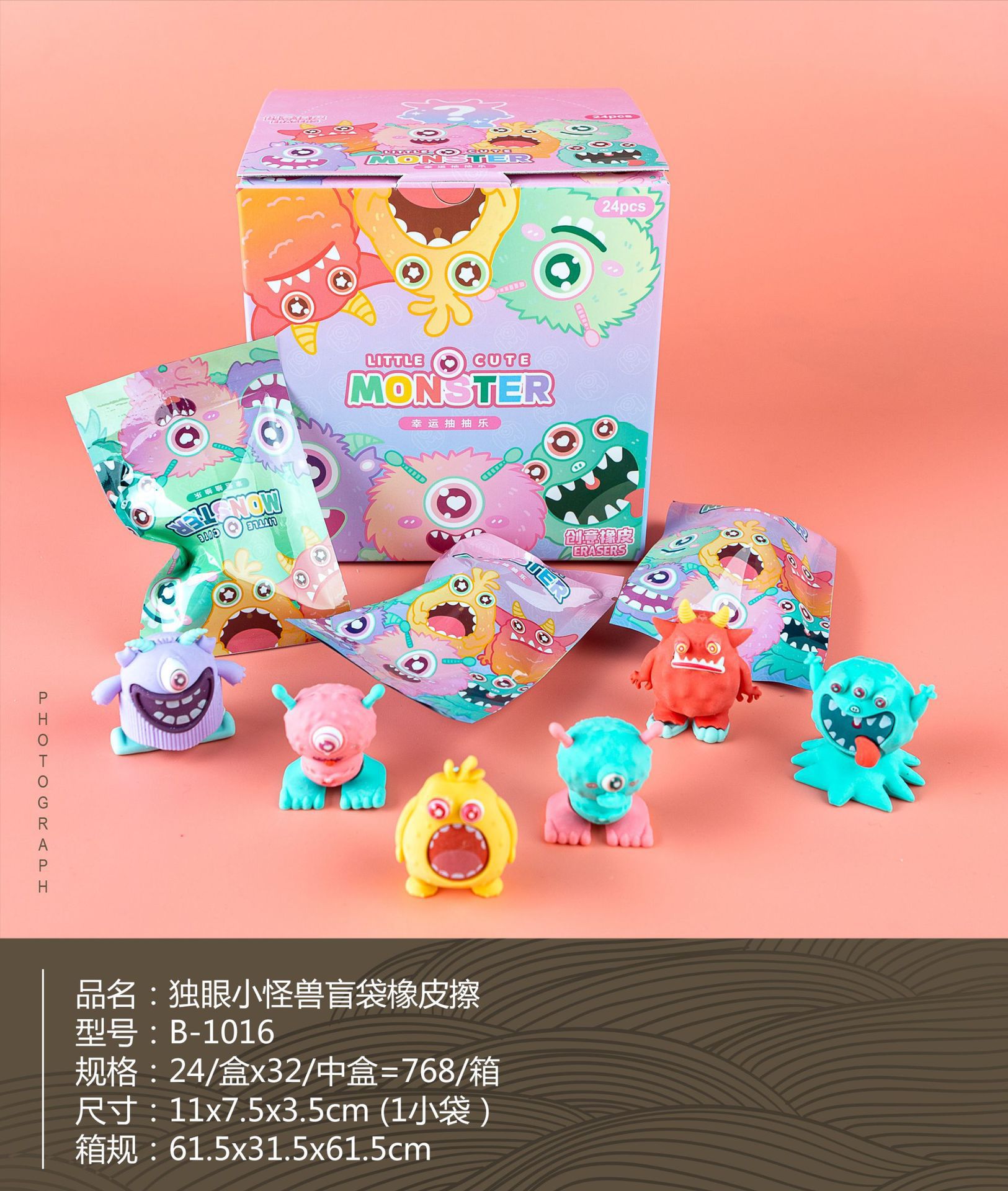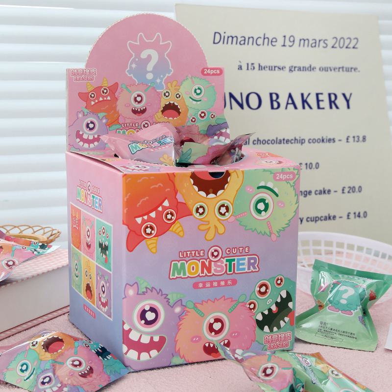 新款卡通小怪兽橡皮擦盲袋可爱学生文具橡皮擦盲盒抽抽乐擦得干净