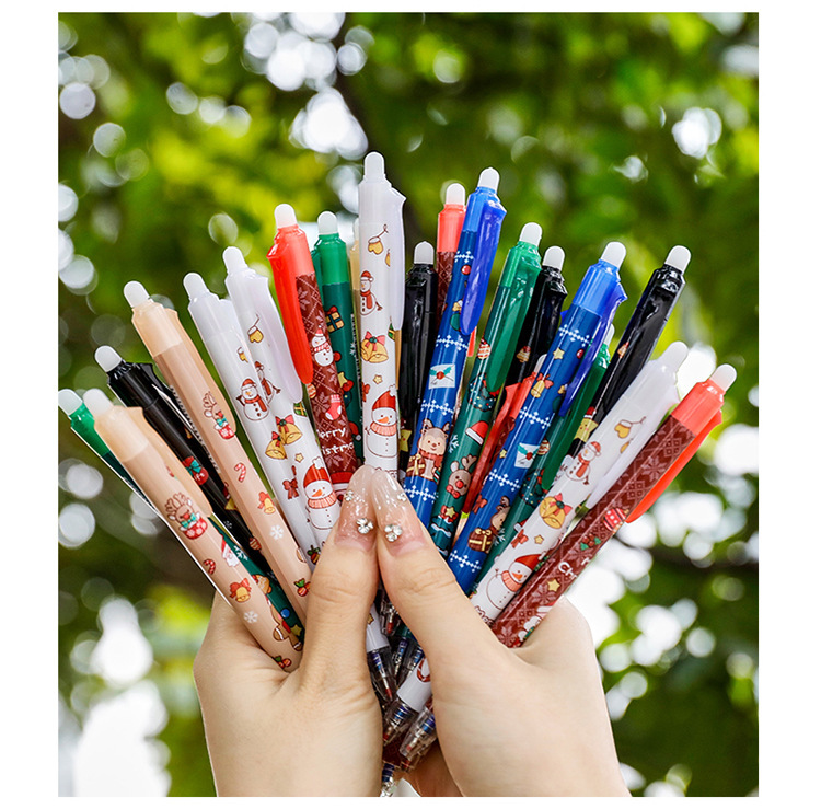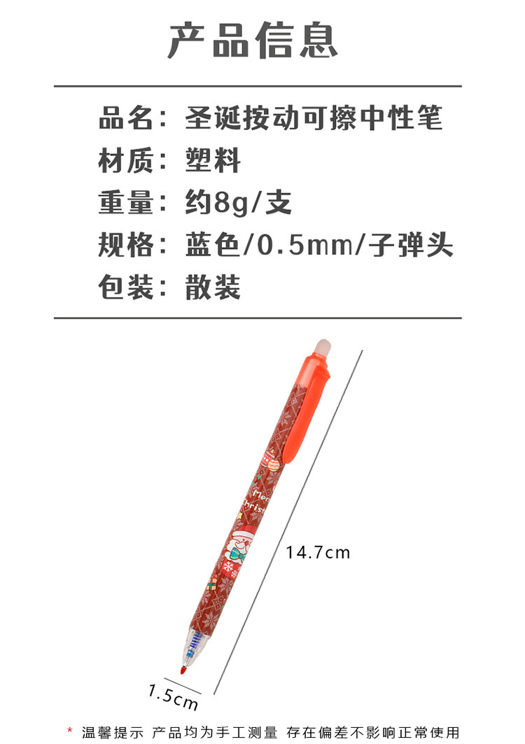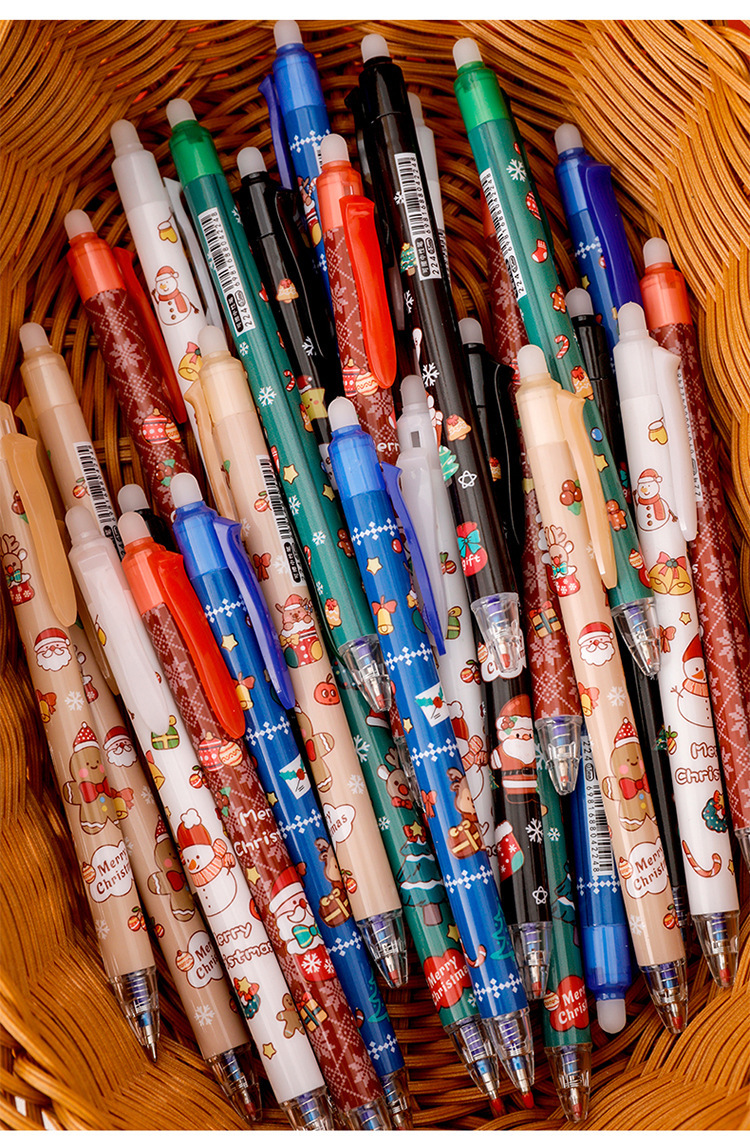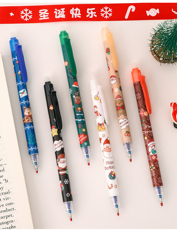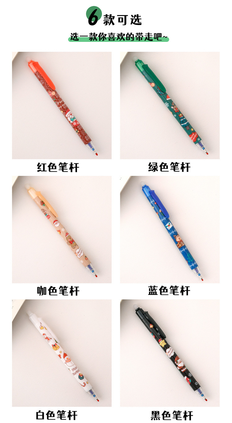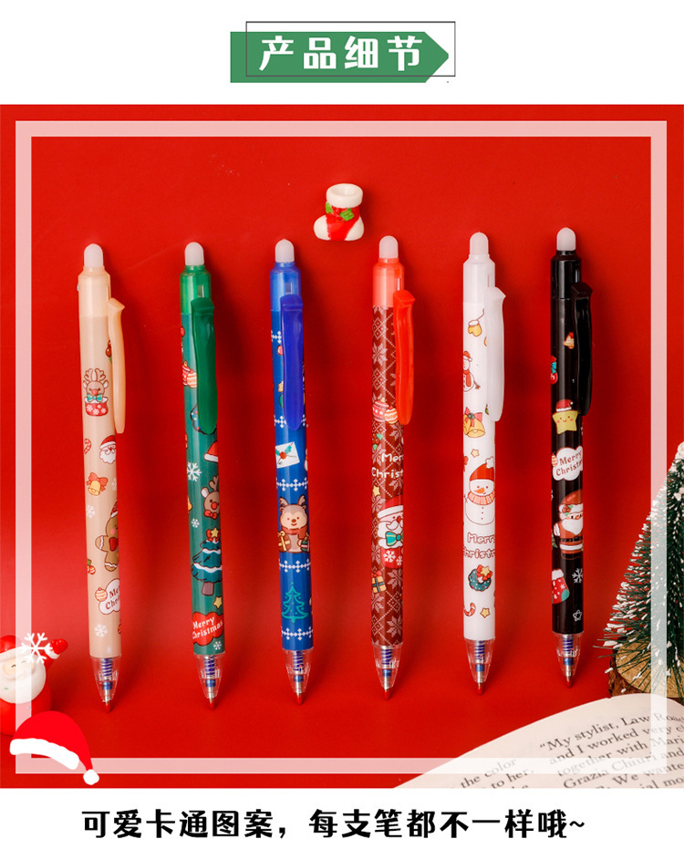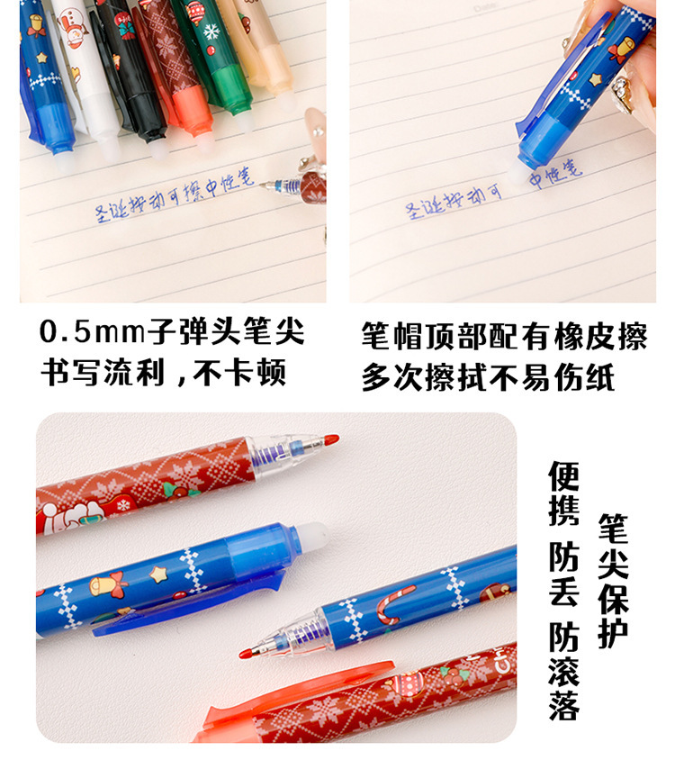ins圣诞节按动可擦笔 学生高颜值圣诞文具礼品子弹头按压魔力擦笔