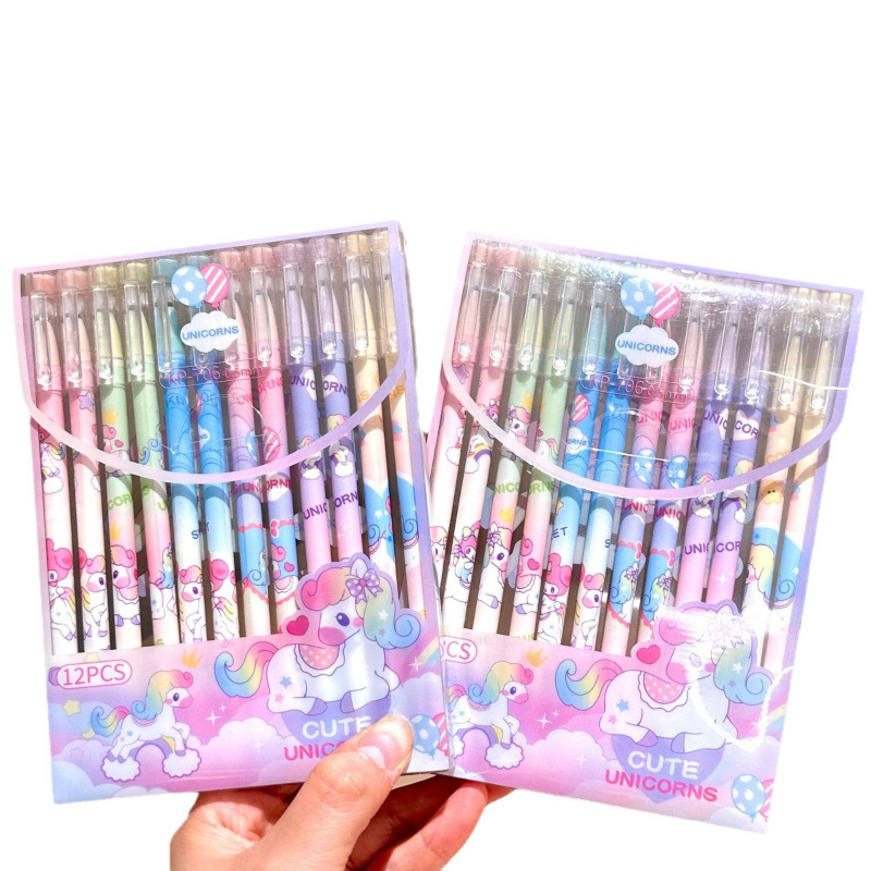 可爱ins风拔帽盒装中性笔可擦笔黑色小恐龙系列卡通笔学生套装黑