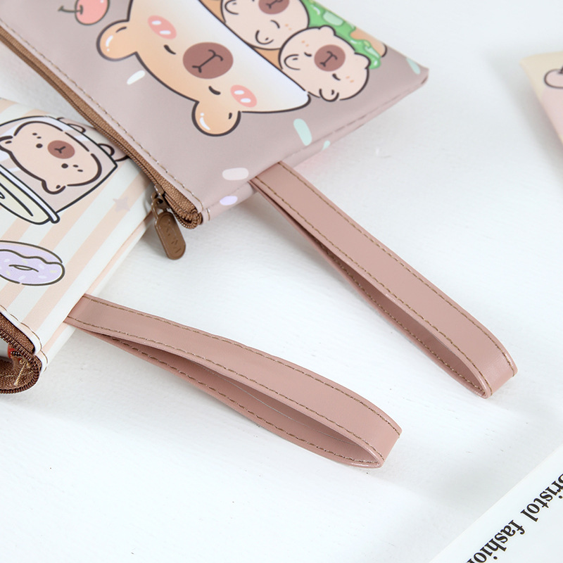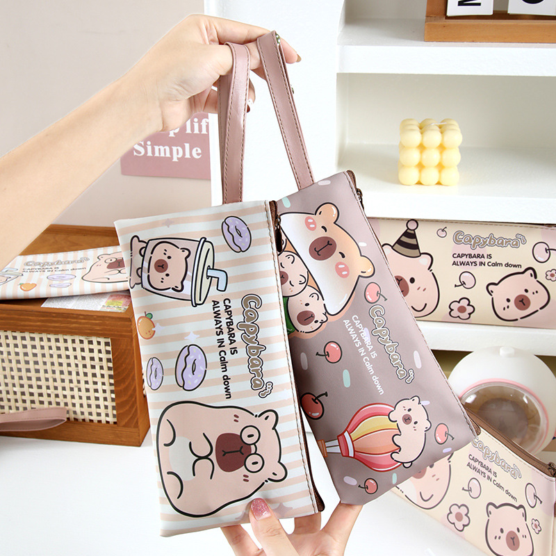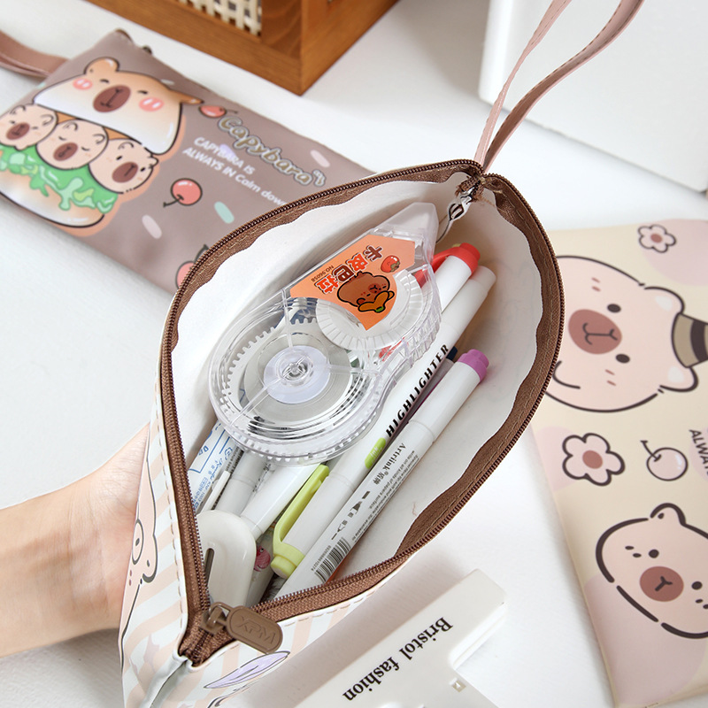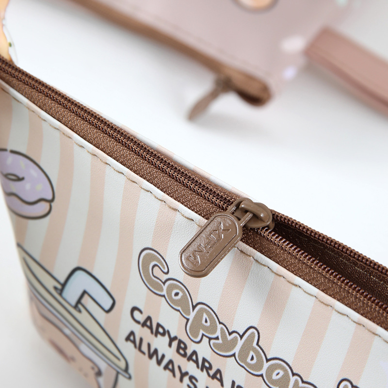 卡皮大容量笔袋可爱拉链可挂PU文具袋学生学习文具用品开学季礼品