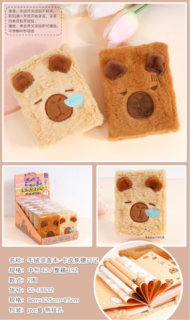 毛绒录音本笔记本 卡皮巴拉毛毛彩页本节日礼品纪念学生学习文具