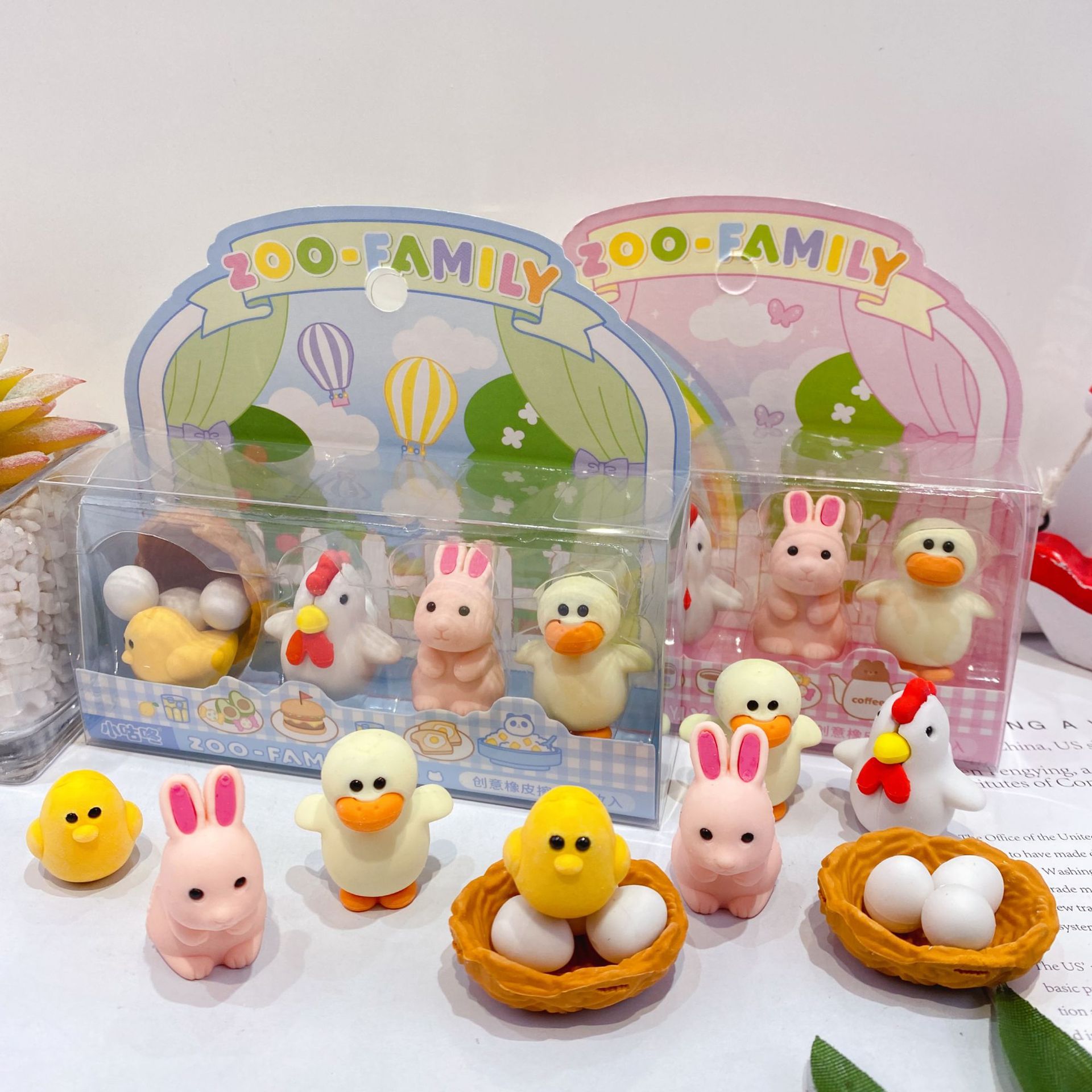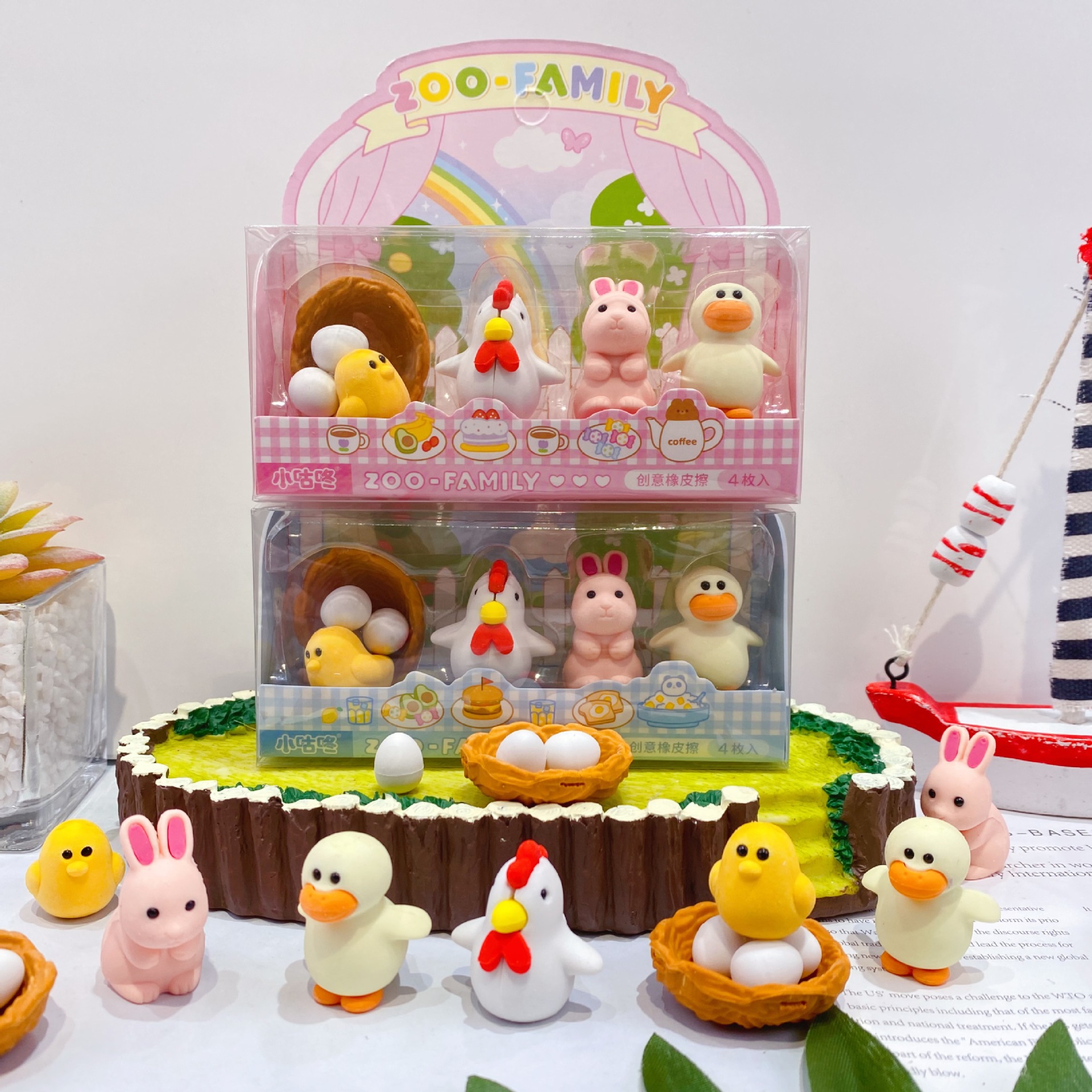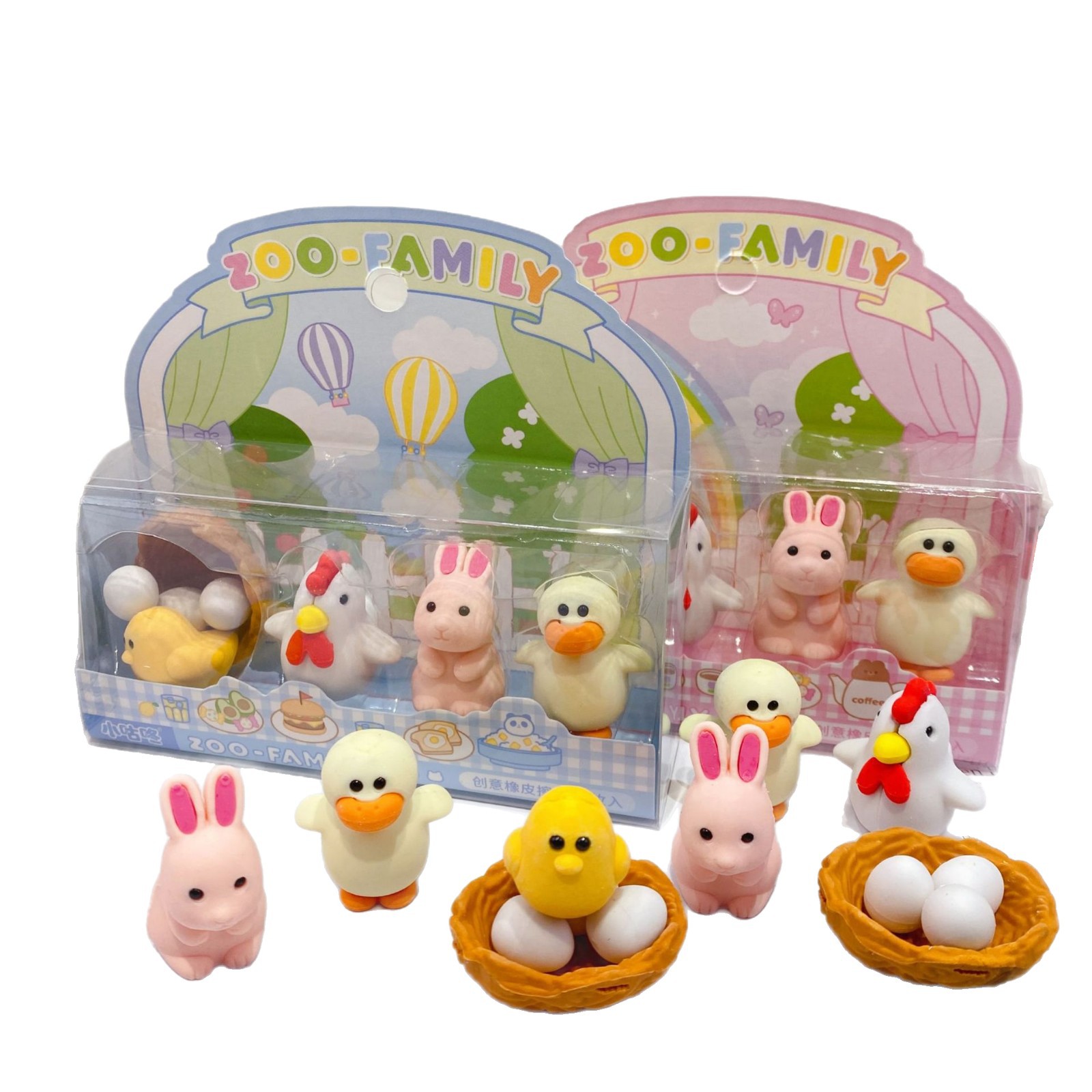 新款家禽孵蛋橡皮擦套装可爱学生文具造型橡皮可拆卸擦得干净无痕