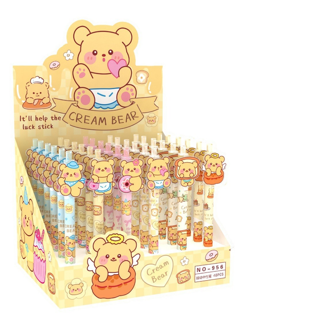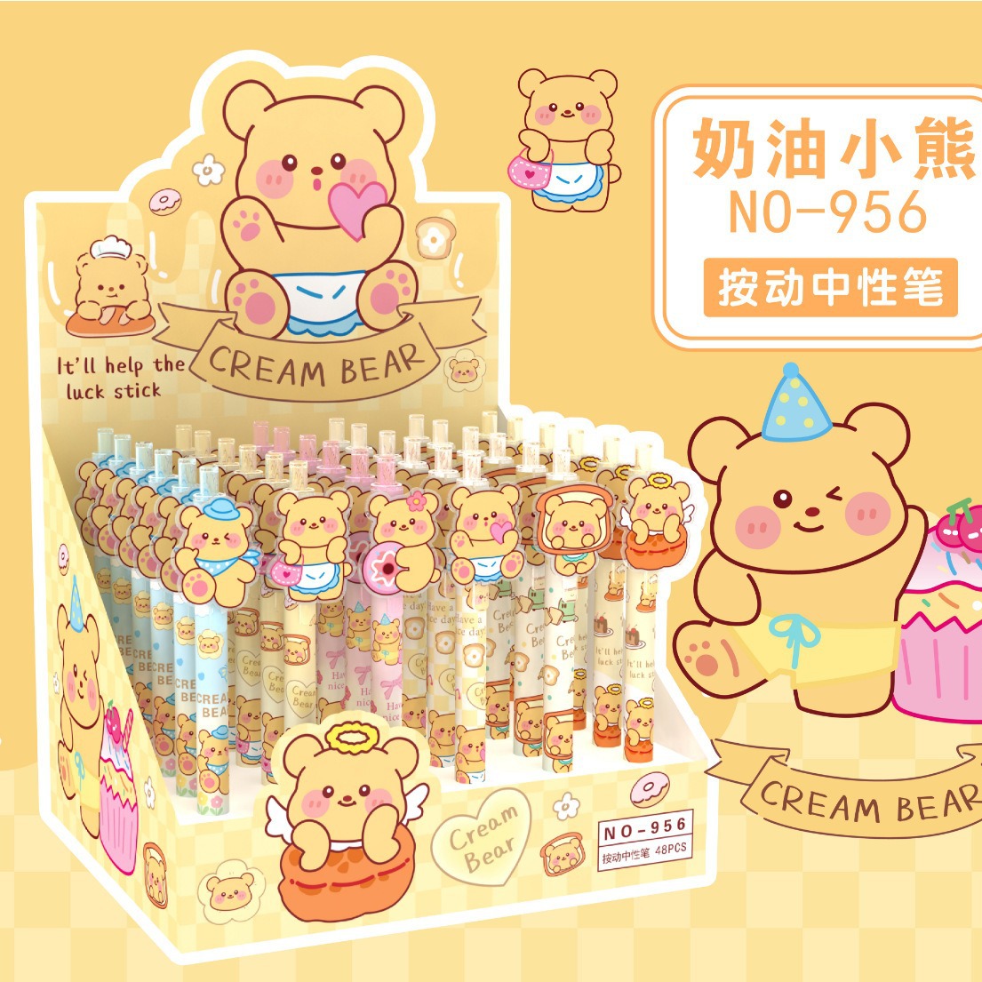 CyiMu-956奶油小熊贴片按动笔高颜值可爱学生中性笔0.5mm黑签字笔