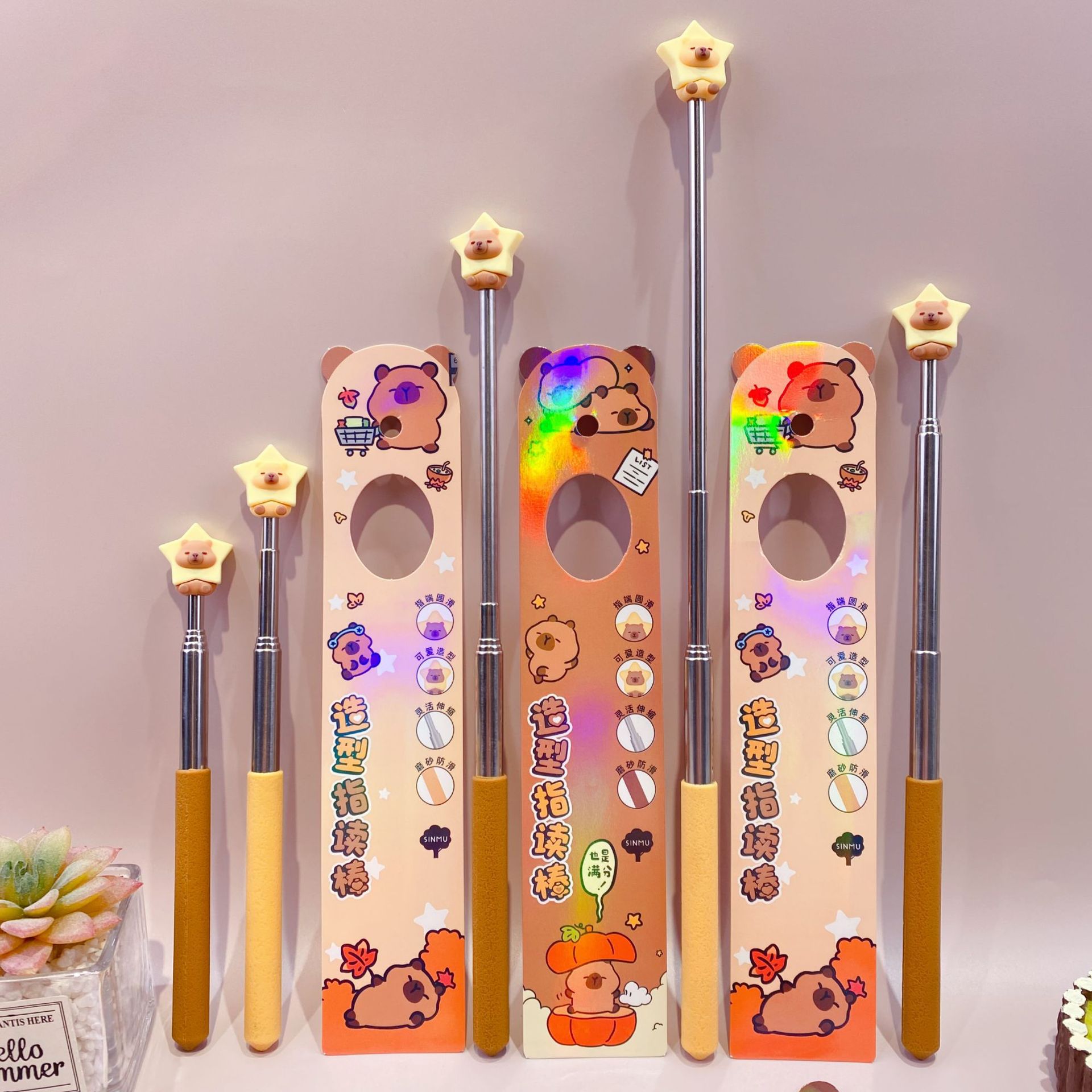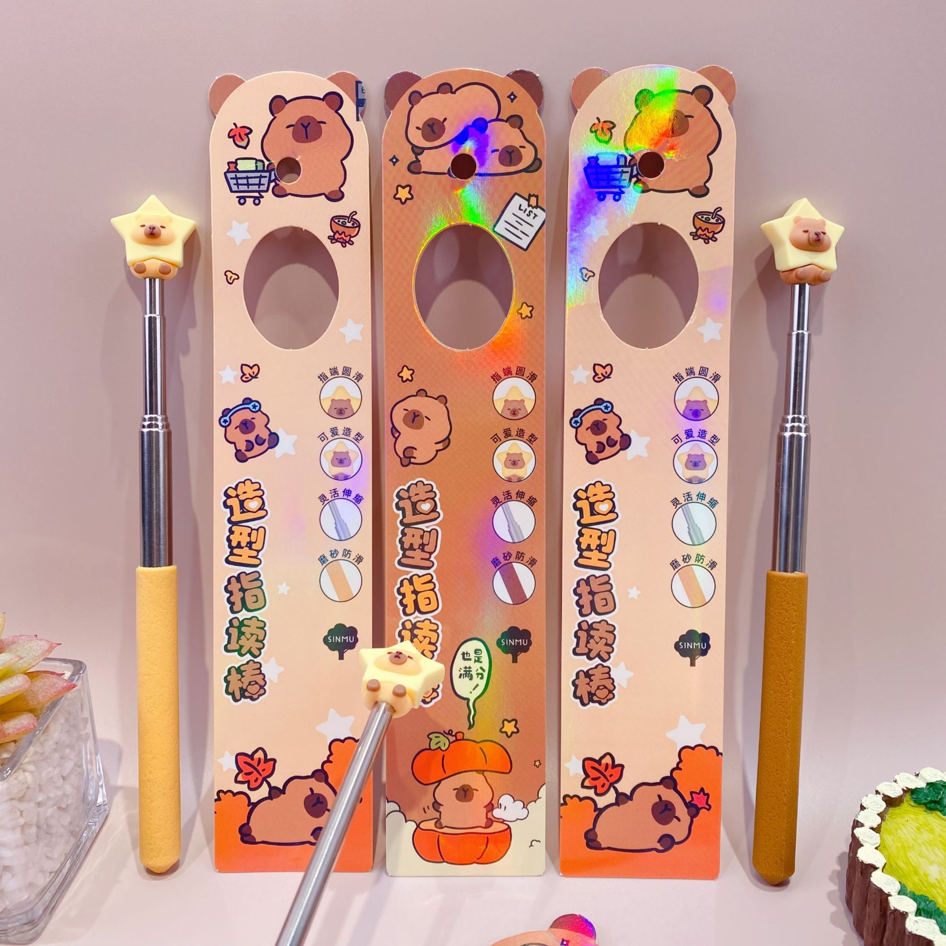 新款卡皮巴拉造型伸缩指读棒可爱卡通阅读手指伸缩点读棒教鞭教棒