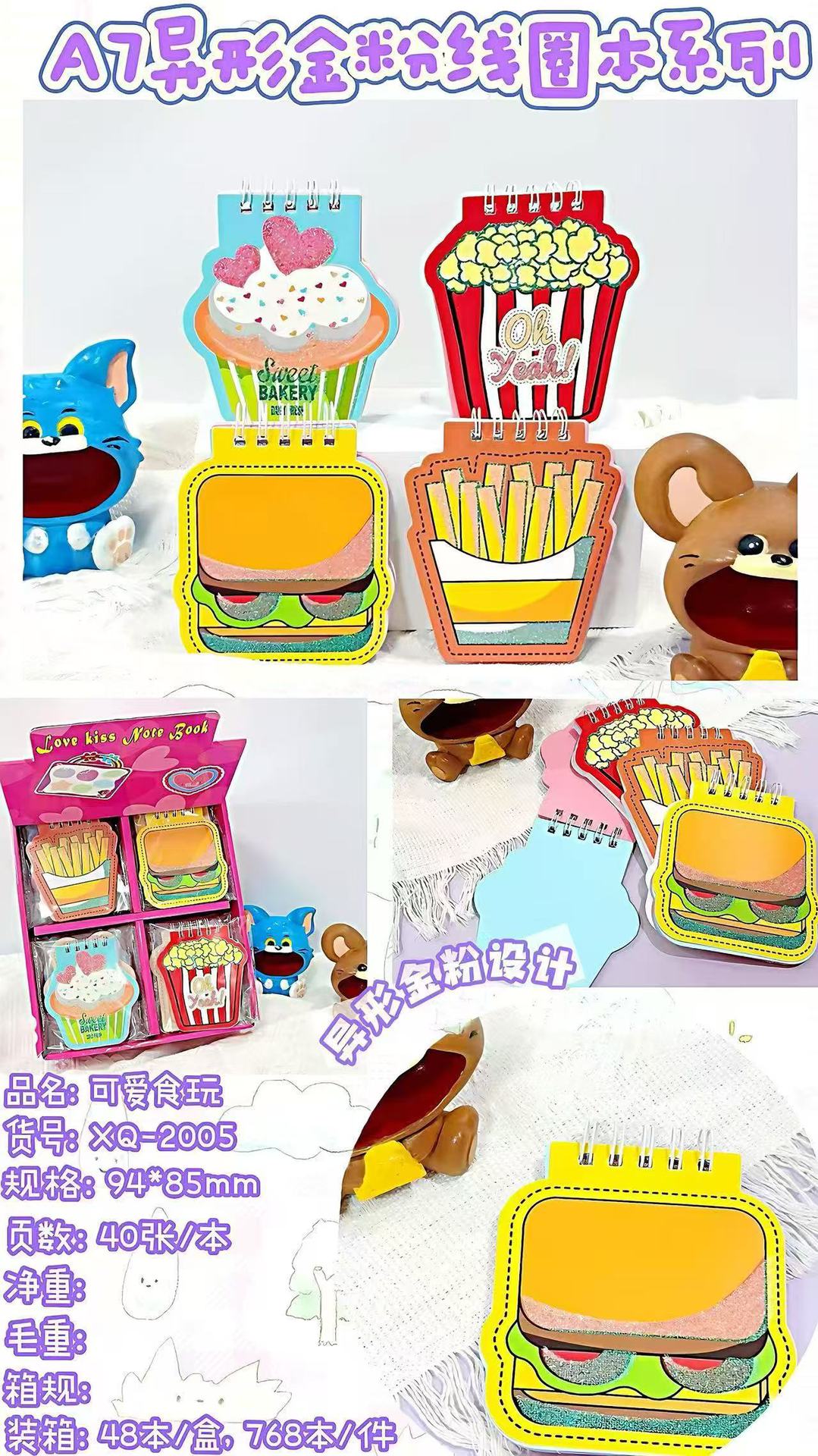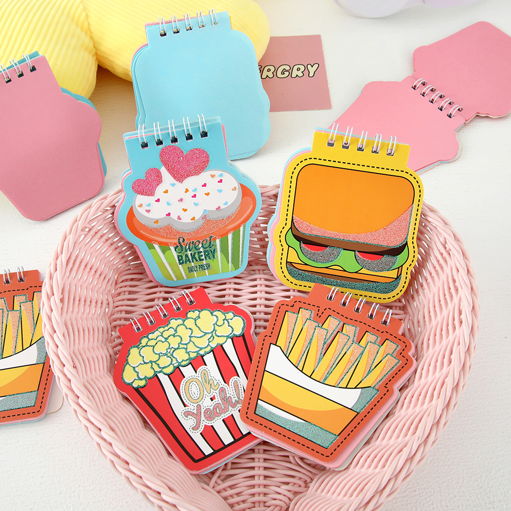 可爱食玩金粉异形线圈本爆米花薯条彩页手账记事本学生留言笔记本