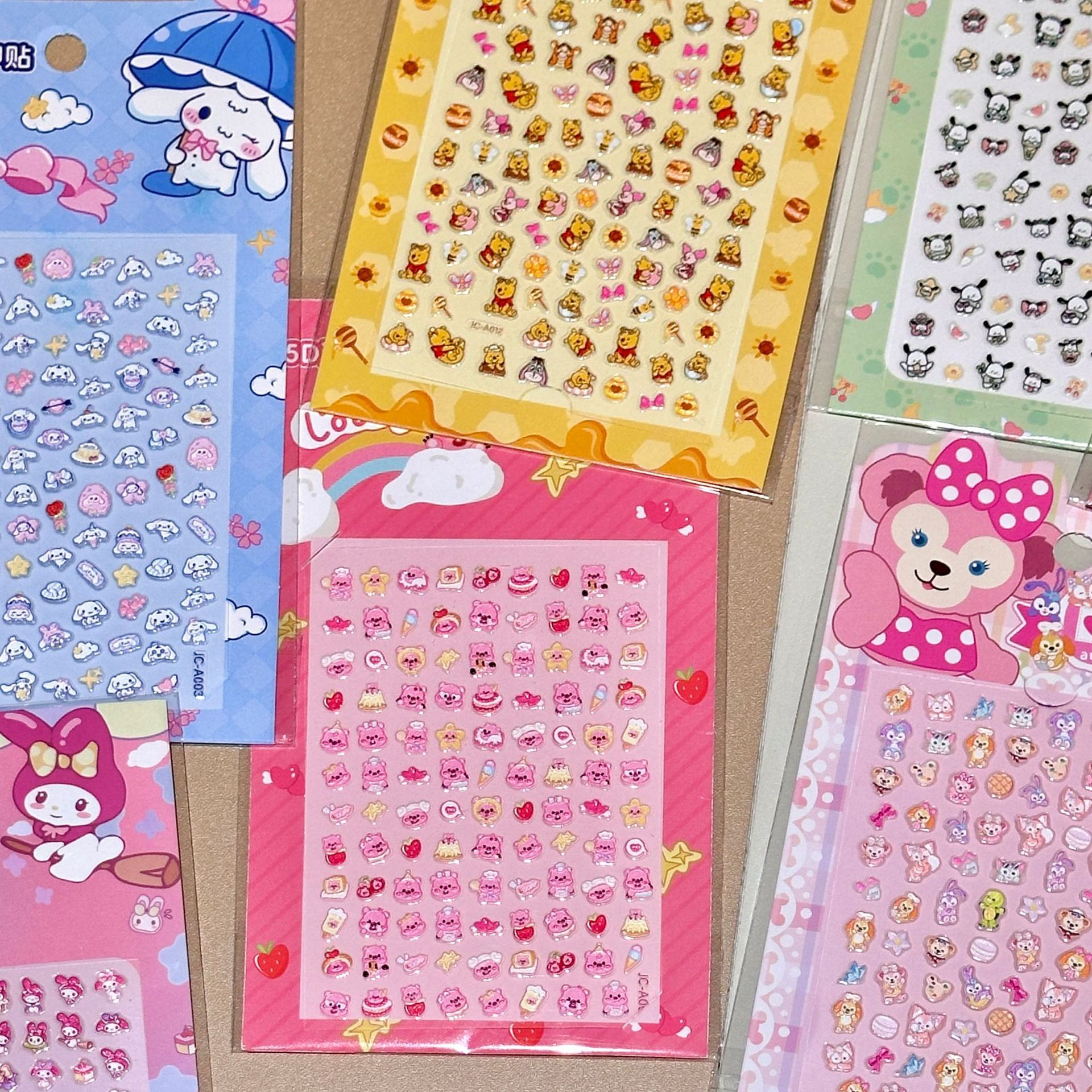 5D浮雕指甲贴儿童三丽鸥库洛米防水指甲贴片玉桂狗凯蒂猫美甲贴纸