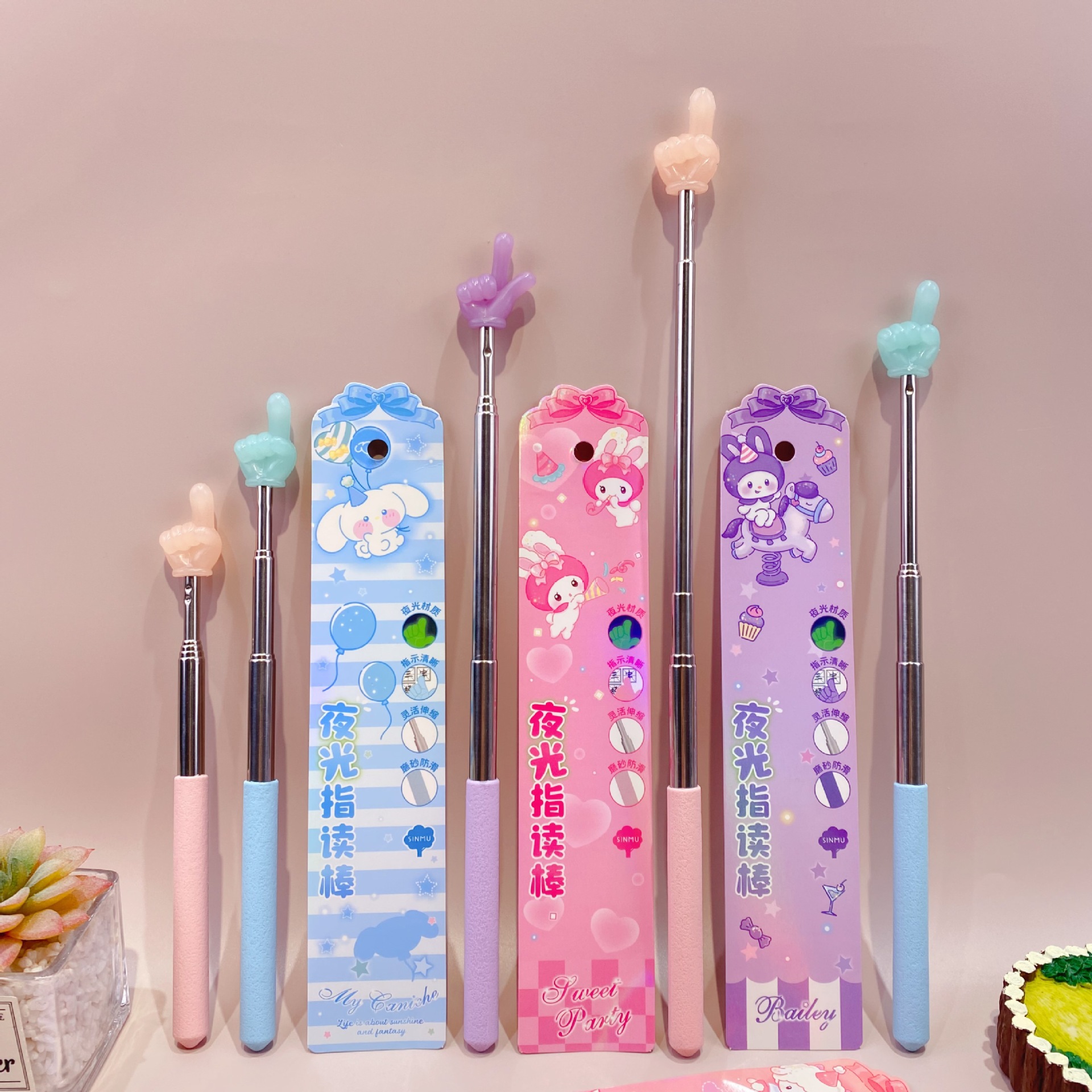 新款三丽欧夜光手指造型伸缩指读棒可爱卡通阅读棒点读棒教鞭教棒