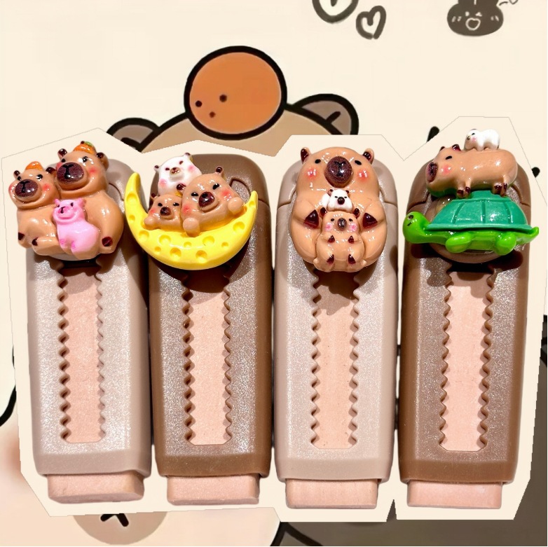 卡皮巴拉水豚橡皮擦 可爱树脂造型推拉橡皮卡通学生学习文具用品