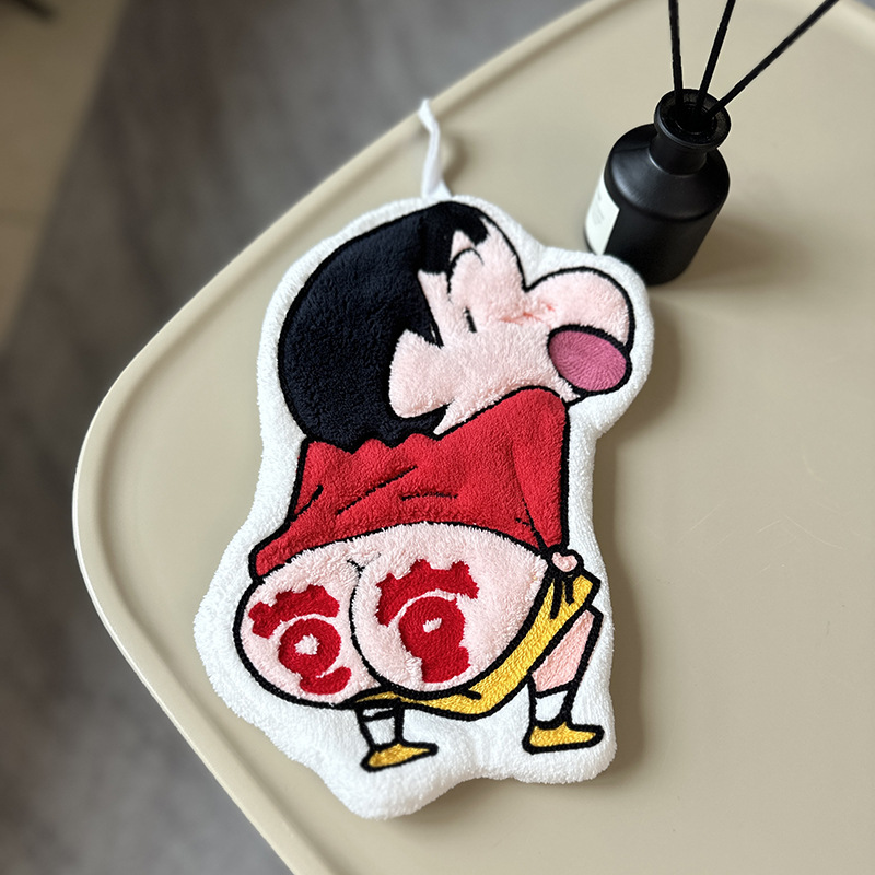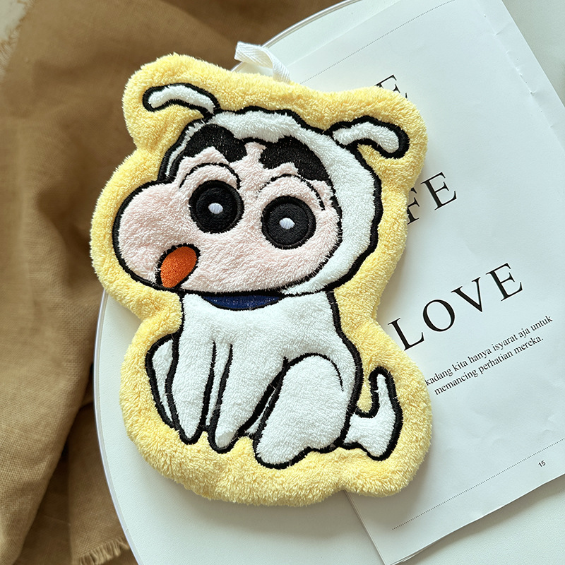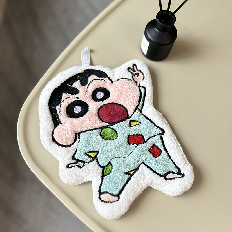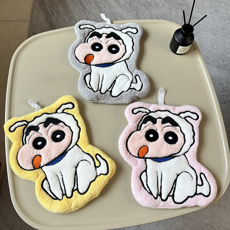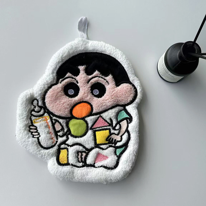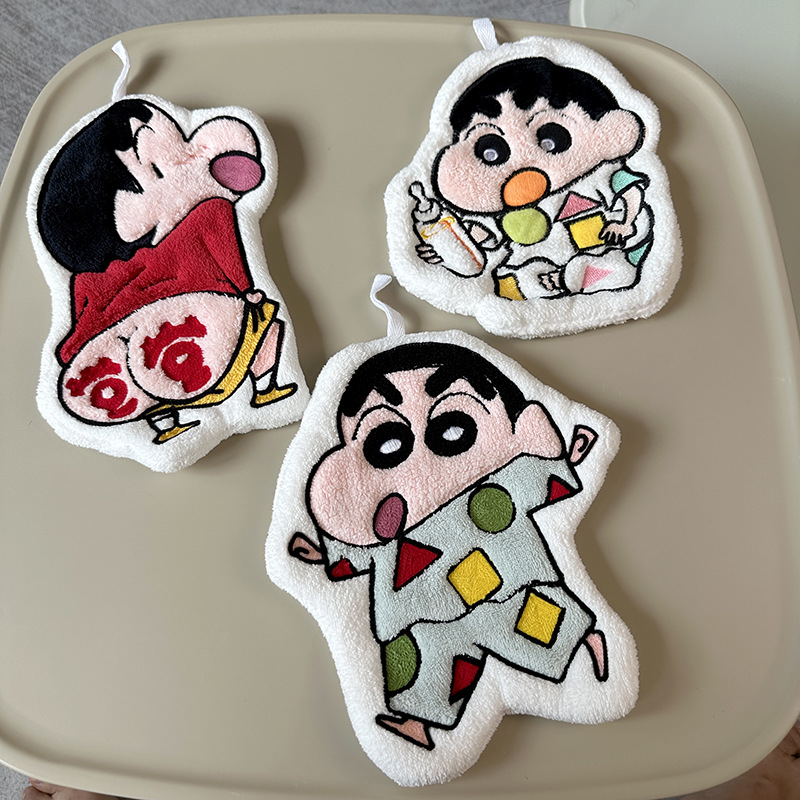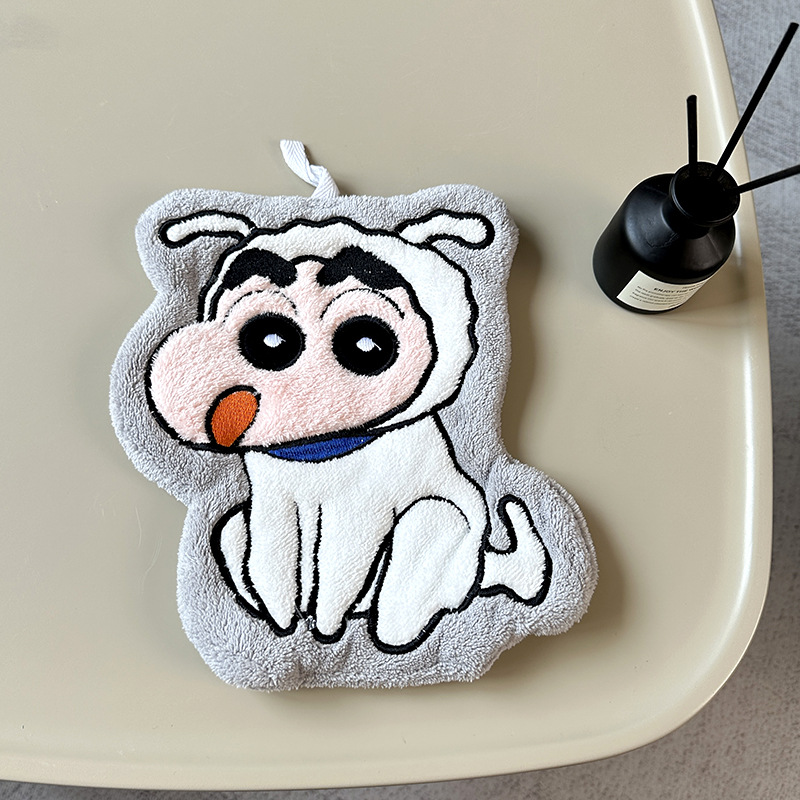 蜡笔小新挂式擦手巾吸水速干加厚儿童珊瑚绒柔软可爱毛巾周边礼品