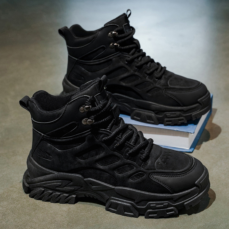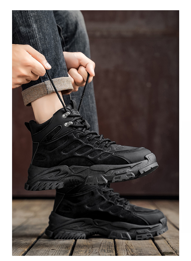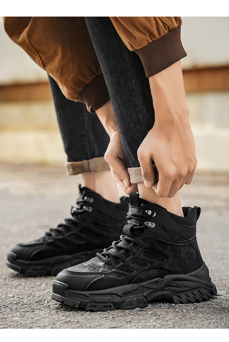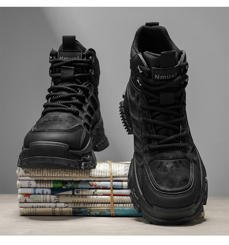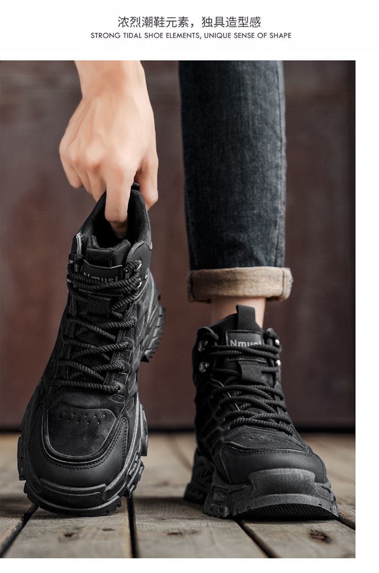 秋季男鞋新款高帮工装鞋子男潮流百搭厚底增高运动休闲短靴马丁靴