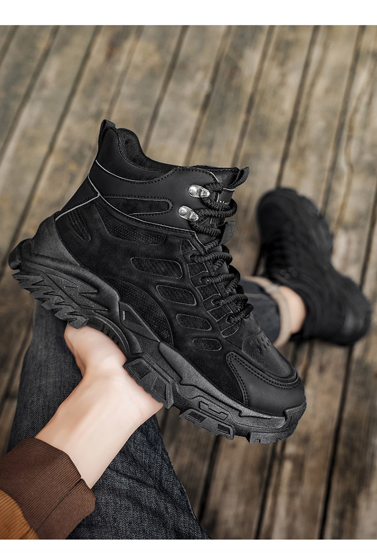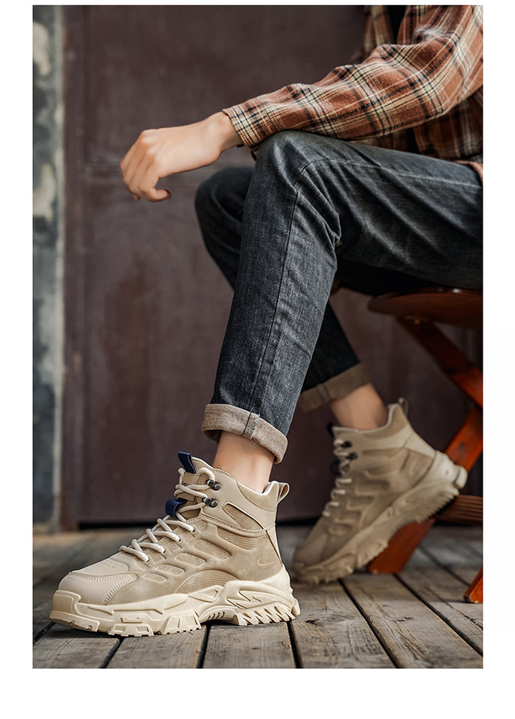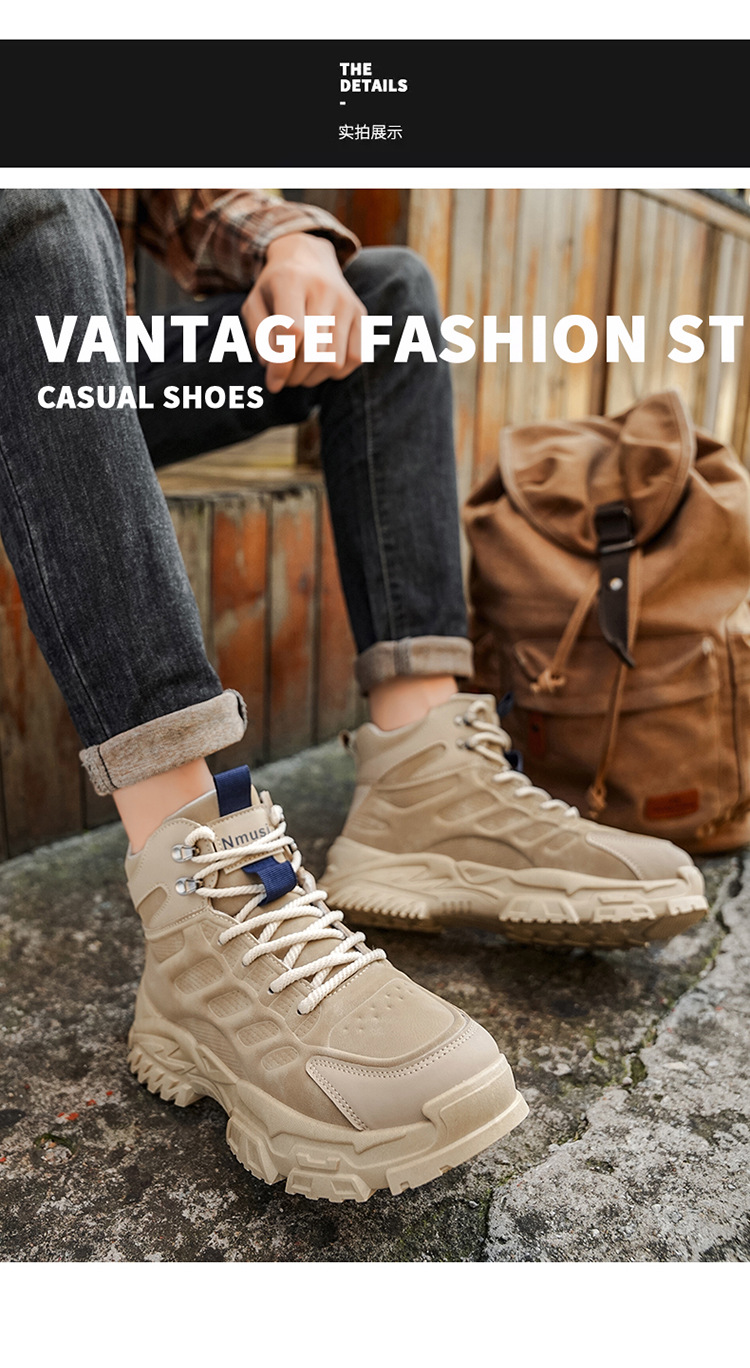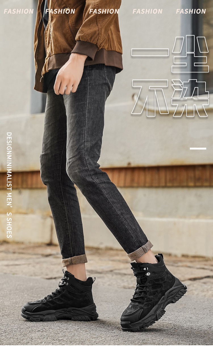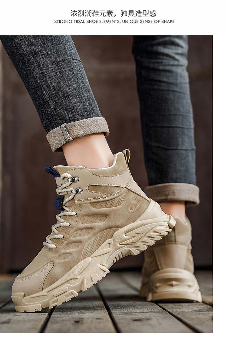 秋季男鞋新款高帮工装鞋子男潮流百搭厚底增高运动休闲短靴马丁靴