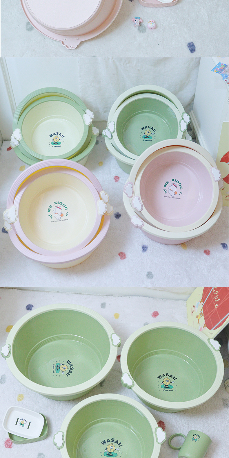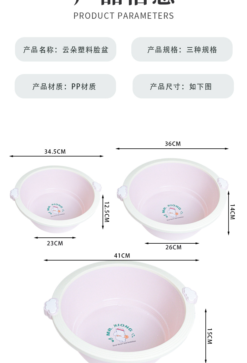 云朵系列脸盆家用宝宝儿童可爱小熊脸盆洗手洗脚洗脸盆壁挂加厚