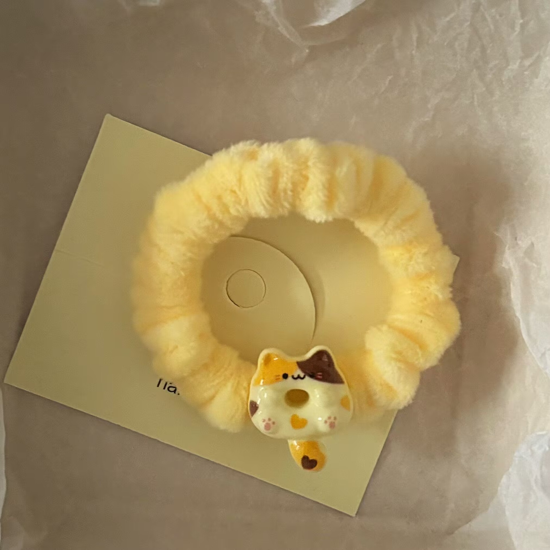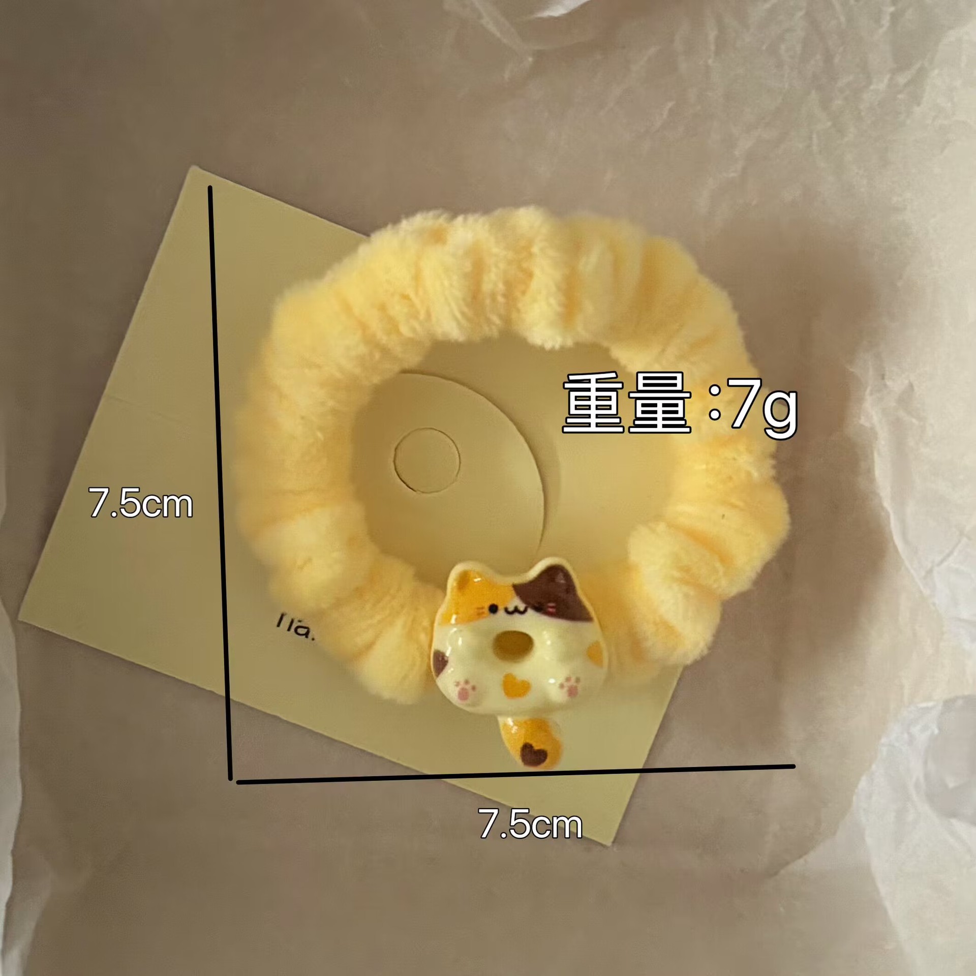 秋冬奶油色黄色猫咪甜甜圈小肠圈发圈卡通软萌女孩马尾发绳发饰新