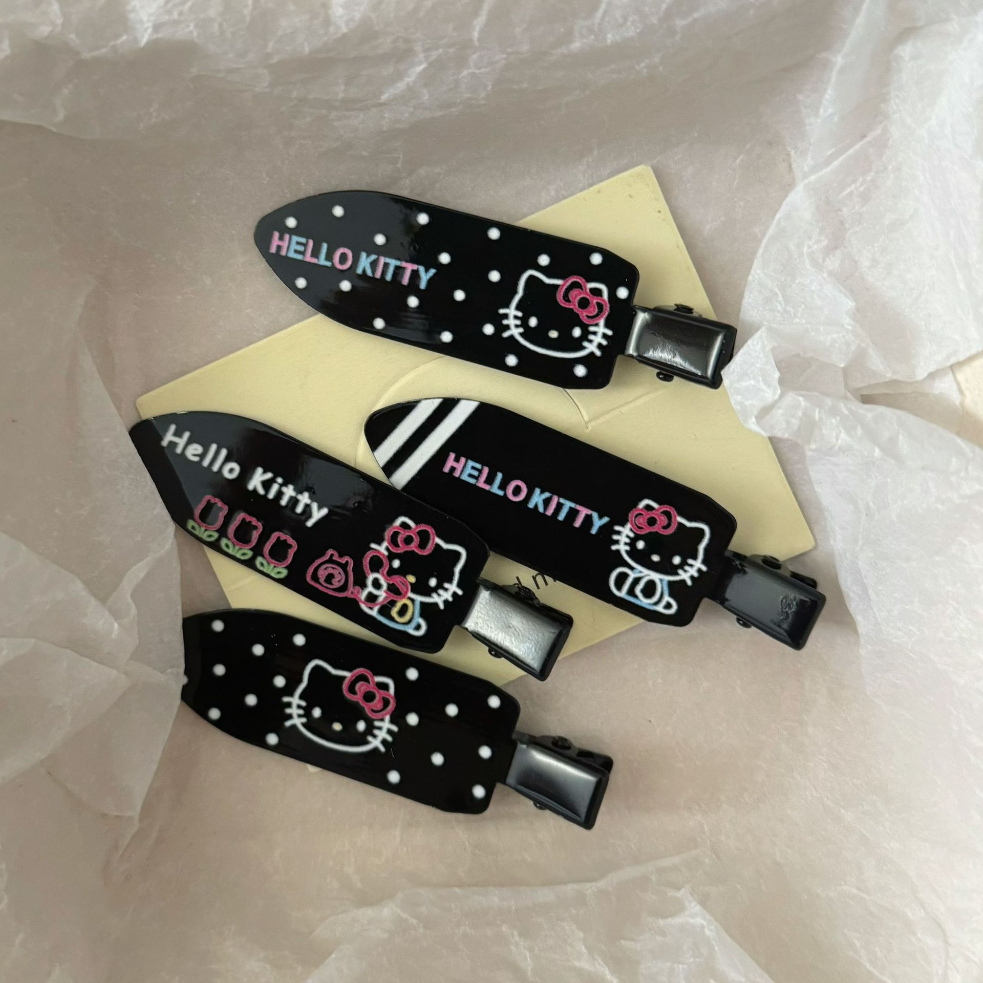 甜酷风黑色猫咪印花铲子发夹日系甜美少女风碎发刘海发卡发饰批发