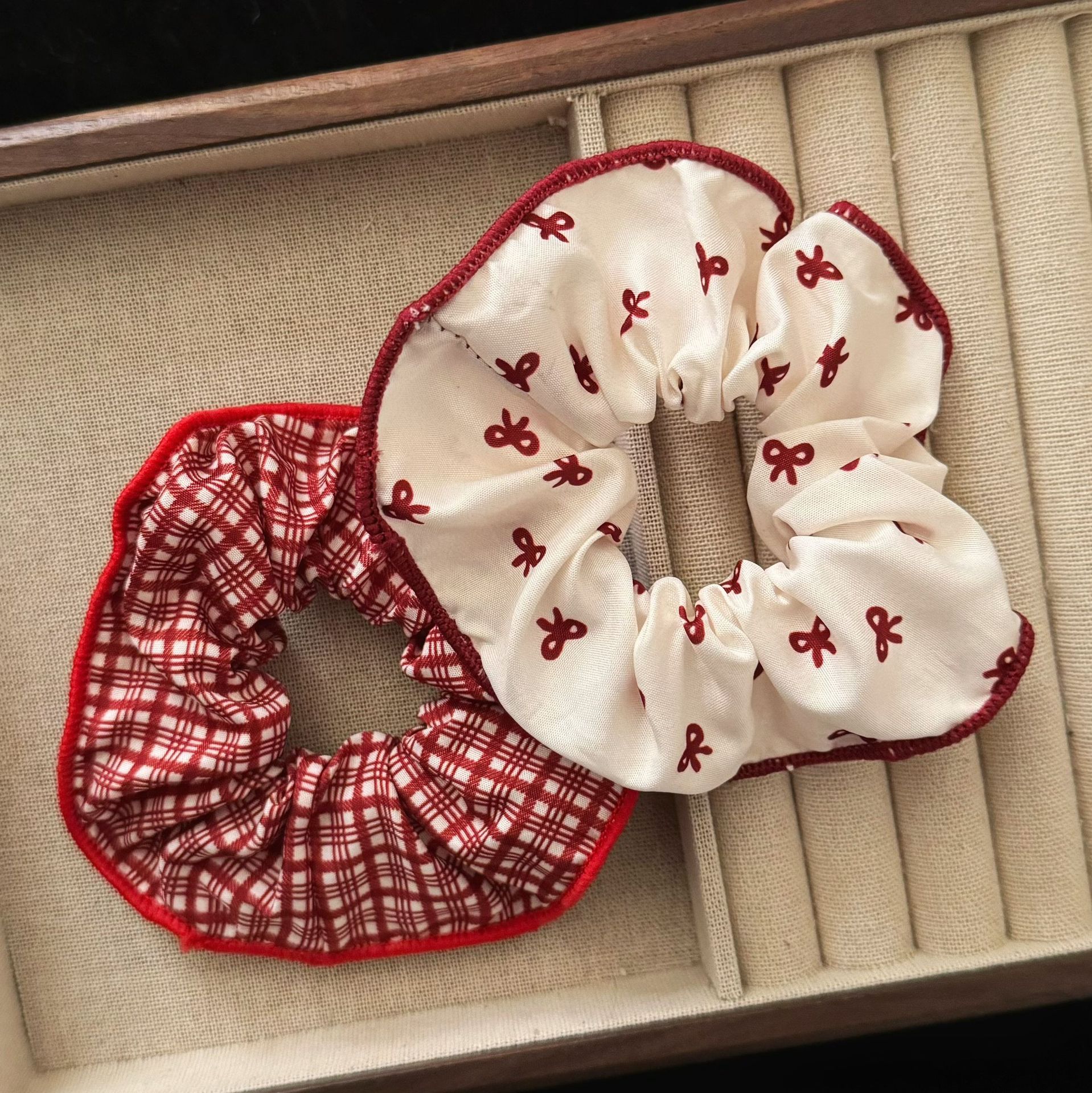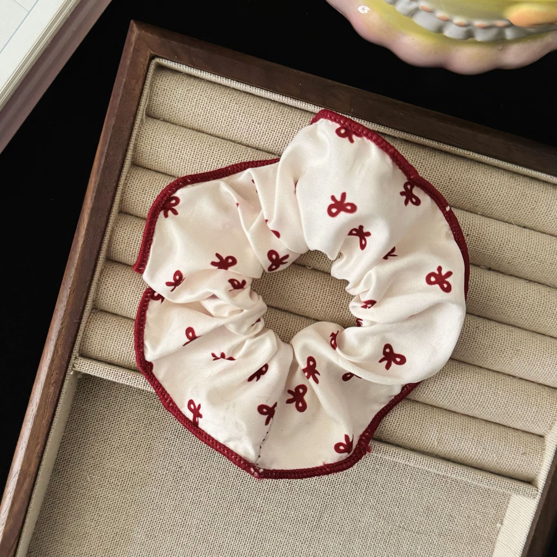 甜酷风红色系印花领结格子大肠发圈韩系高级感少女风肥肠发绳发饰