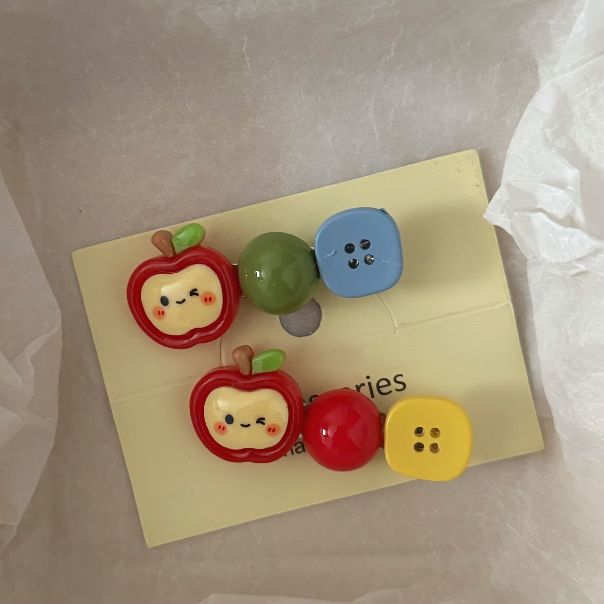 可爱腮红苹果扣子发夹卡通软萌女孩风鸭嘴夹发卡发饰批发夏季新款