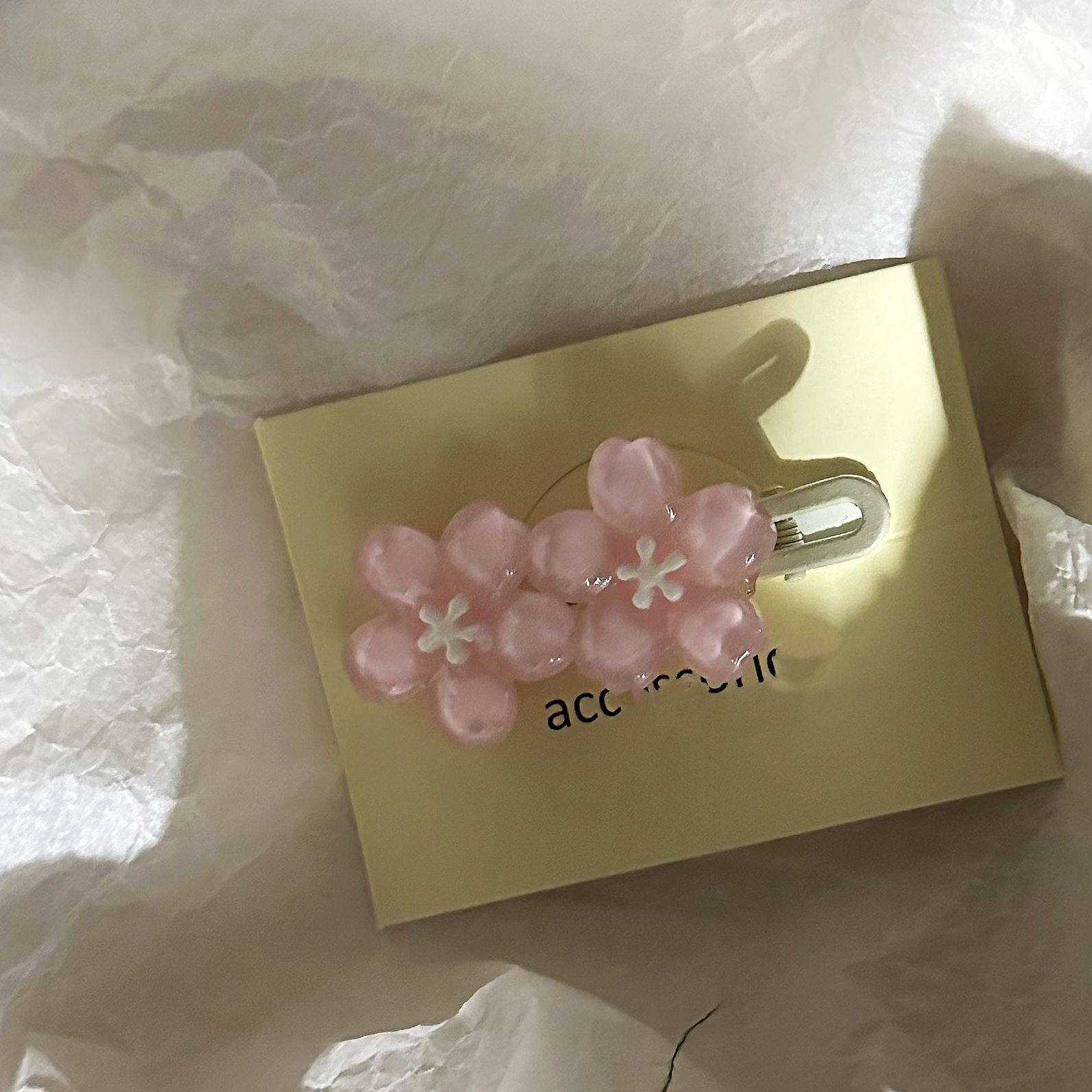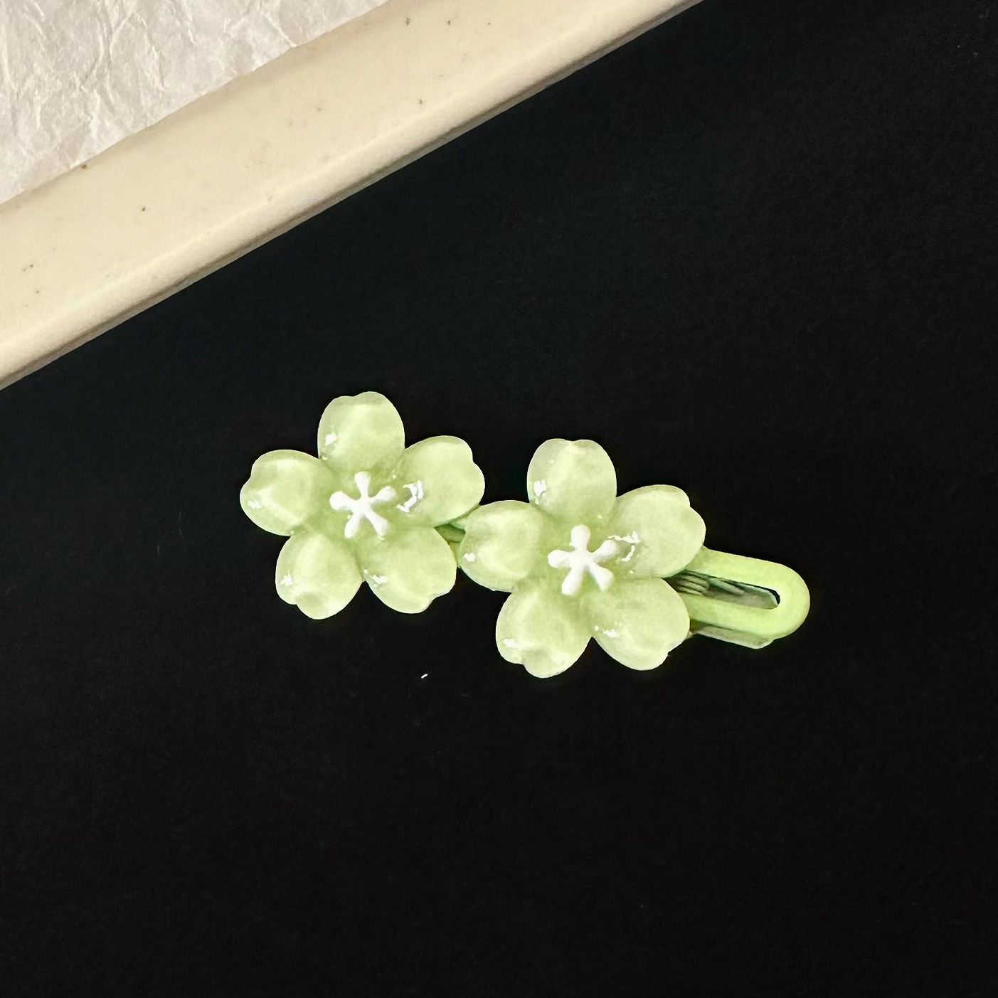 夏季清新浅绿色花朵发夹高级感甜美少女风侧边鸭嘴夹发卡饰品发饰