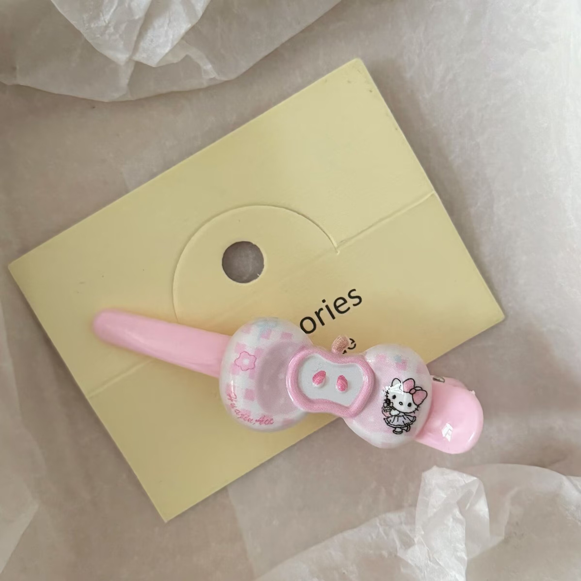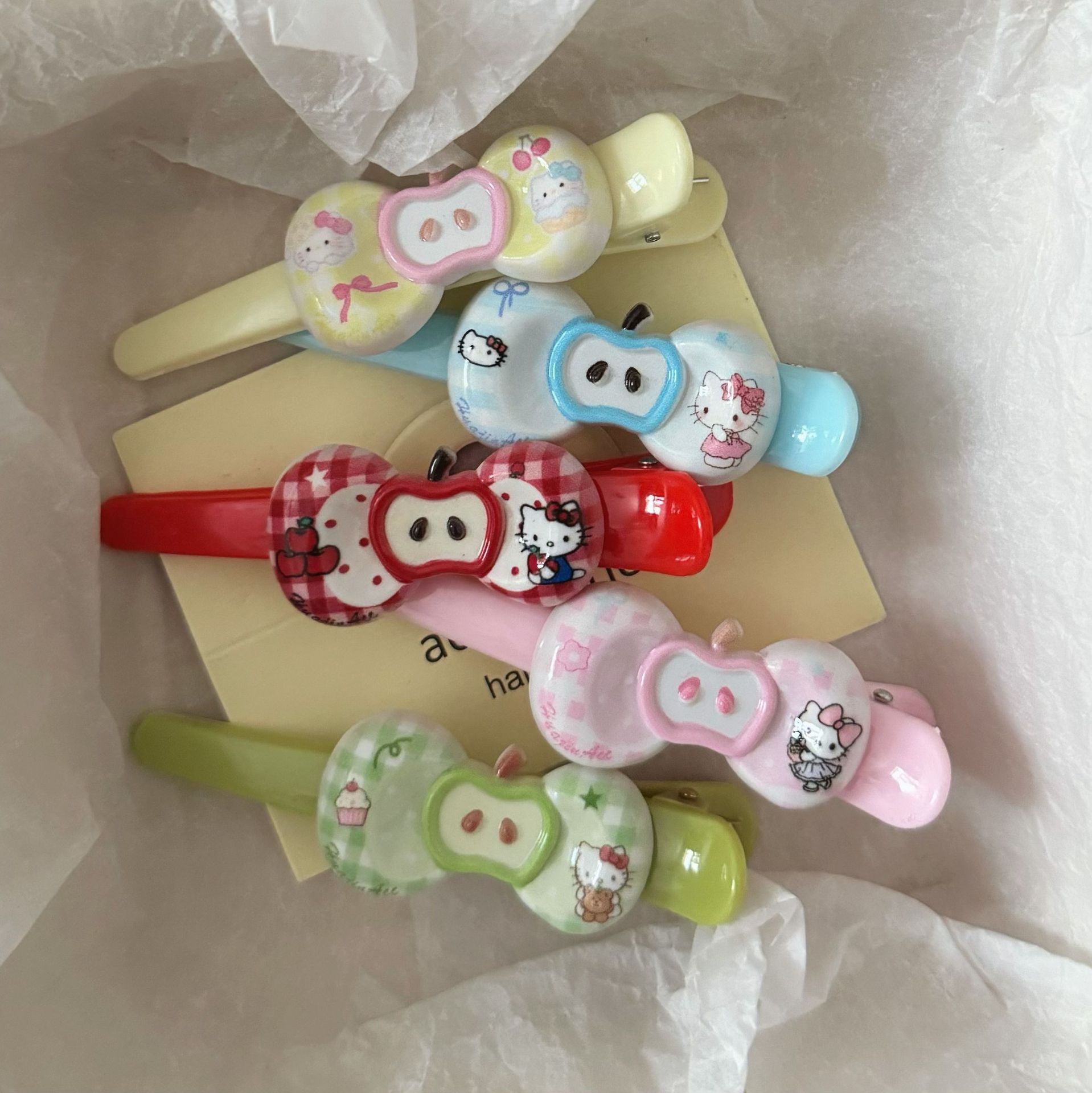 多巴胺苹果猫咪领结长条发夹日系甜美高颜值少女风鸭嘴夹发卡发饰