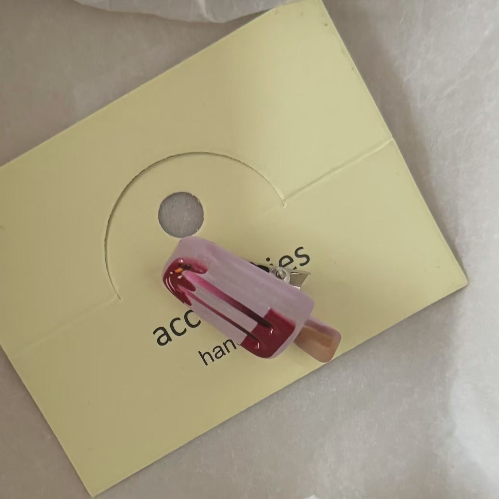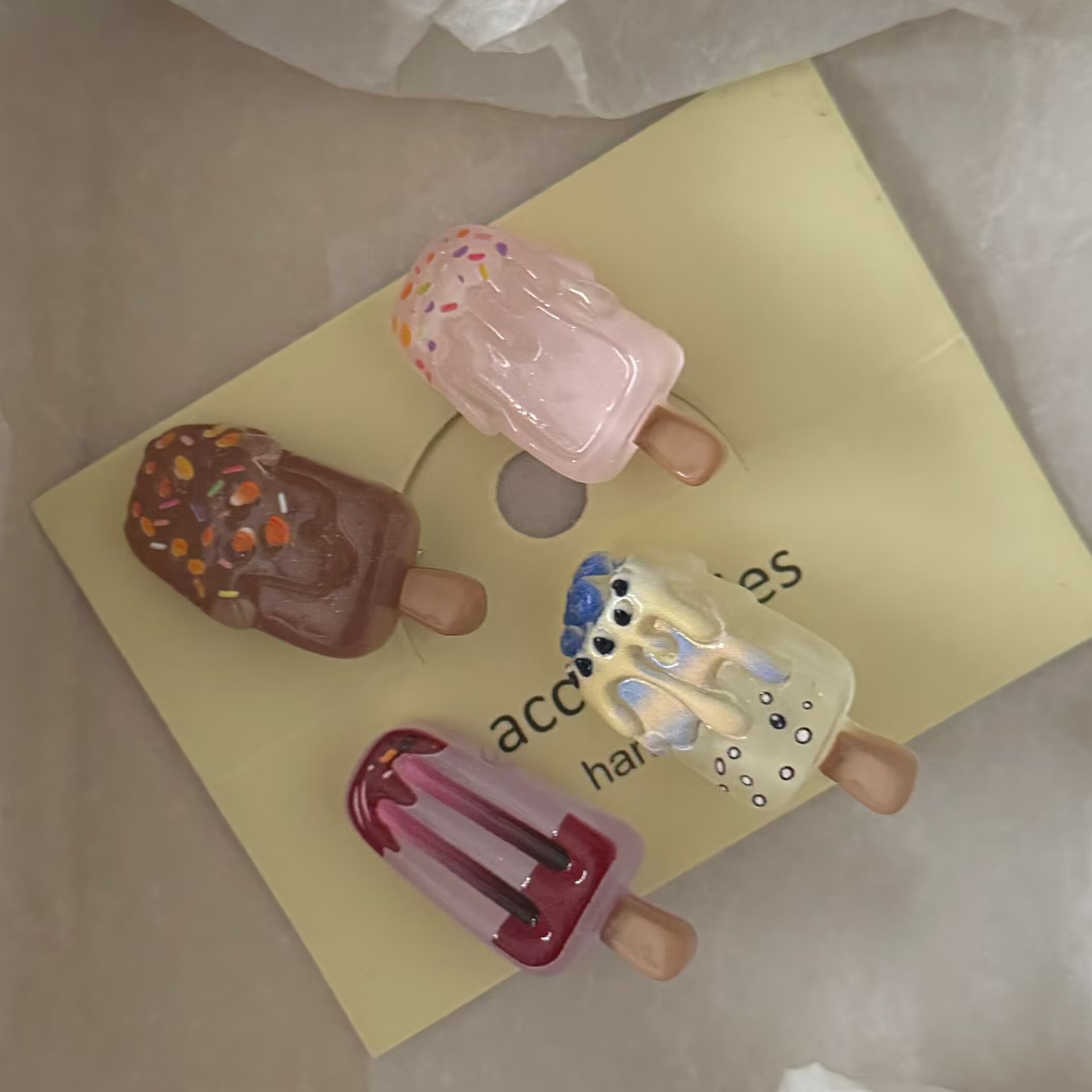 夏季新款冰透咖色雪糕发夹趣味食玩可爱风女孩鸭嘴夹发卡发饰批发