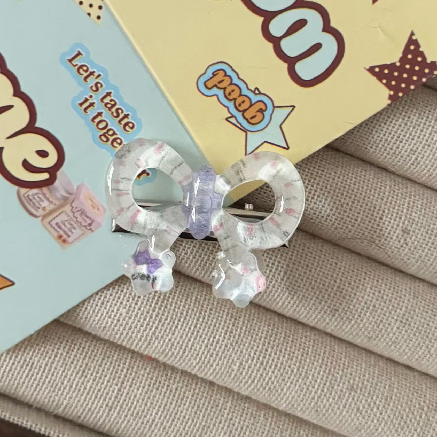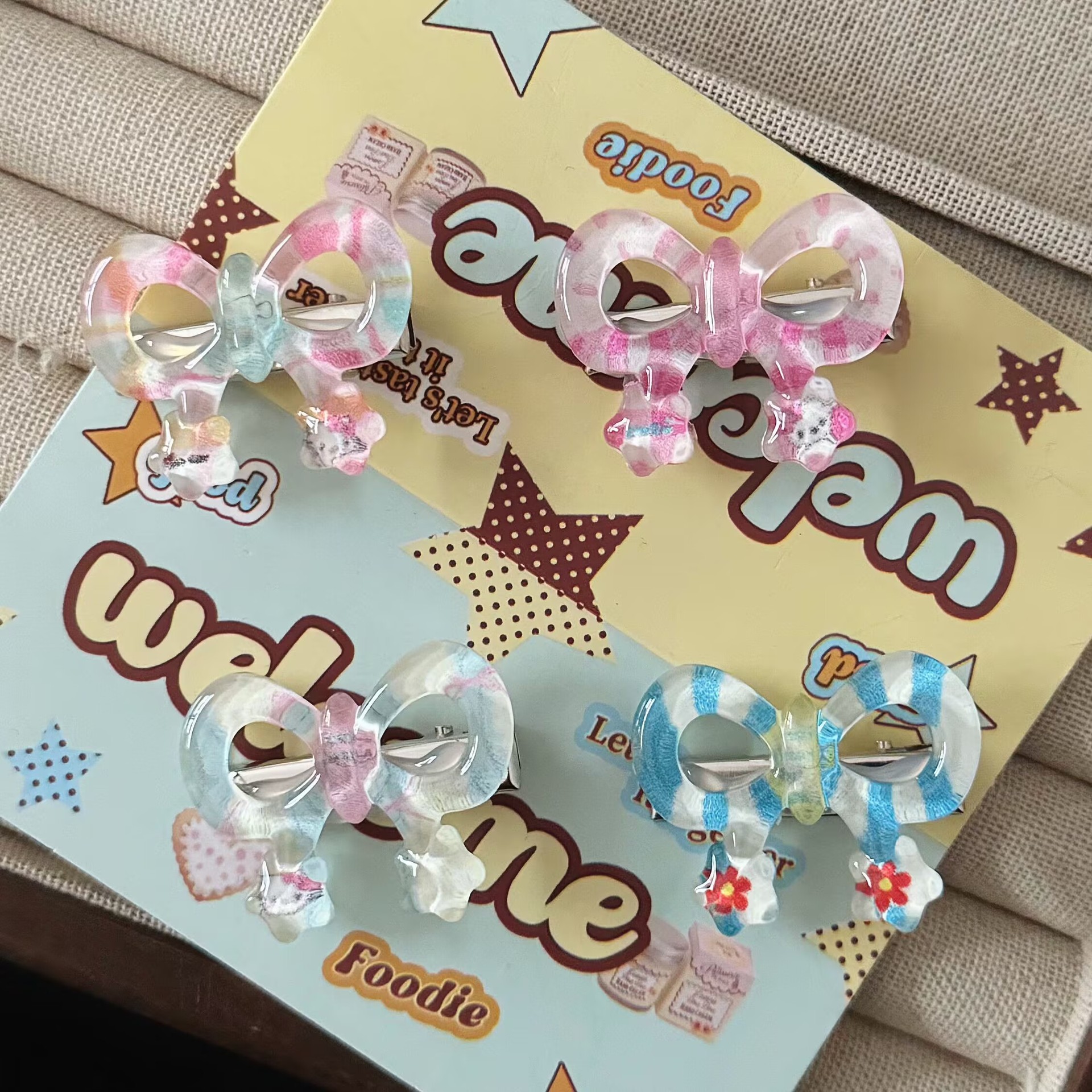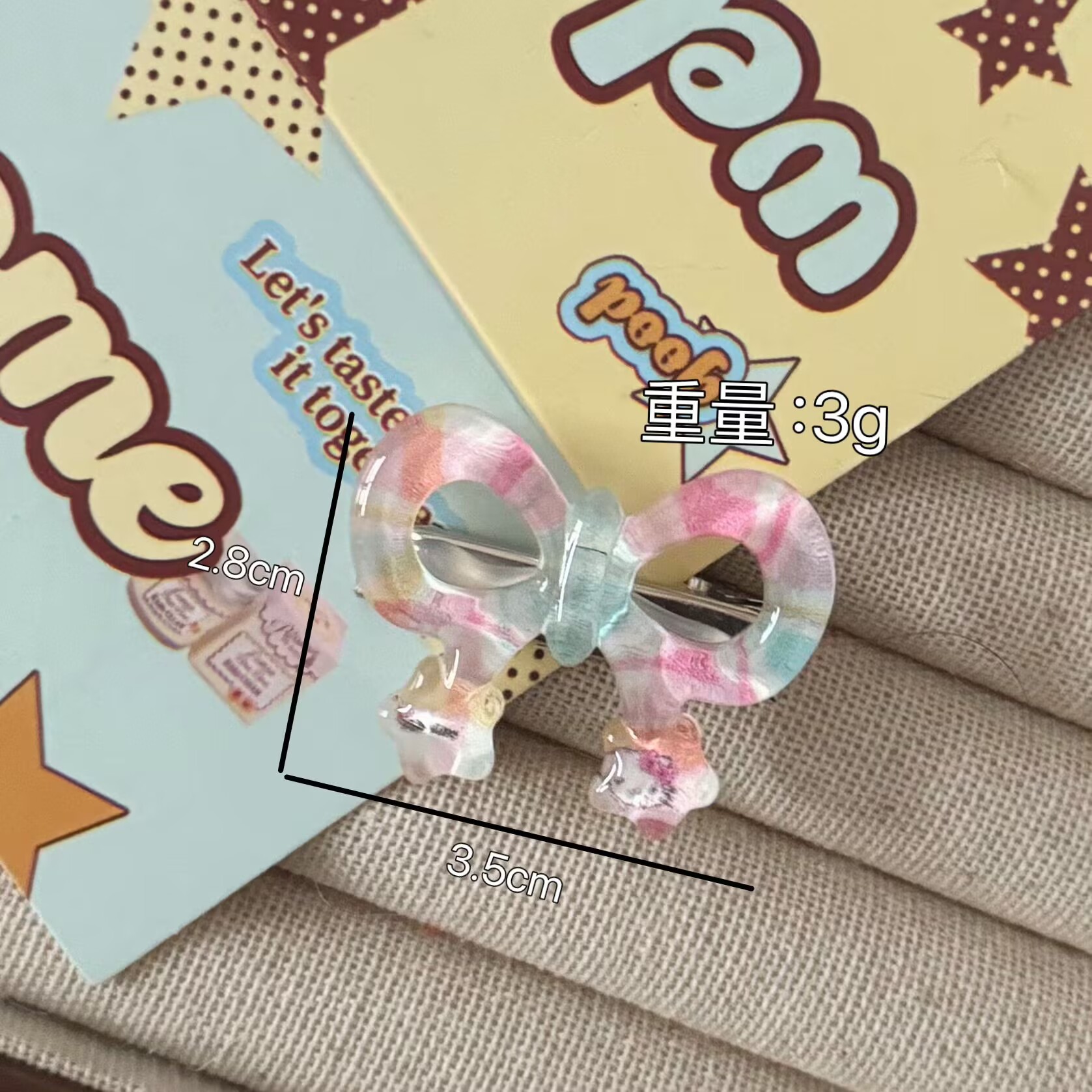 夏季新款甜酷冰透多巴胺蝴蝶结发夹韩系甜美高颜值少女鸭嘴夹发卡