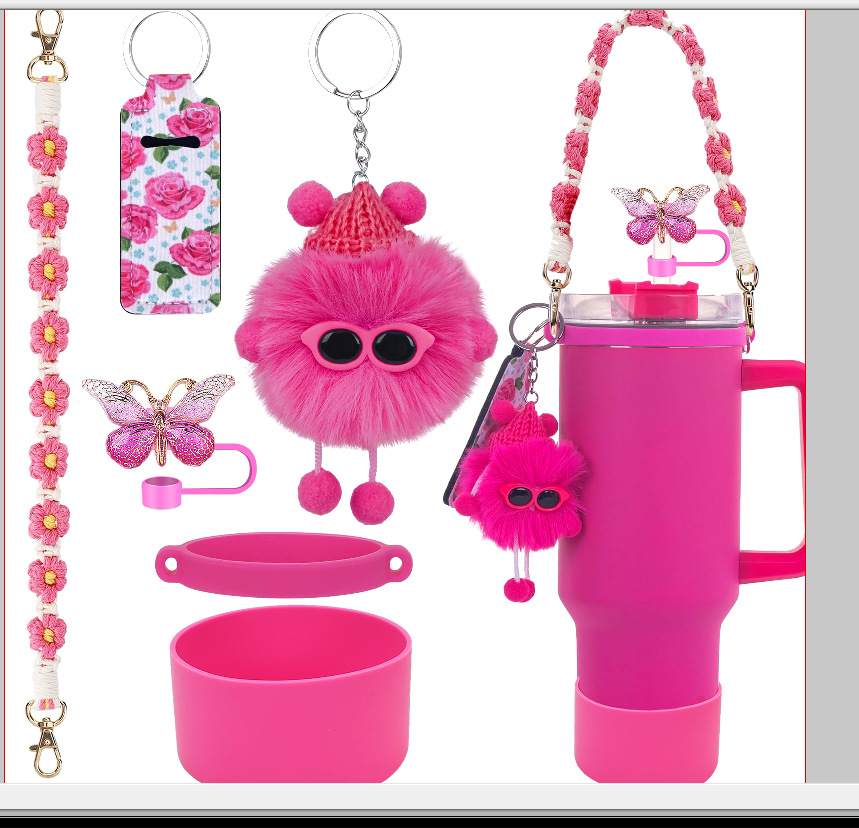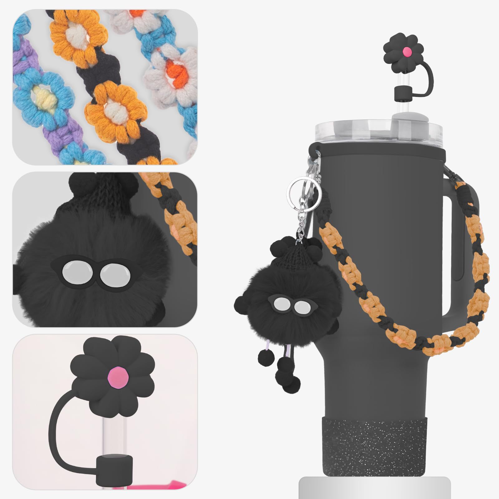 小煤球精灵挂件jins网红Stanley杯装饰吸管帽杯套杯链彩色花朵派