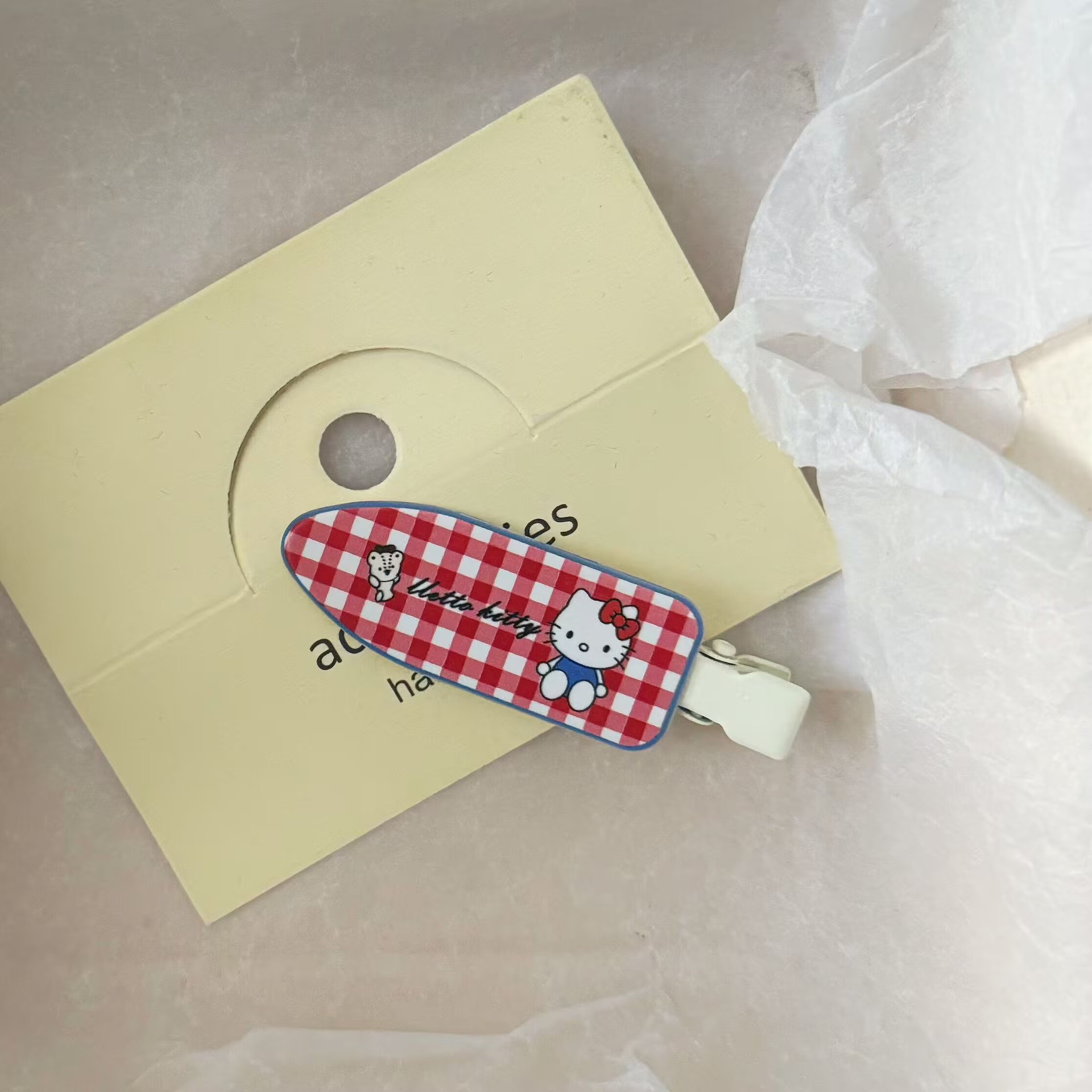 甜酷风格子红色全身猫咪铲子发夹日系甜美少女刘海碎发夹发饰批发
