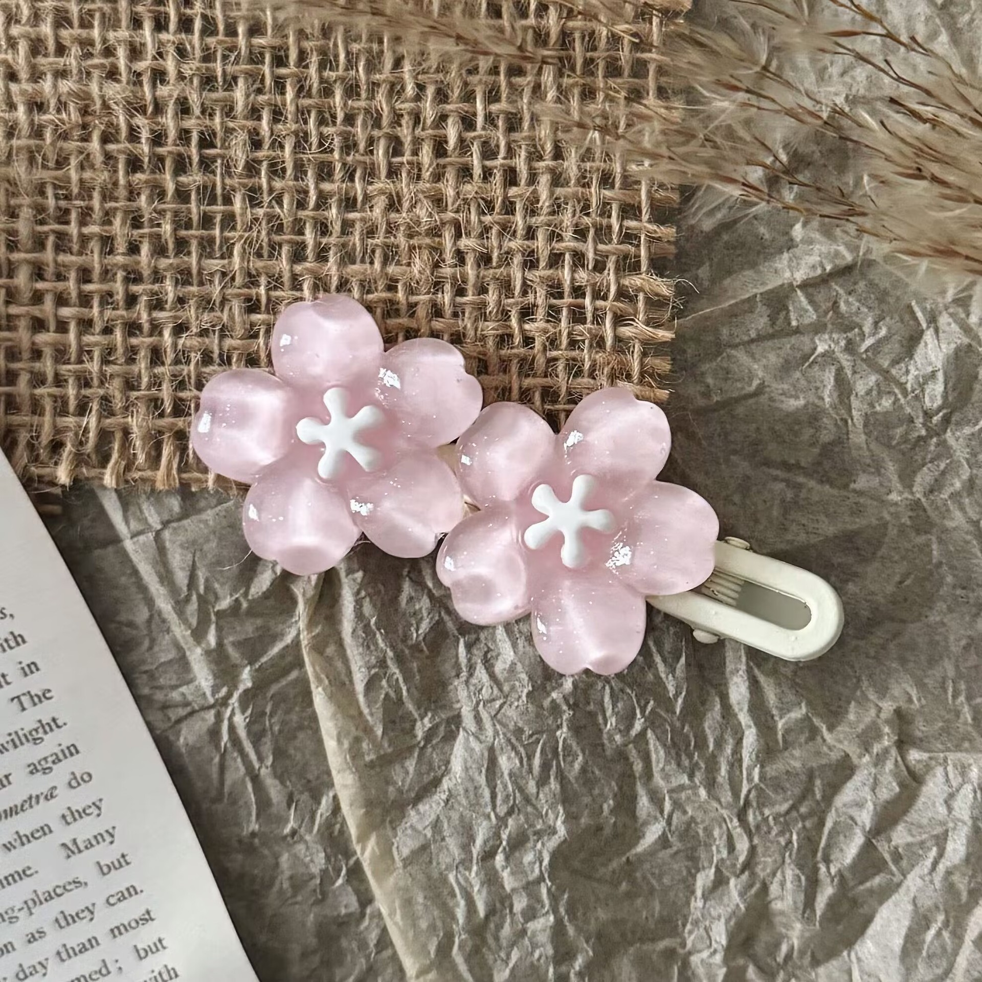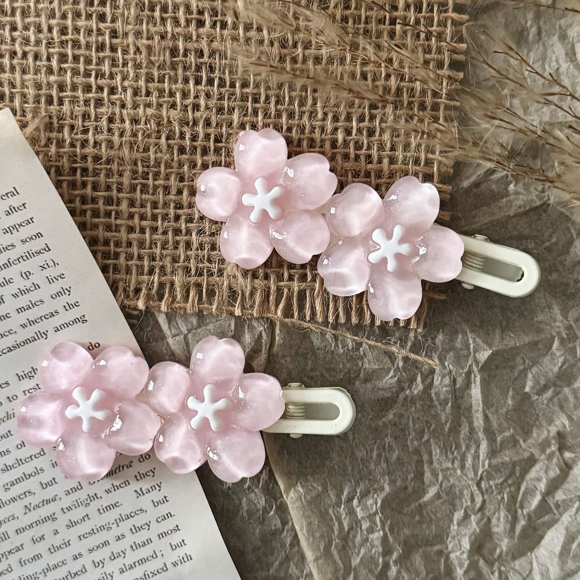 春季新款冰透粉色花朵波浪发夹甜美百搭少女风鸭嘴夹发卡发饰夹子