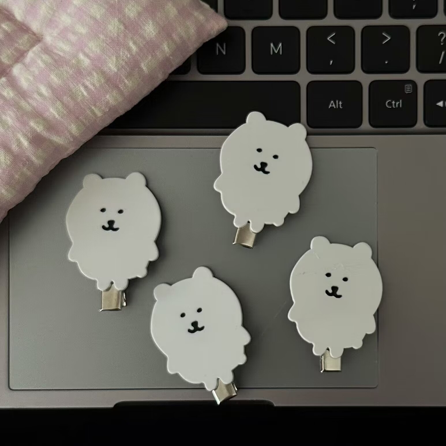 可爱白色小熊发夹亚克力软萌甜美少女风侧边夹鸭嘴夹秋冬发饰新款