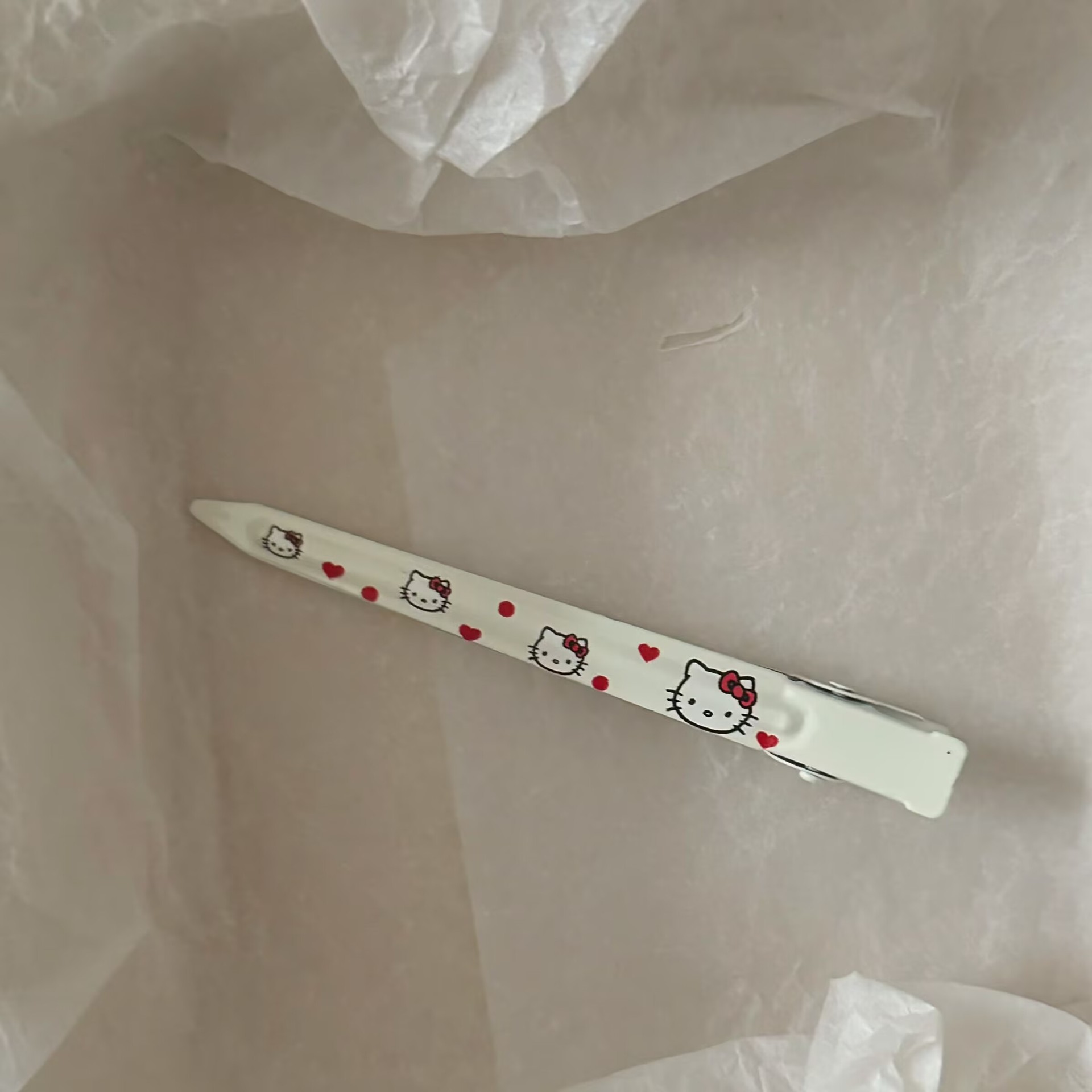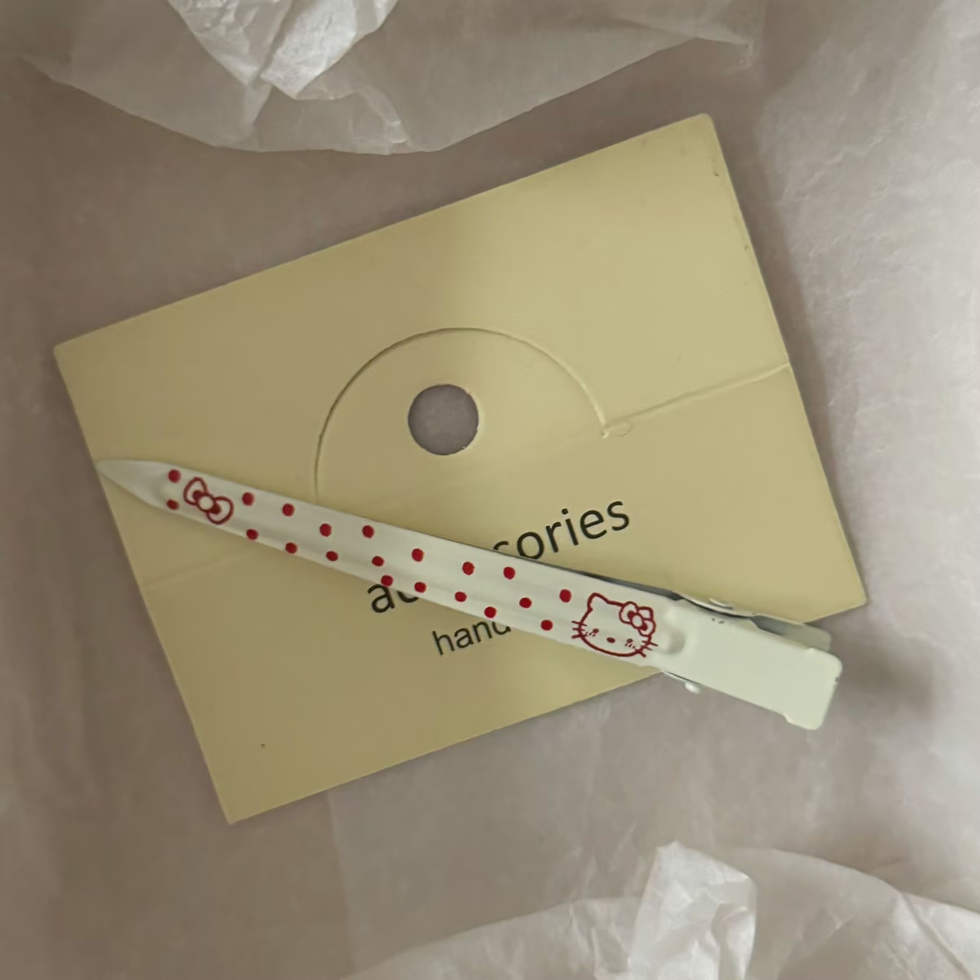 甜酷风红色系猫咪印花金属长条发夹日系甜美百搭女孩发卡发饰批发