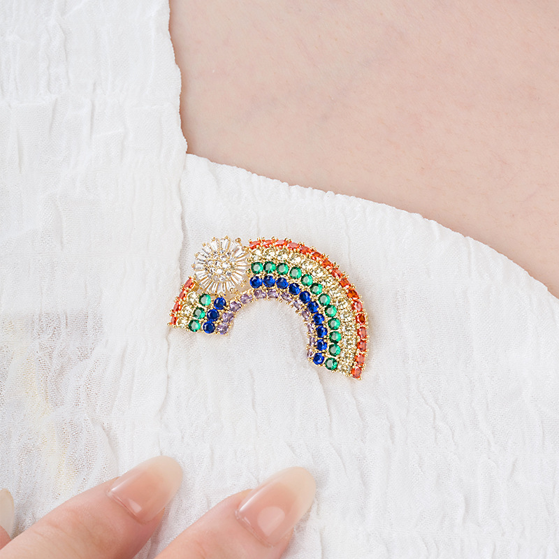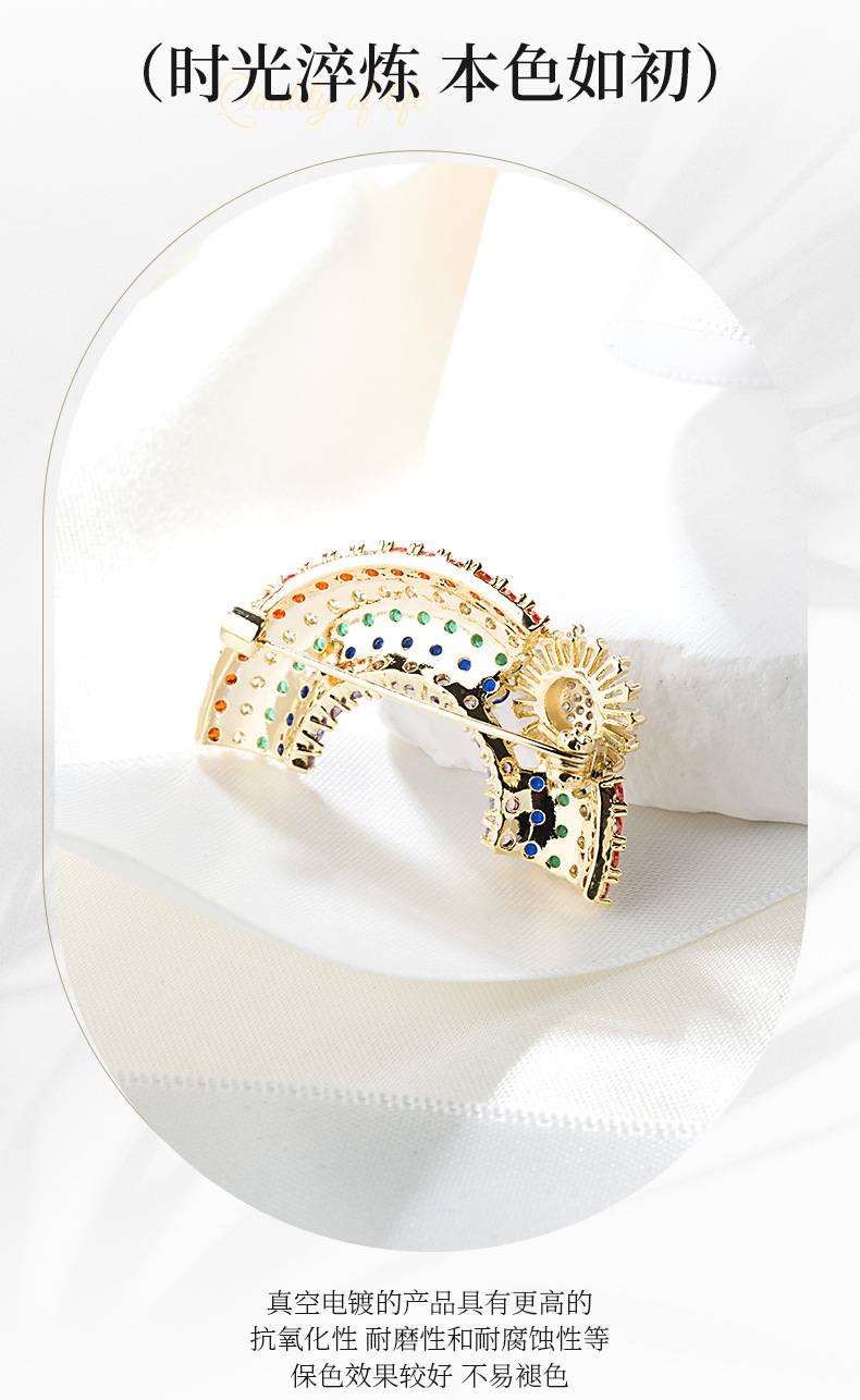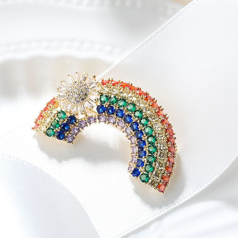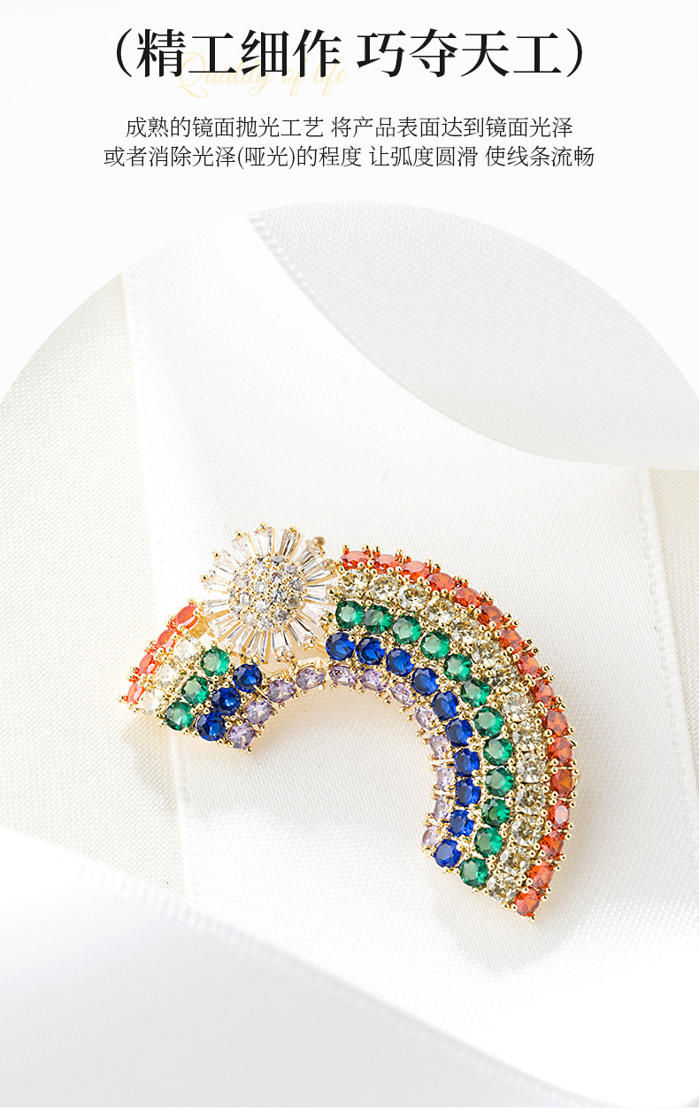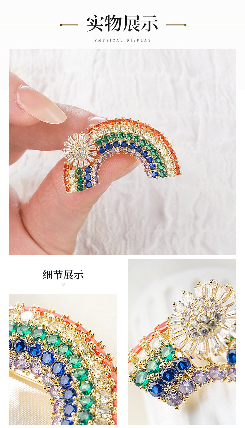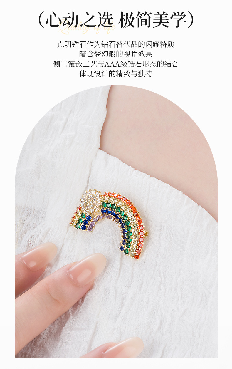 夏季小清新彩虹花朵微镶锆石高档胸针优雅时尚开衫领口别针配饰女
