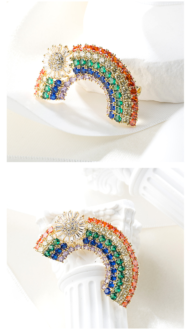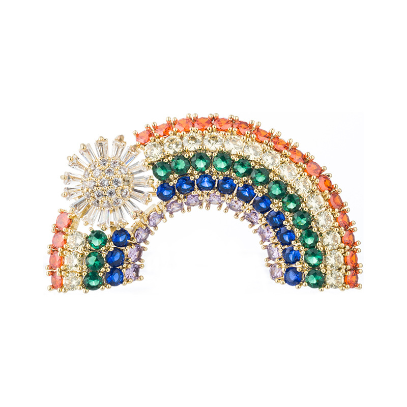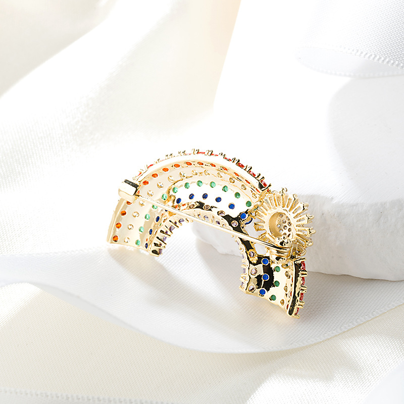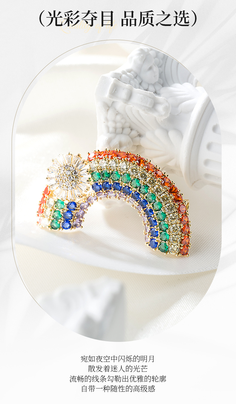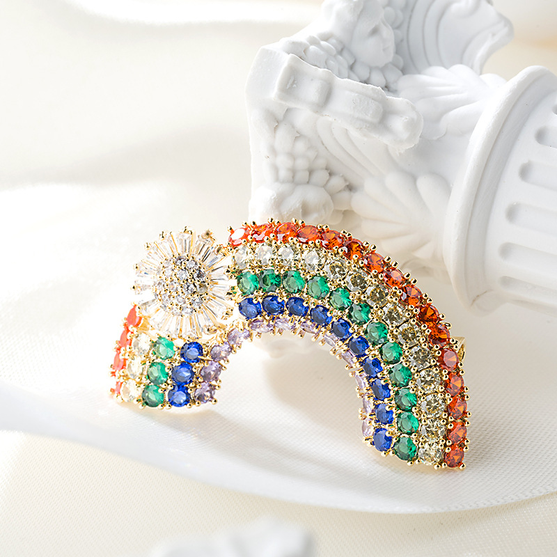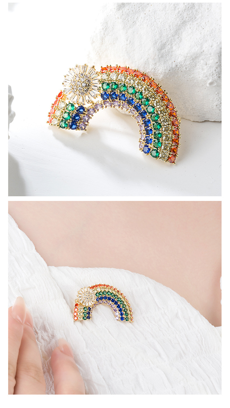 夏季小清新彩虹花朵微镶锆石高档胸针优雅时尚开衫领口别针配饰女