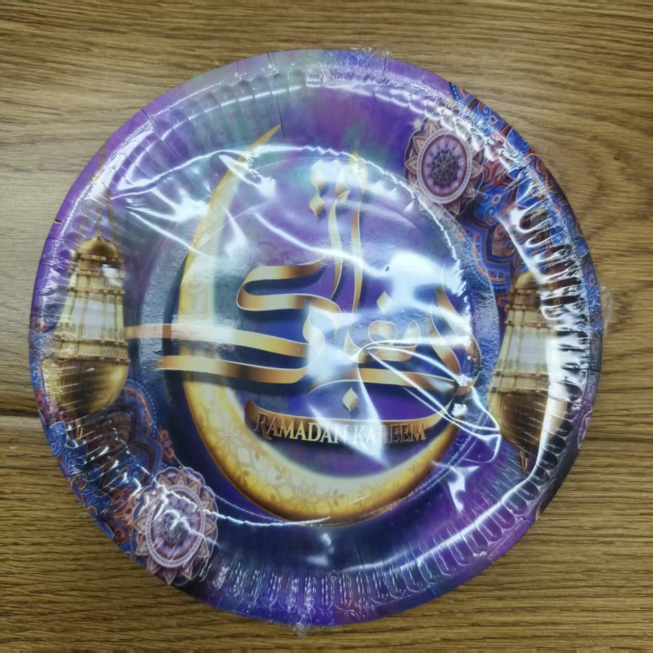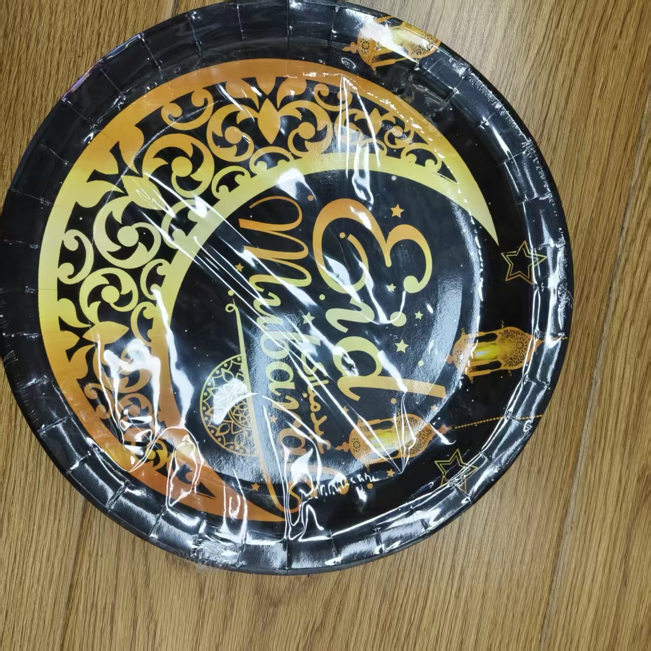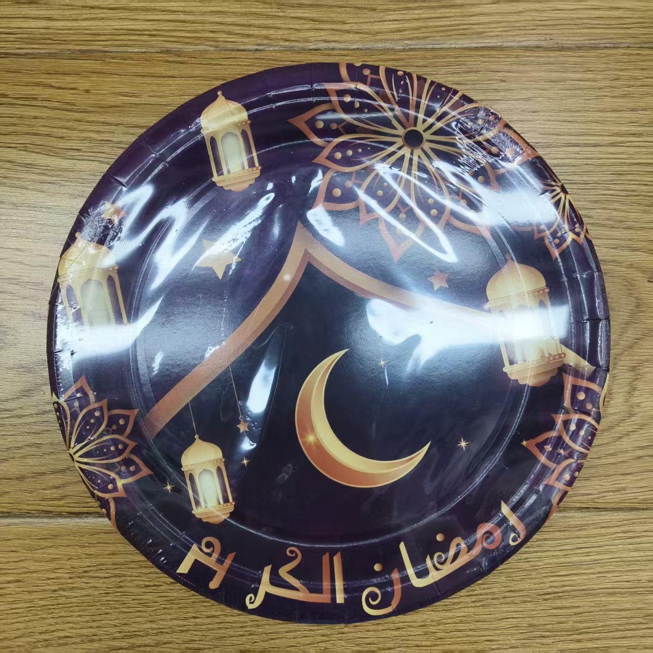 中东节日派对星星月亮纸盘一次性餐盘餐具蛋糕甜点水果餐盘