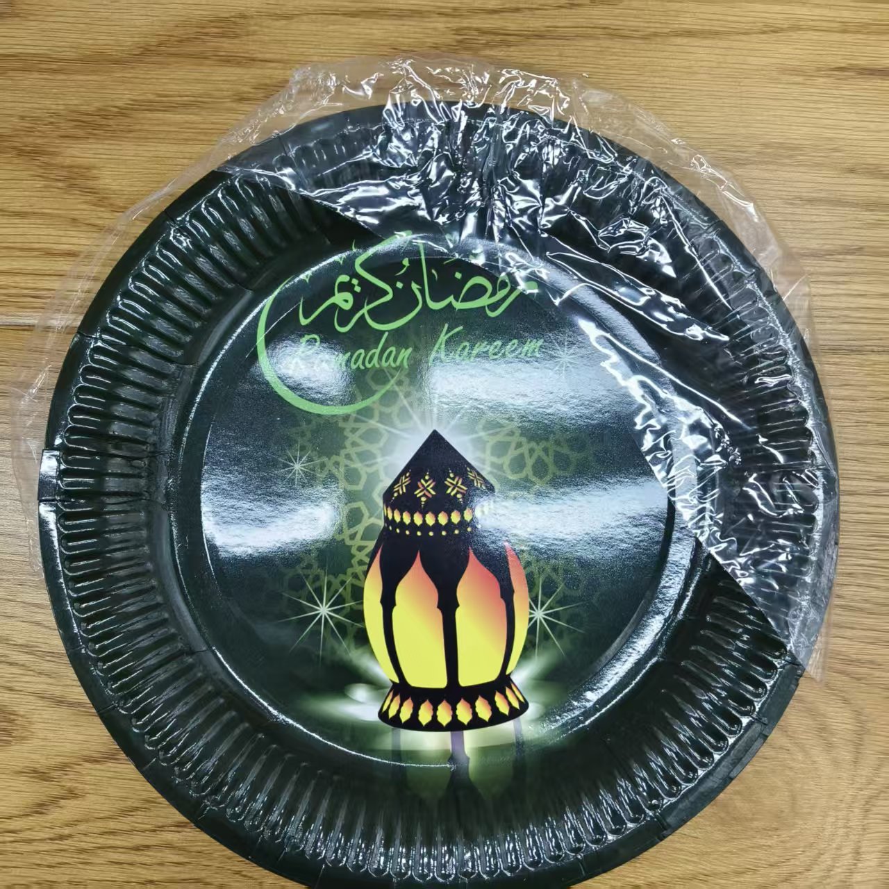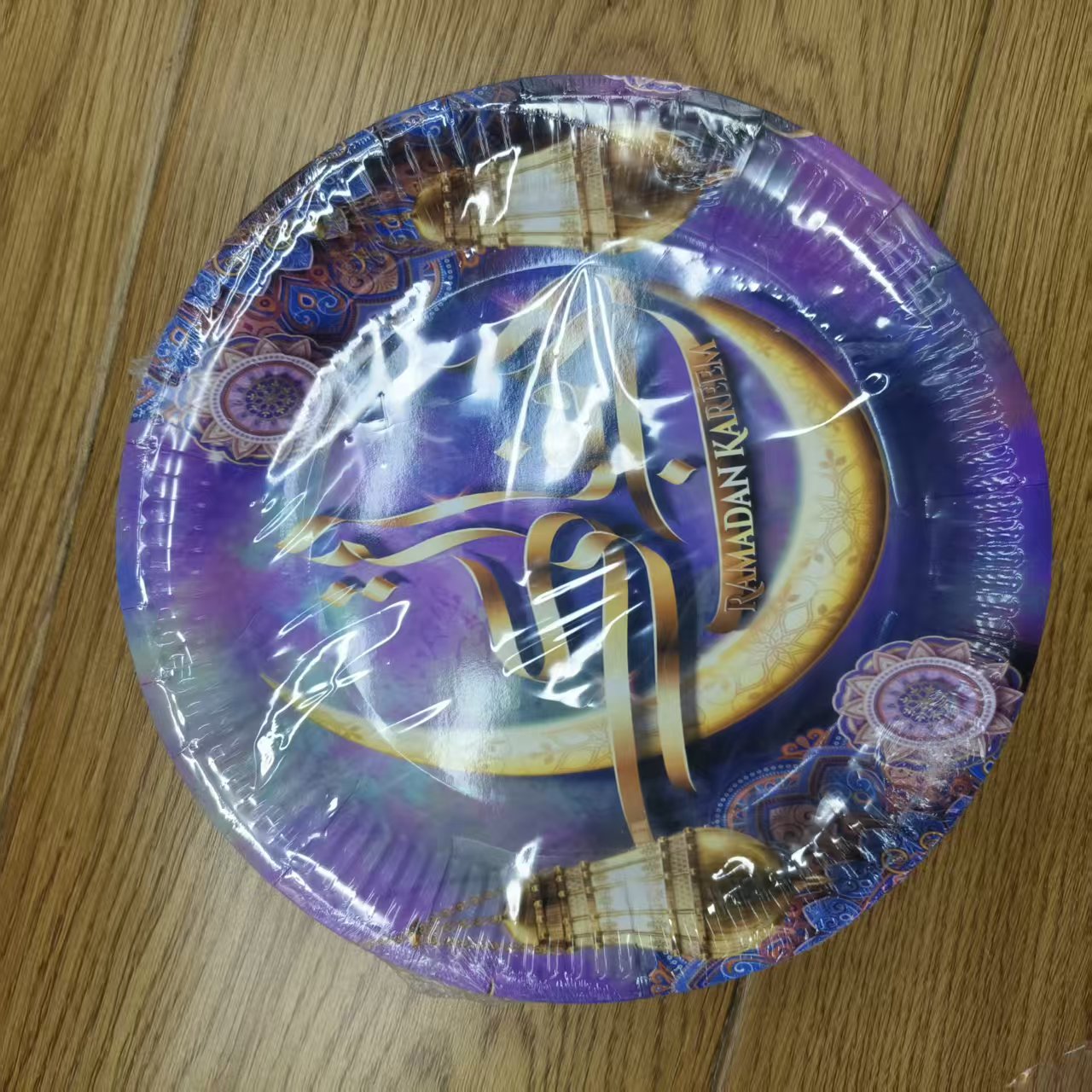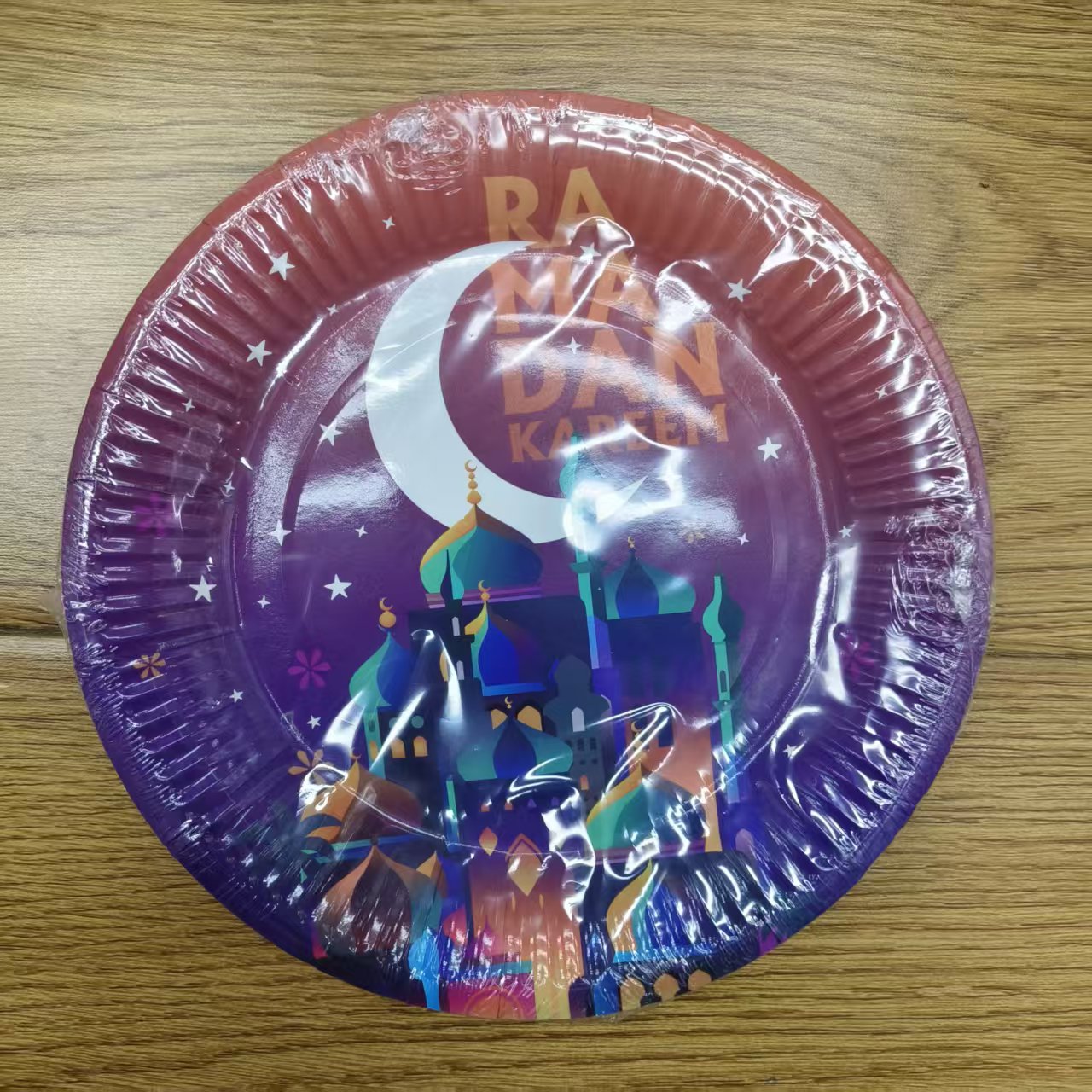 中东节日派对星星月亮纸盘一次性餐盘餐具蛋糕甜点水果餐盘