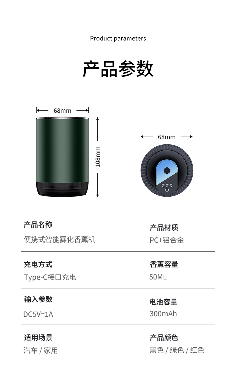 智能车载香薰机自动喷香机扩香机汽车高级感香薰机智能香氛机加湿