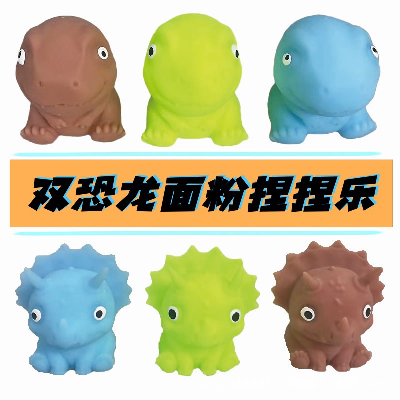 热销亚马逊TPR恐龙面粉奶龙三角龙解压发泄挤压捏捏乐卡通玩具