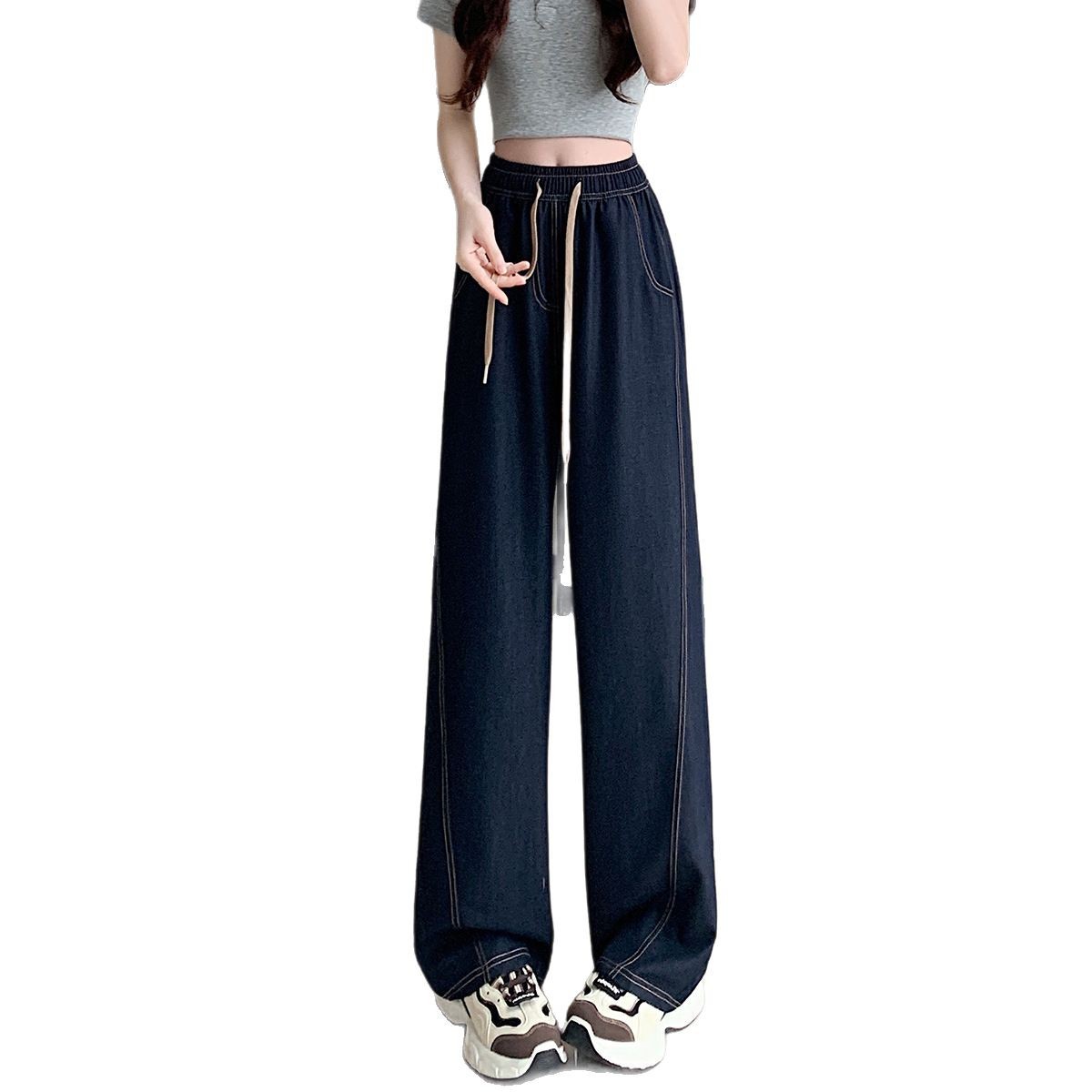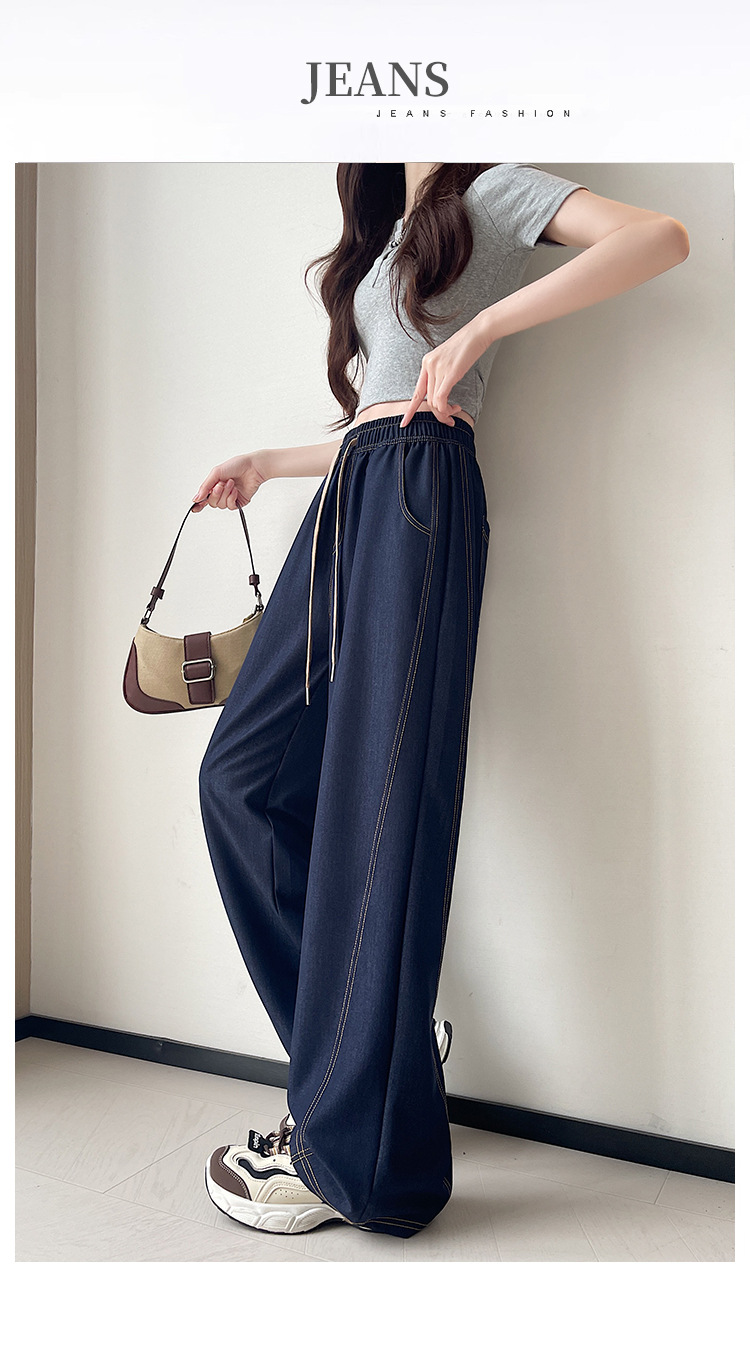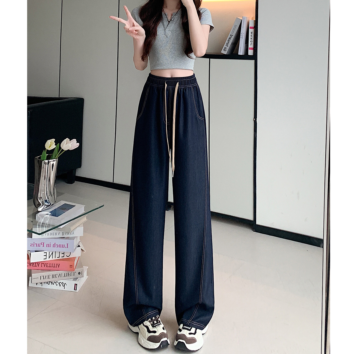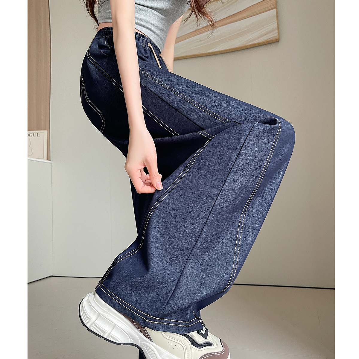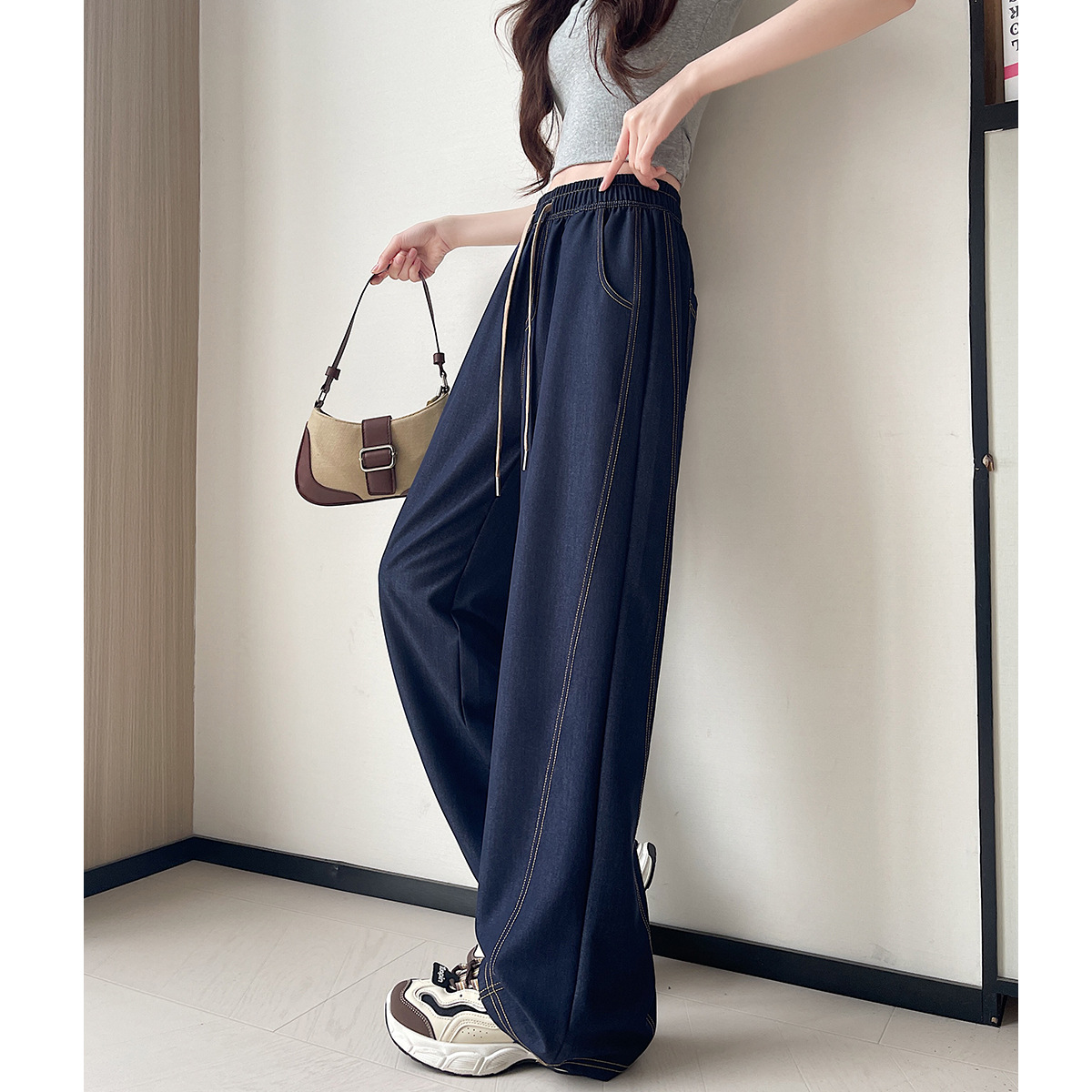 暗蓝色明线弯刀阔腿裤女2025春夏新款高腰垂感宽松休闲香蕉牛仔裤