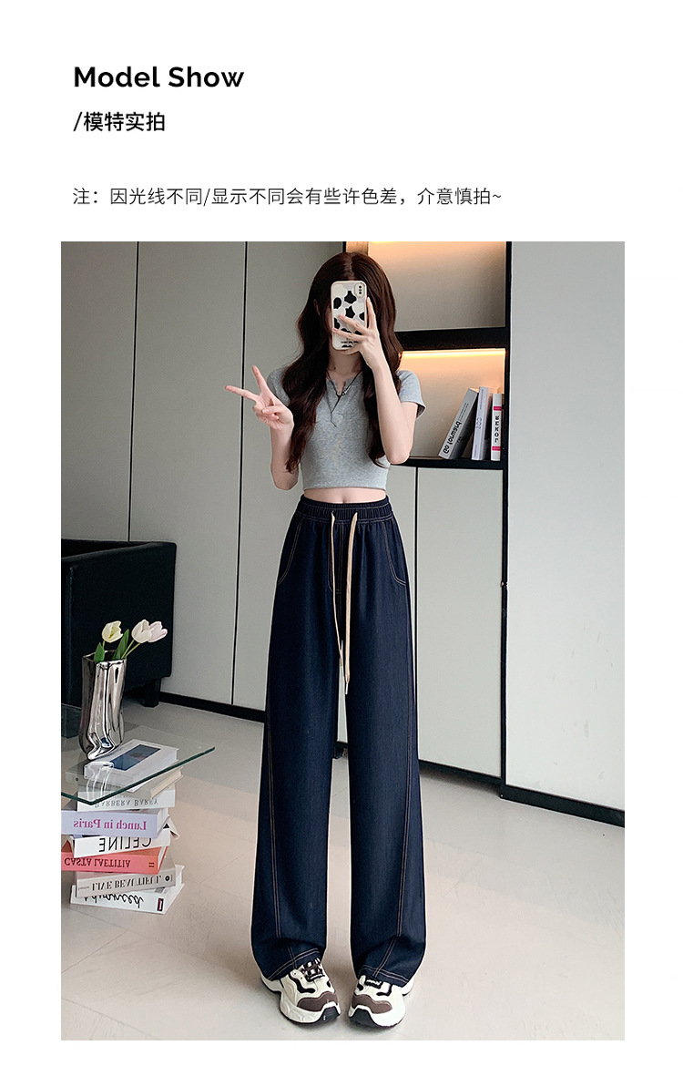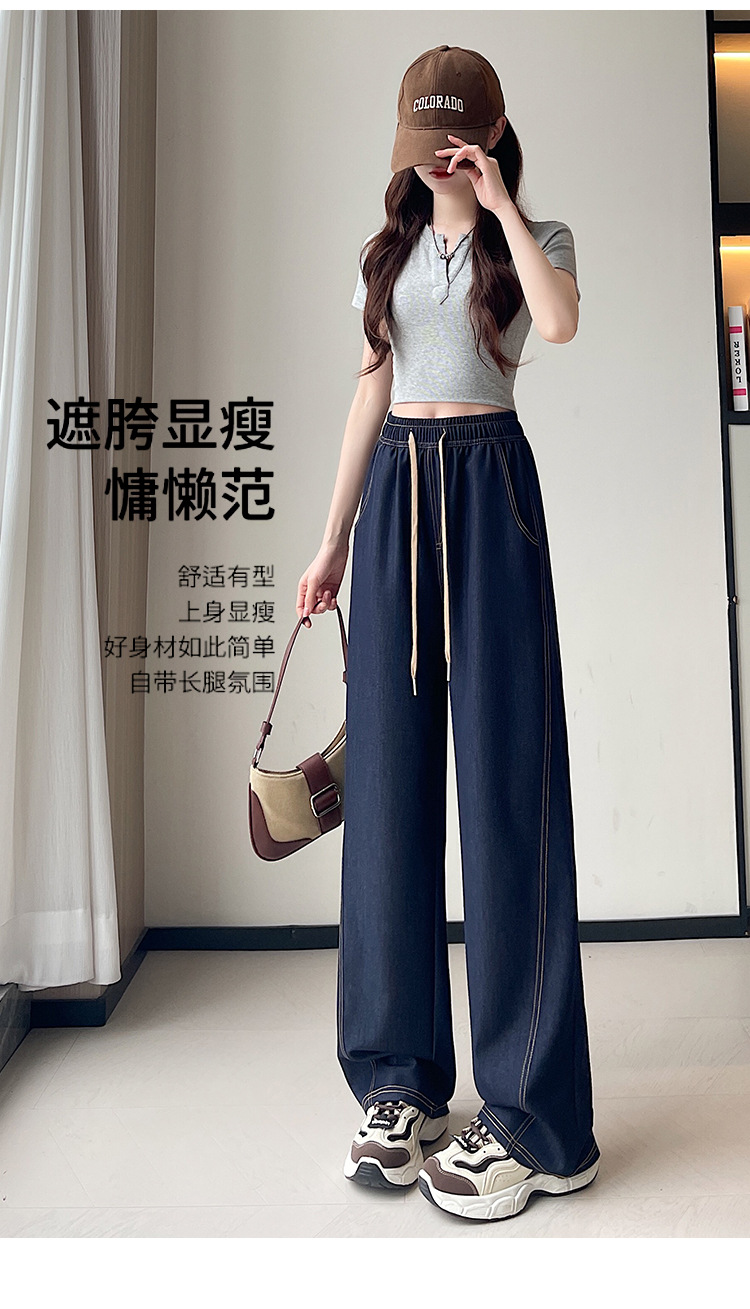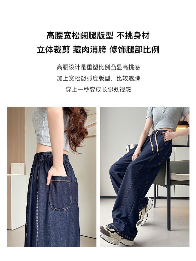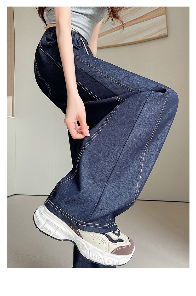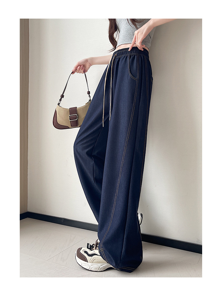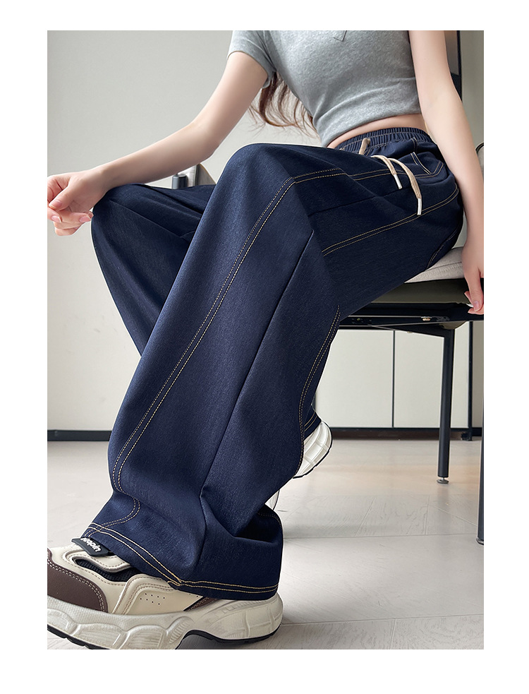 暗蓝色明线弯刀阔腿裤女2025春夏新款高腰垂感宽松休闲香蕉牛仔裤