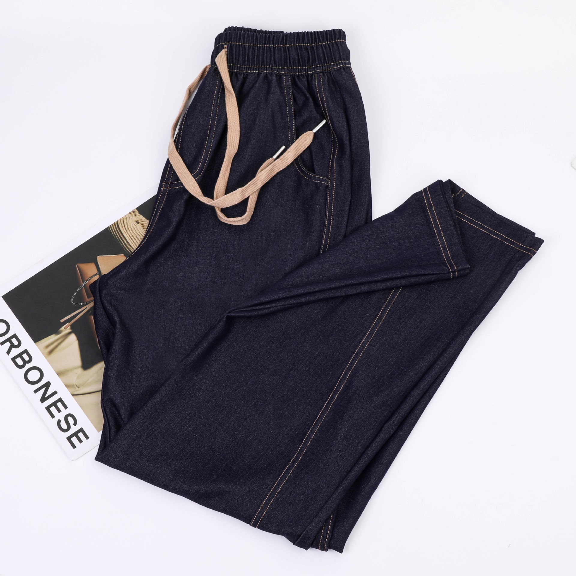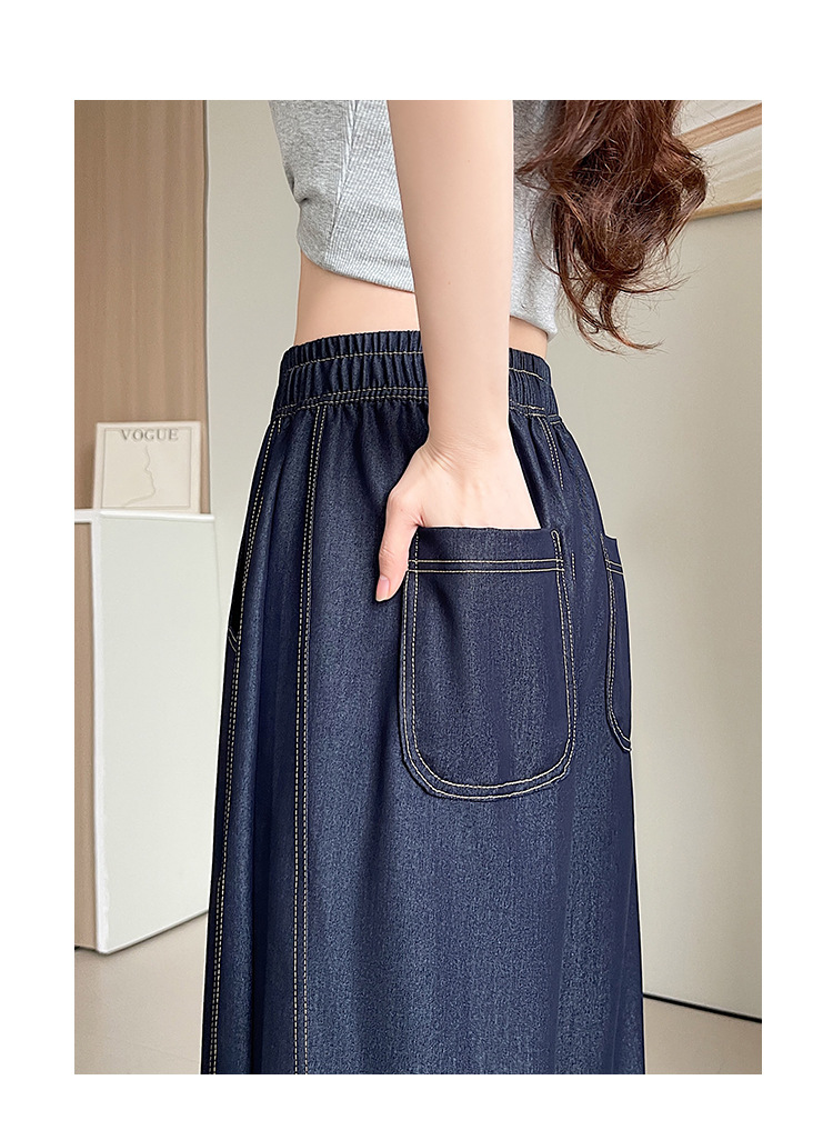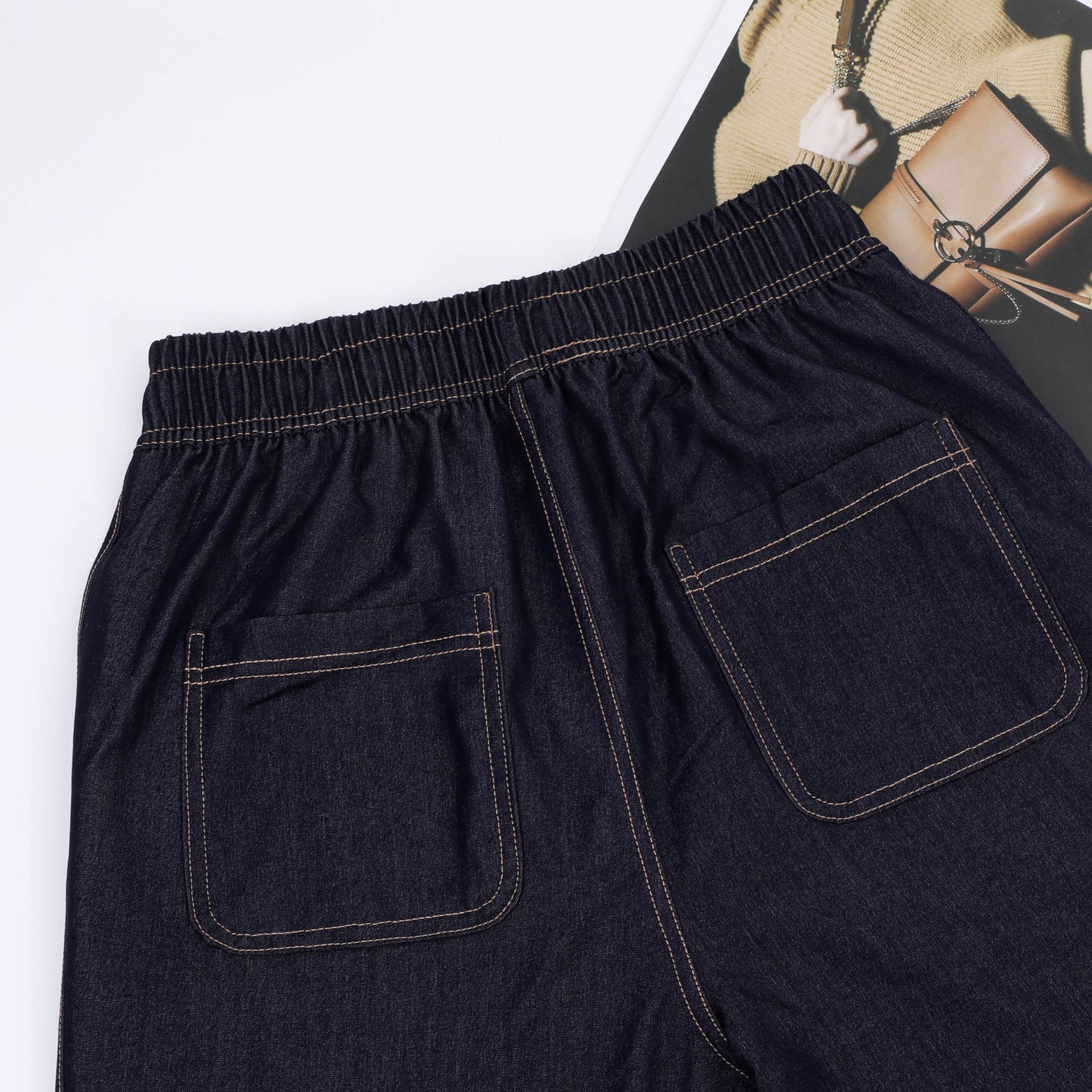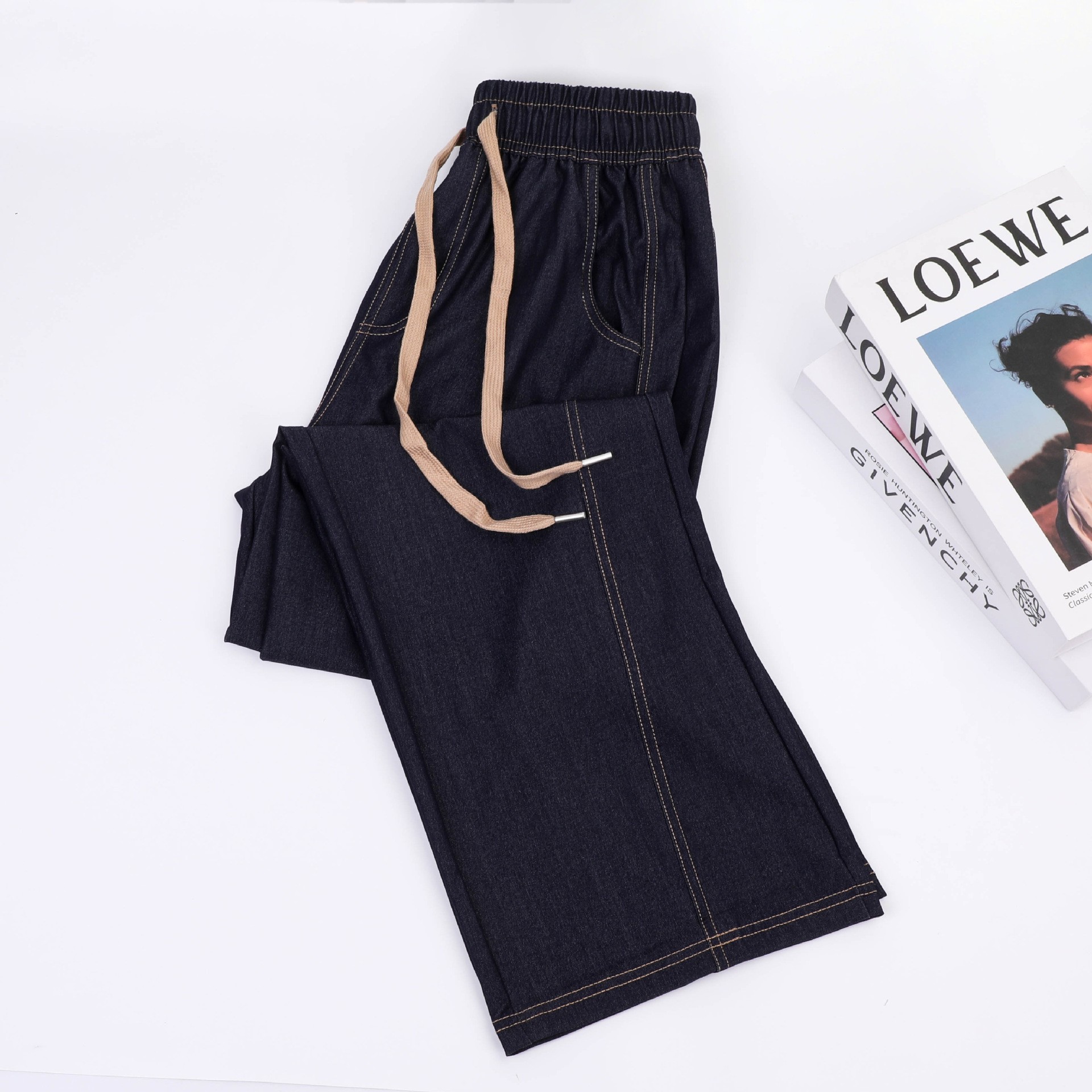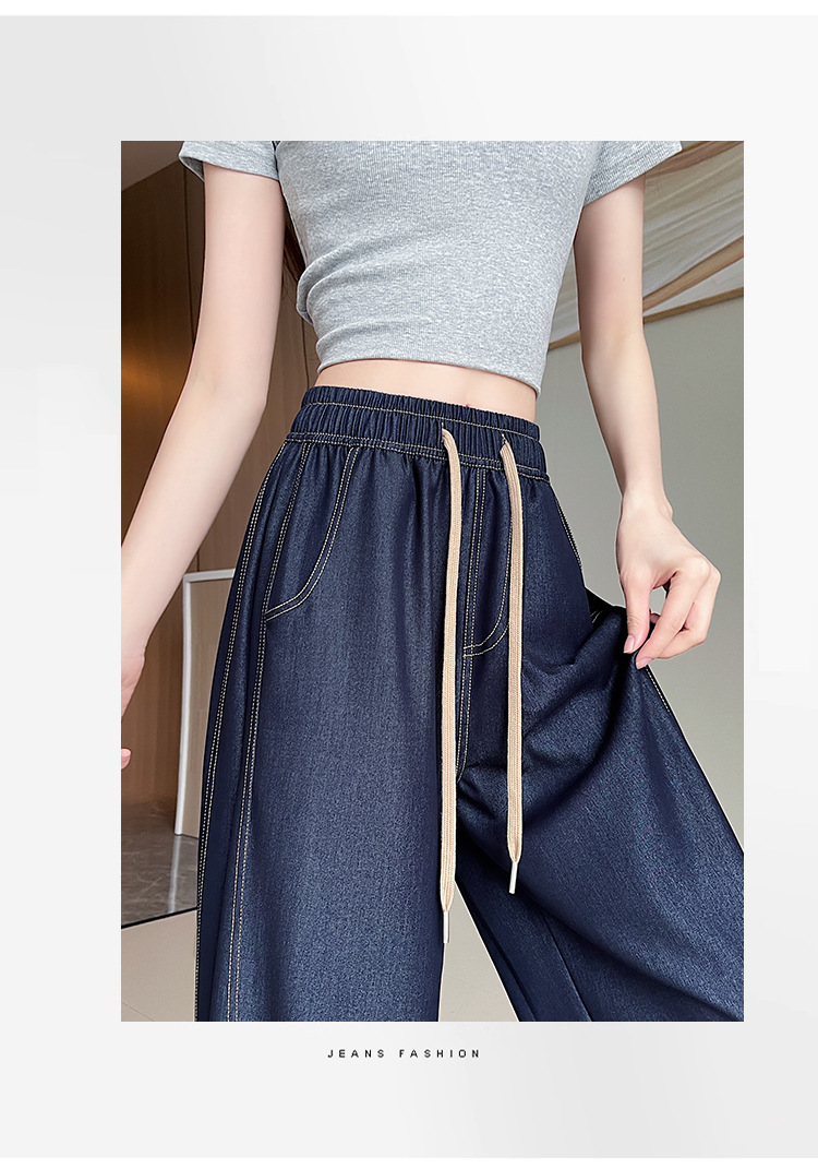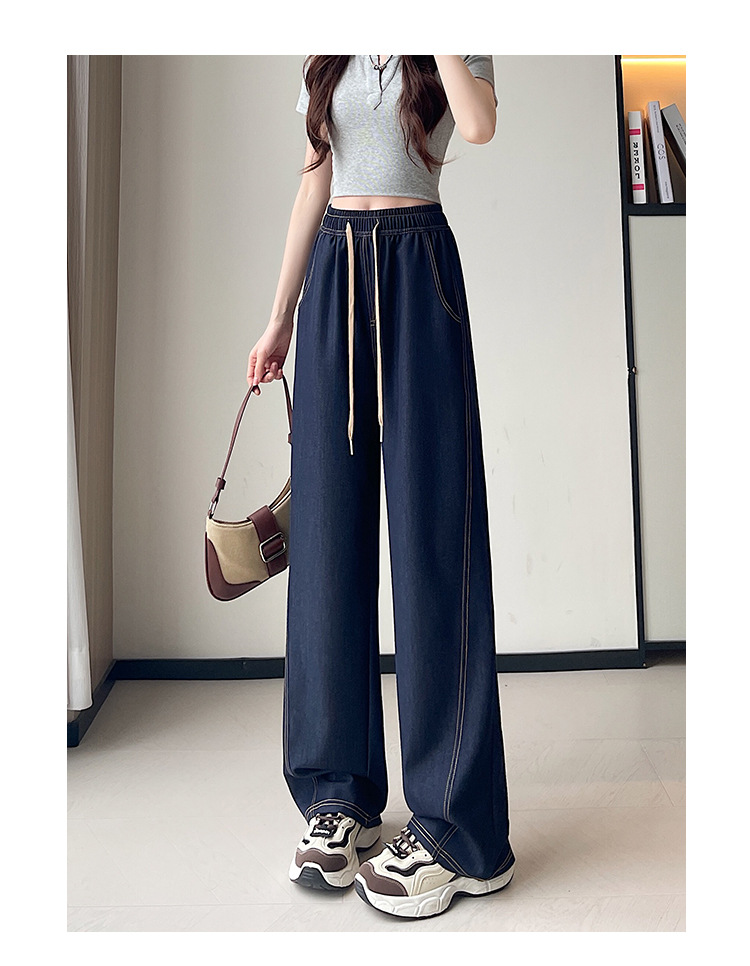暗蓝色明线弯刀阔腿裤女2025春夏新款高腰垂感宽松休闲香蕉牛仔裤