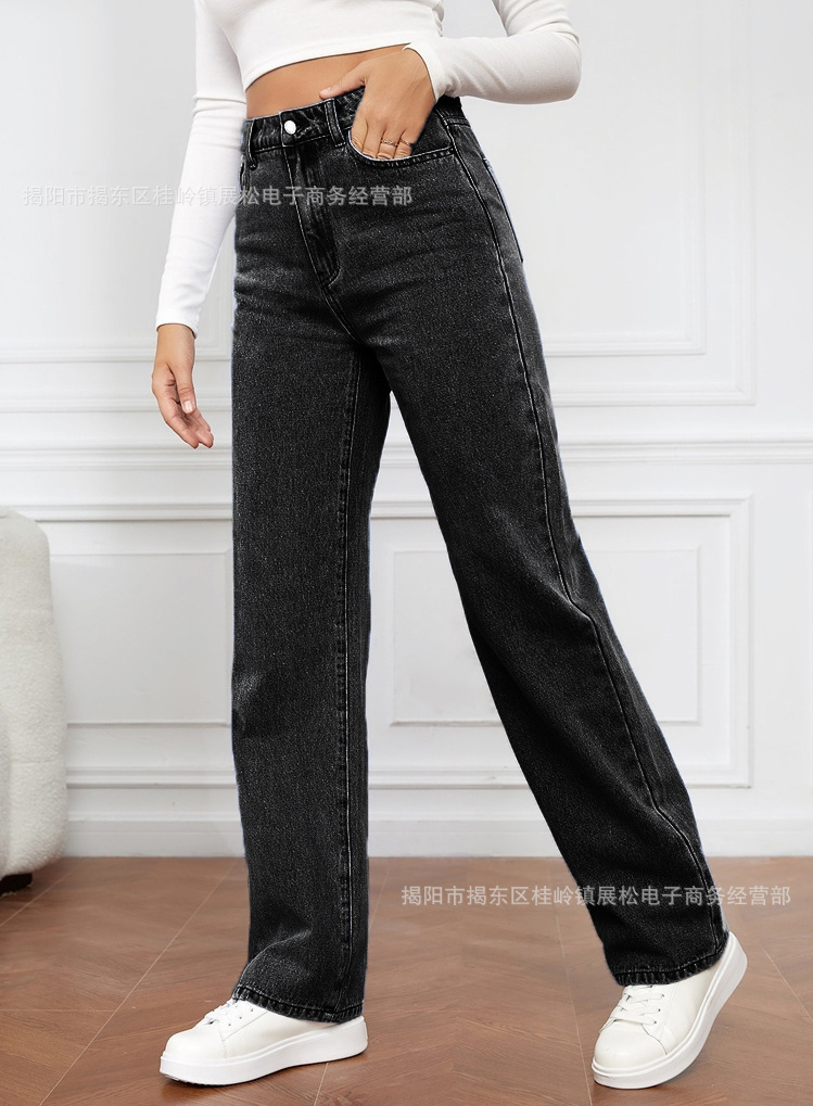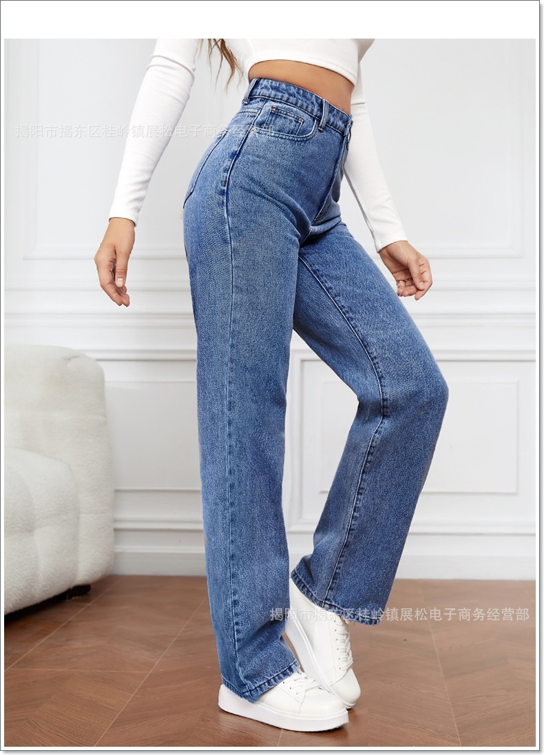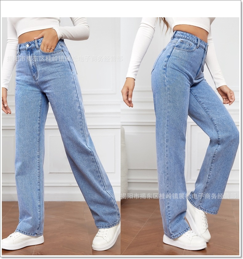 跨境欧美外贸亚马逊wish速卖通2025秋季新款休闲阔腿高腰牛仔裤女