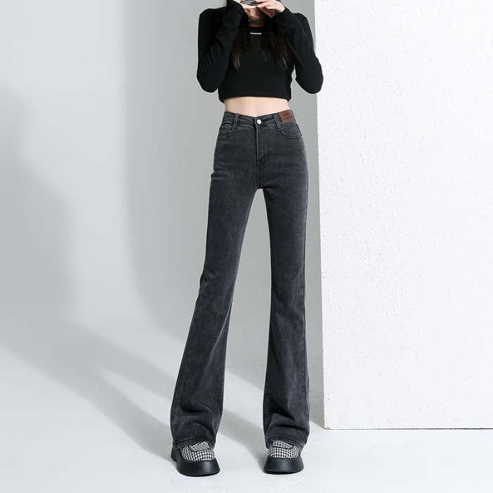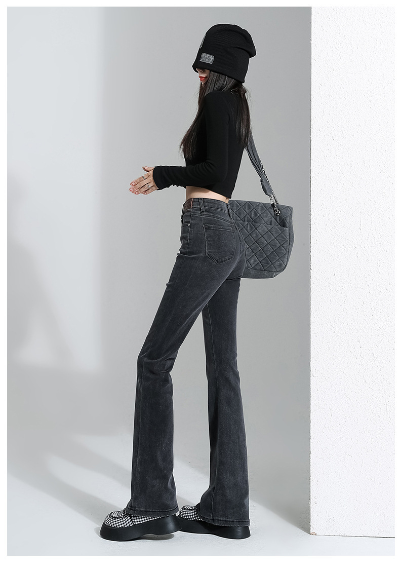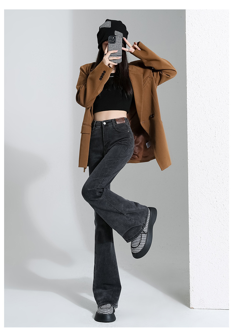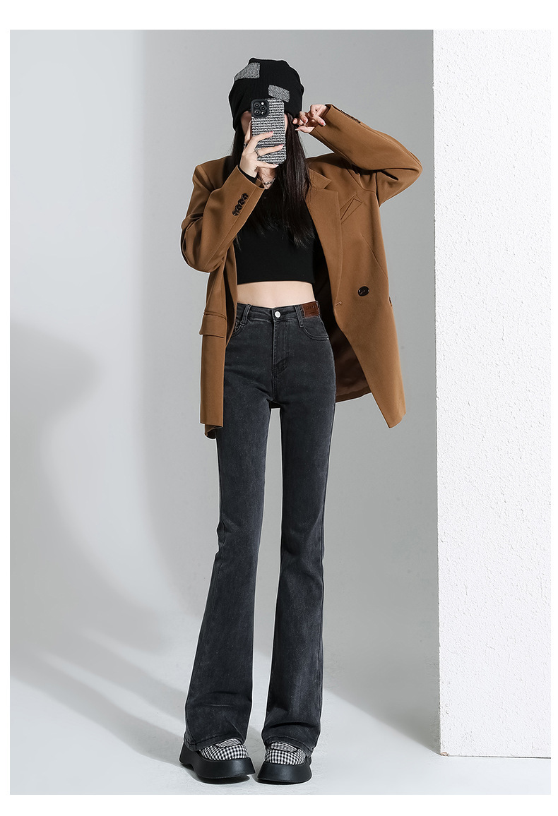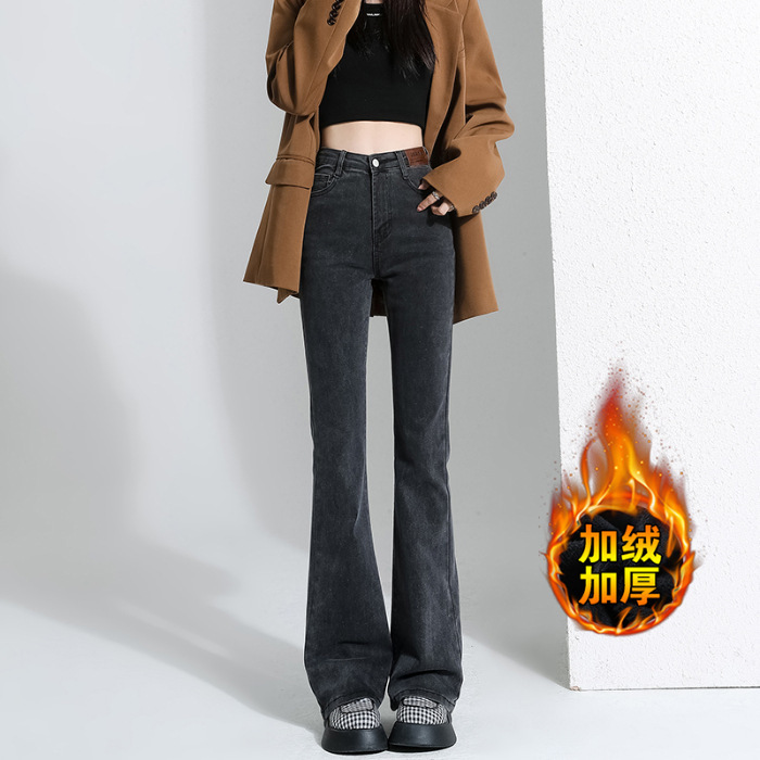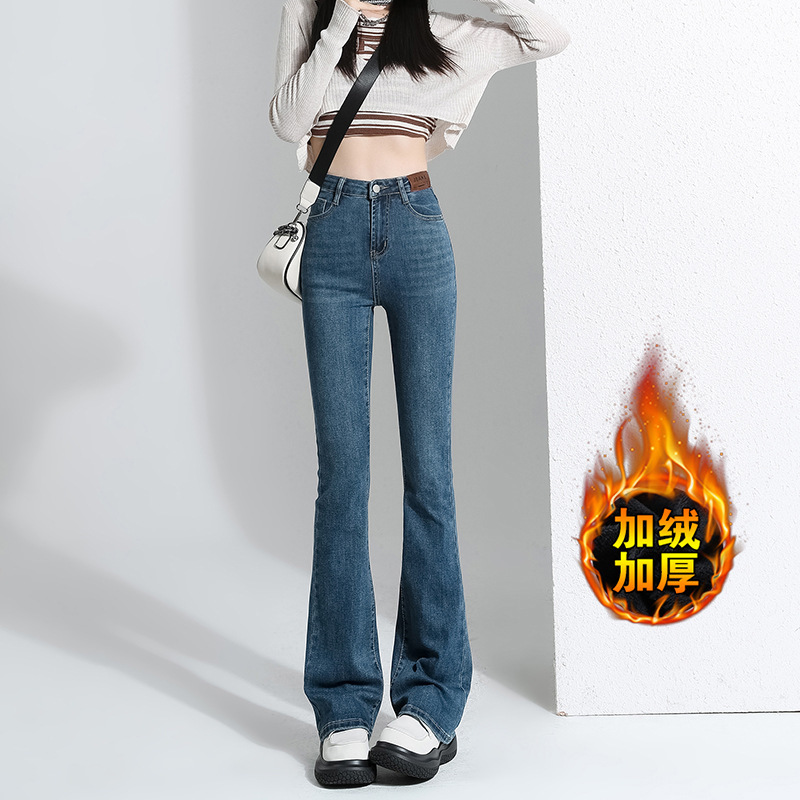 加绒牛仔裤微喇牛仔裤女秋冬高腰显瘦小个子喇叭裤女秋冬马蹄裤