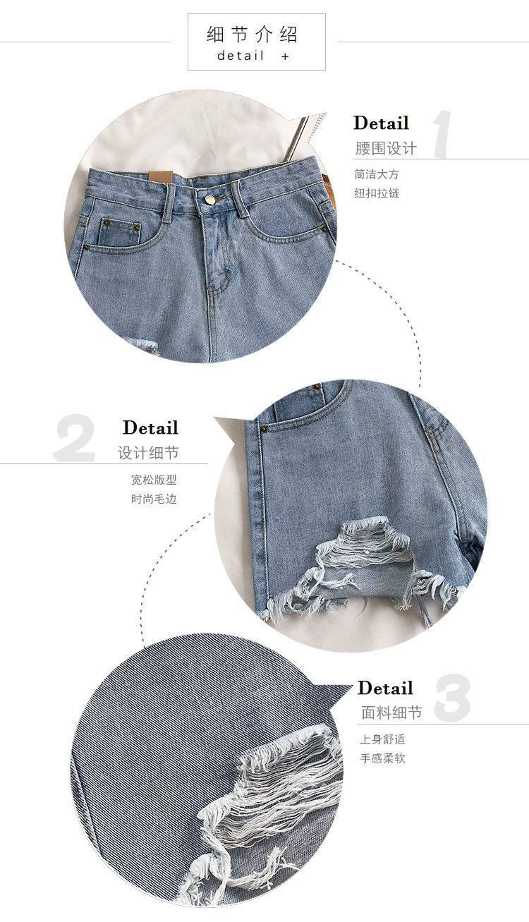 牛仔短裤女高腰破洞宽松阔腿2023夏季新款学生百搭网红a字热裤子