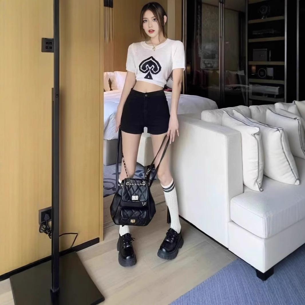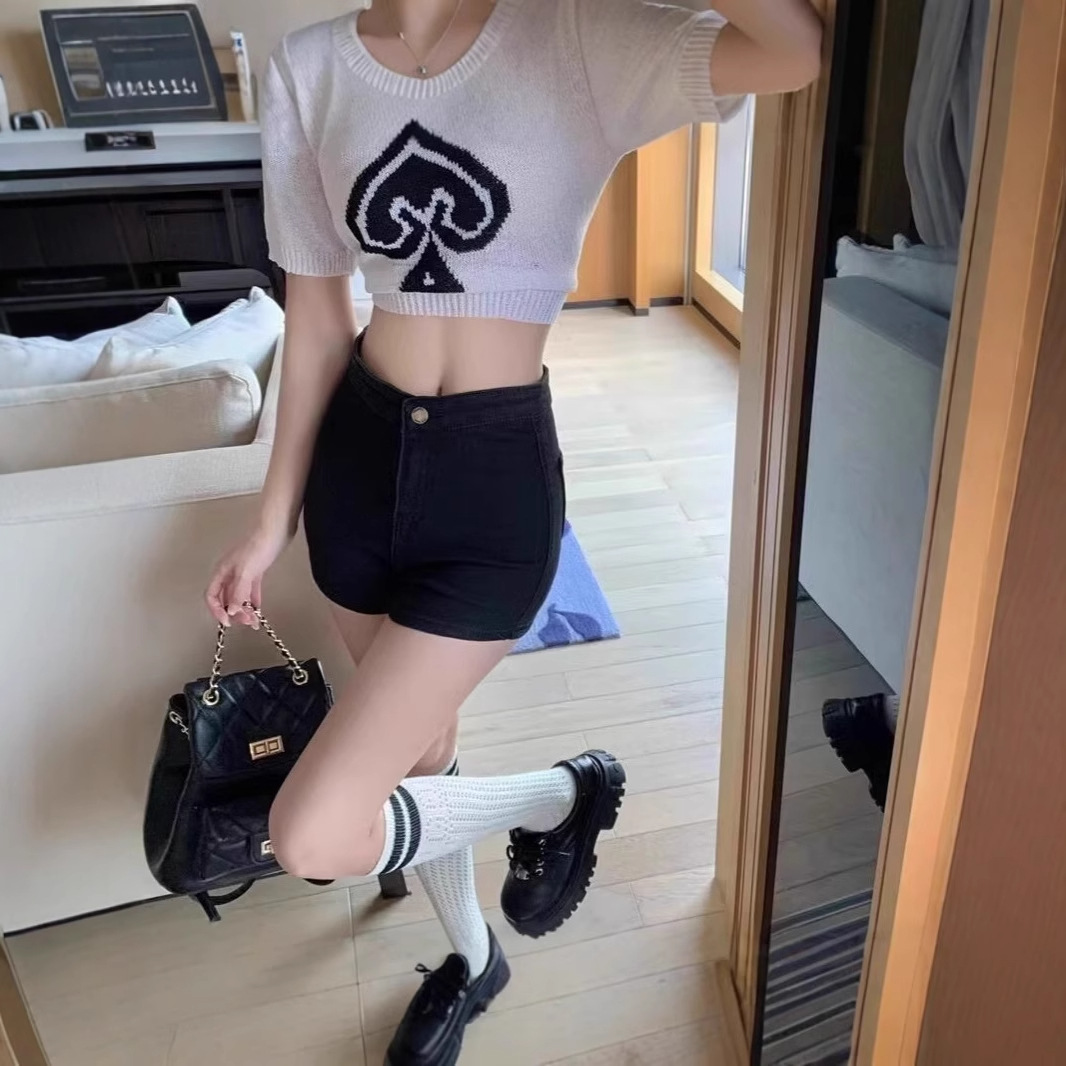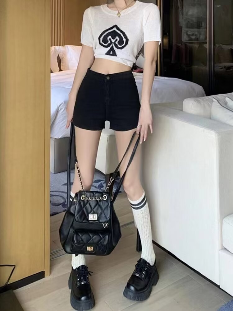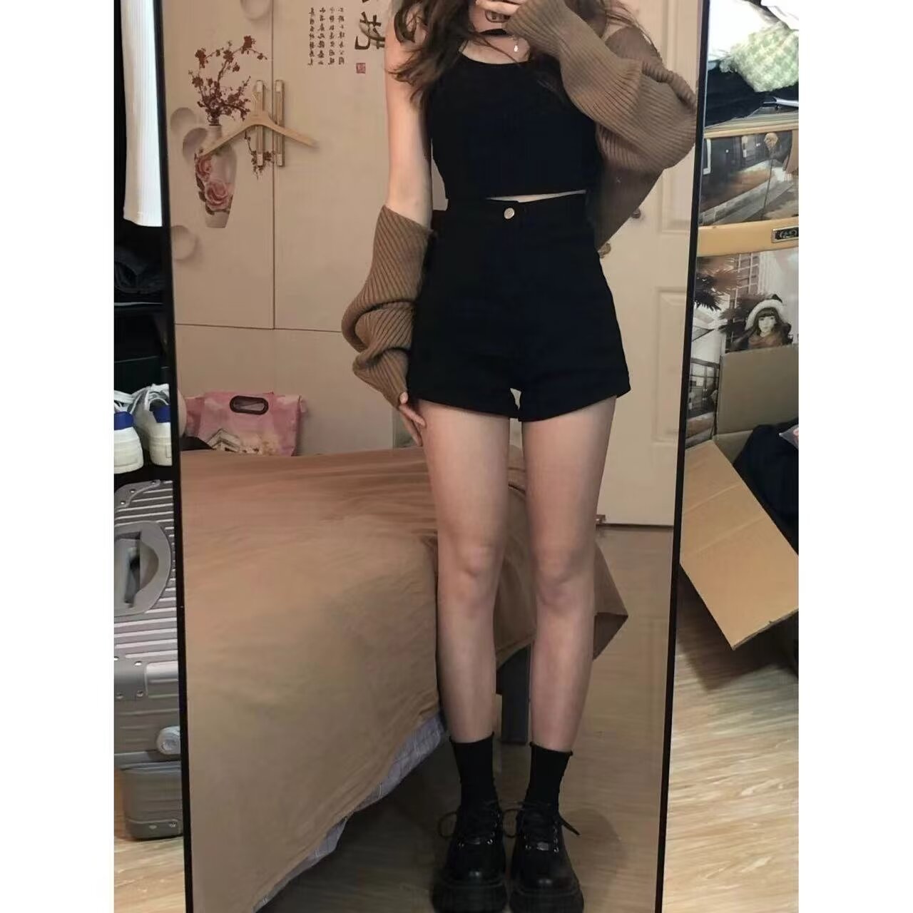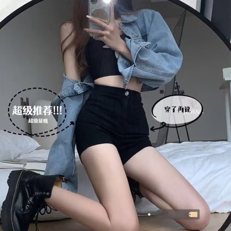 2024年新款黑色牛仔短裤女高腰美式辣妹包臀紧身显瘦a字热裤夏季